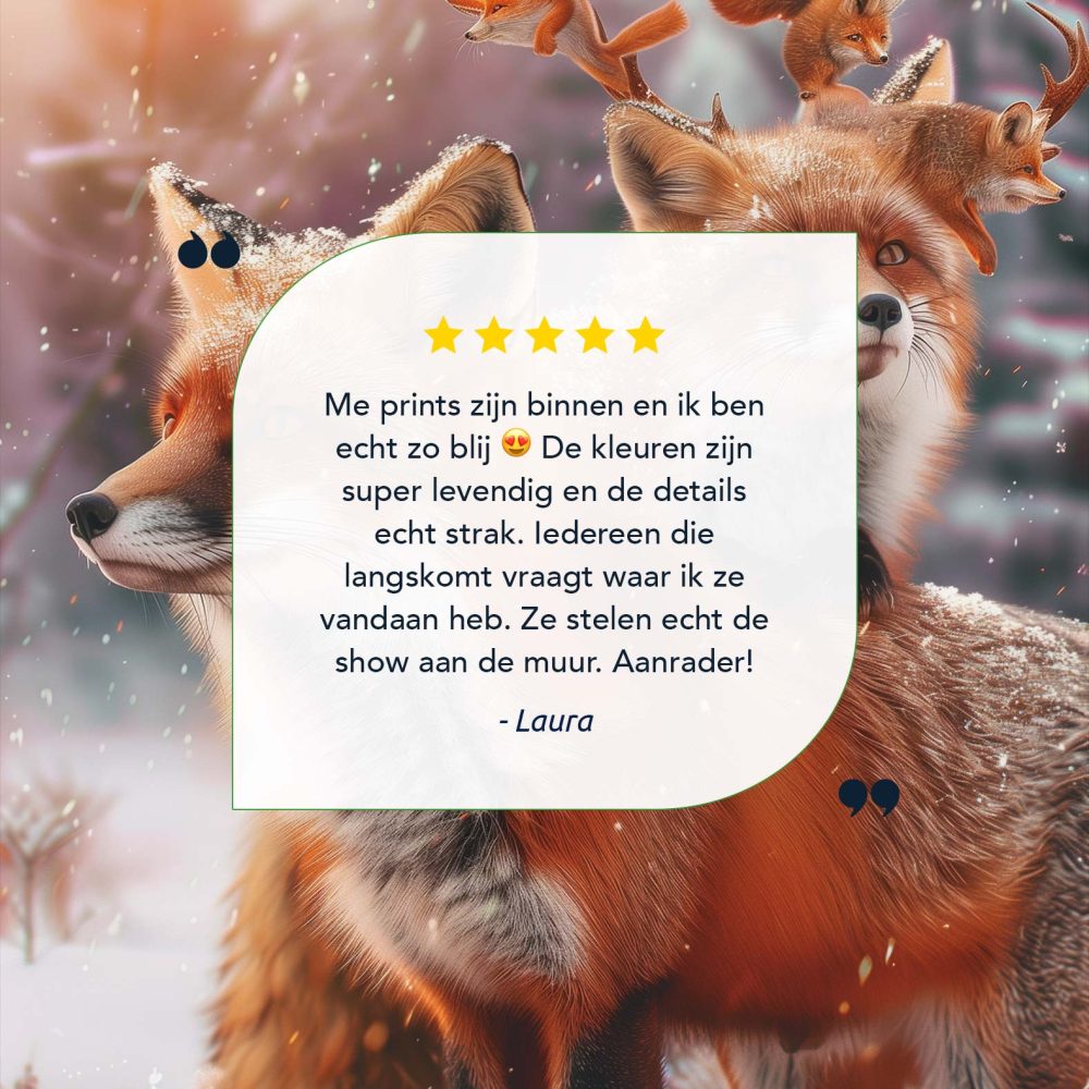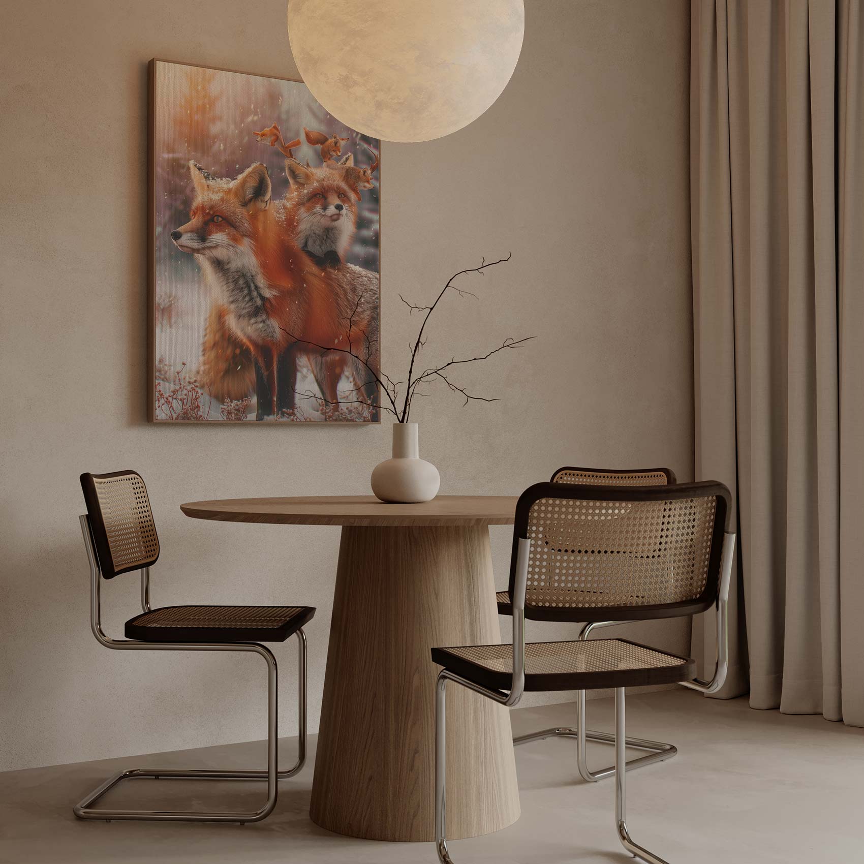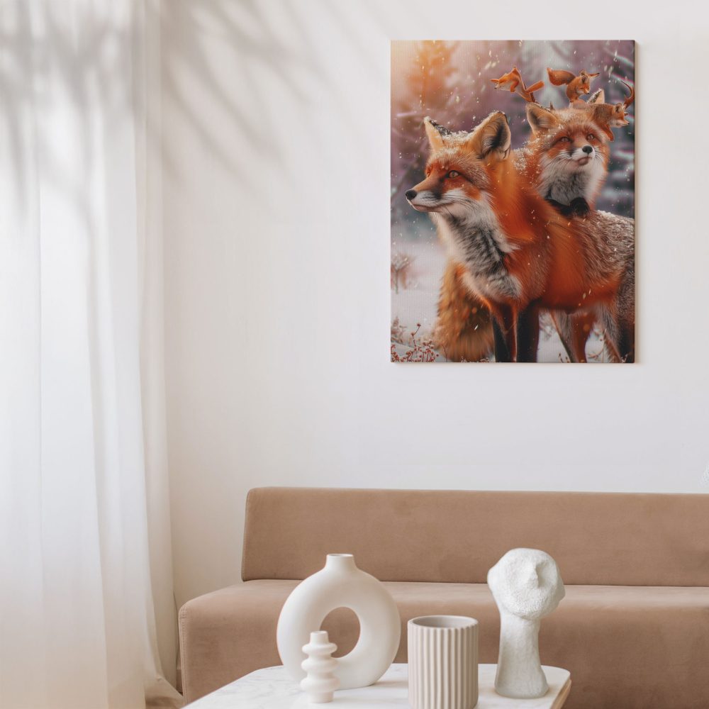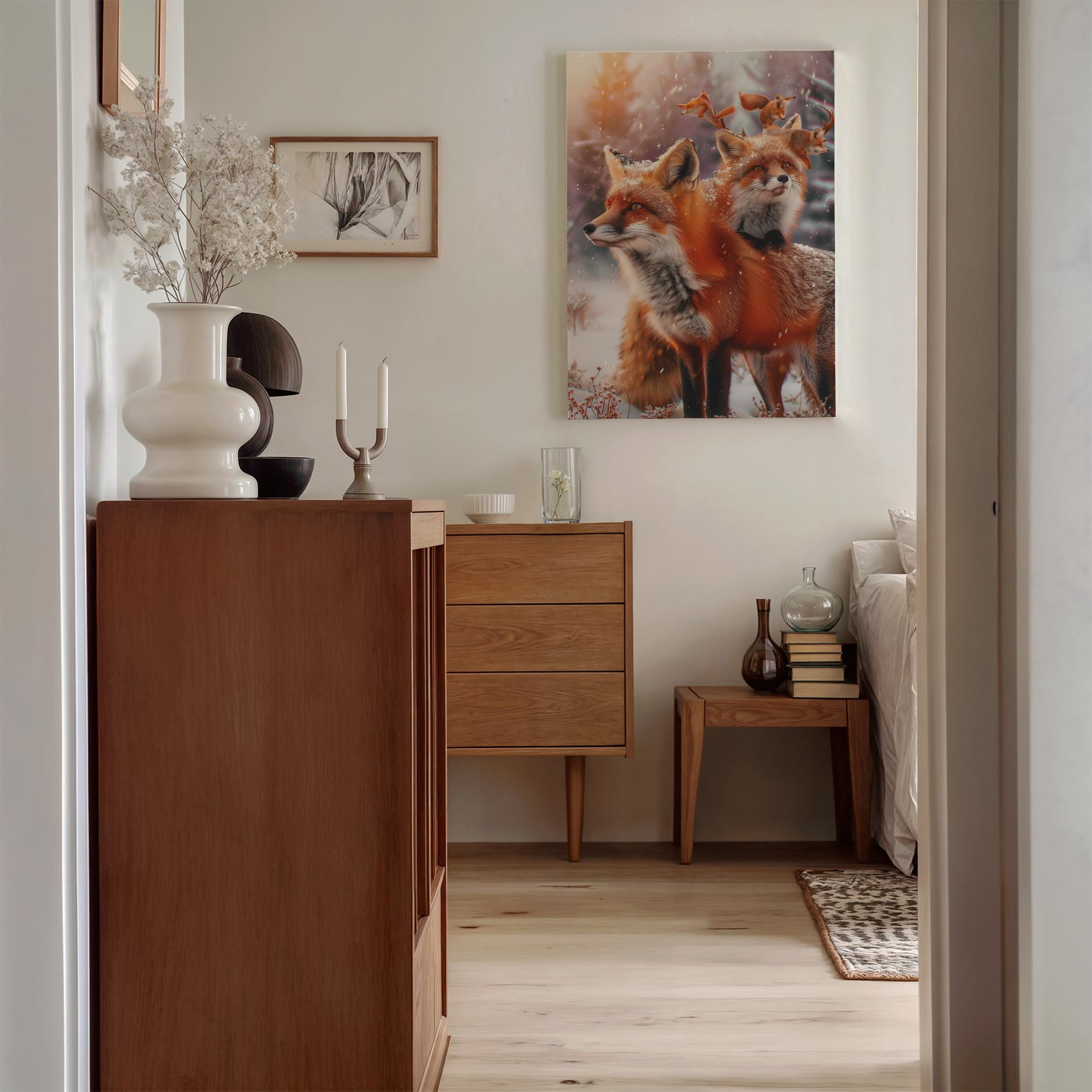 Terug naar collectie / Schilderijen / Bossen Schilderij / Rode vossen in besneeuwd bos