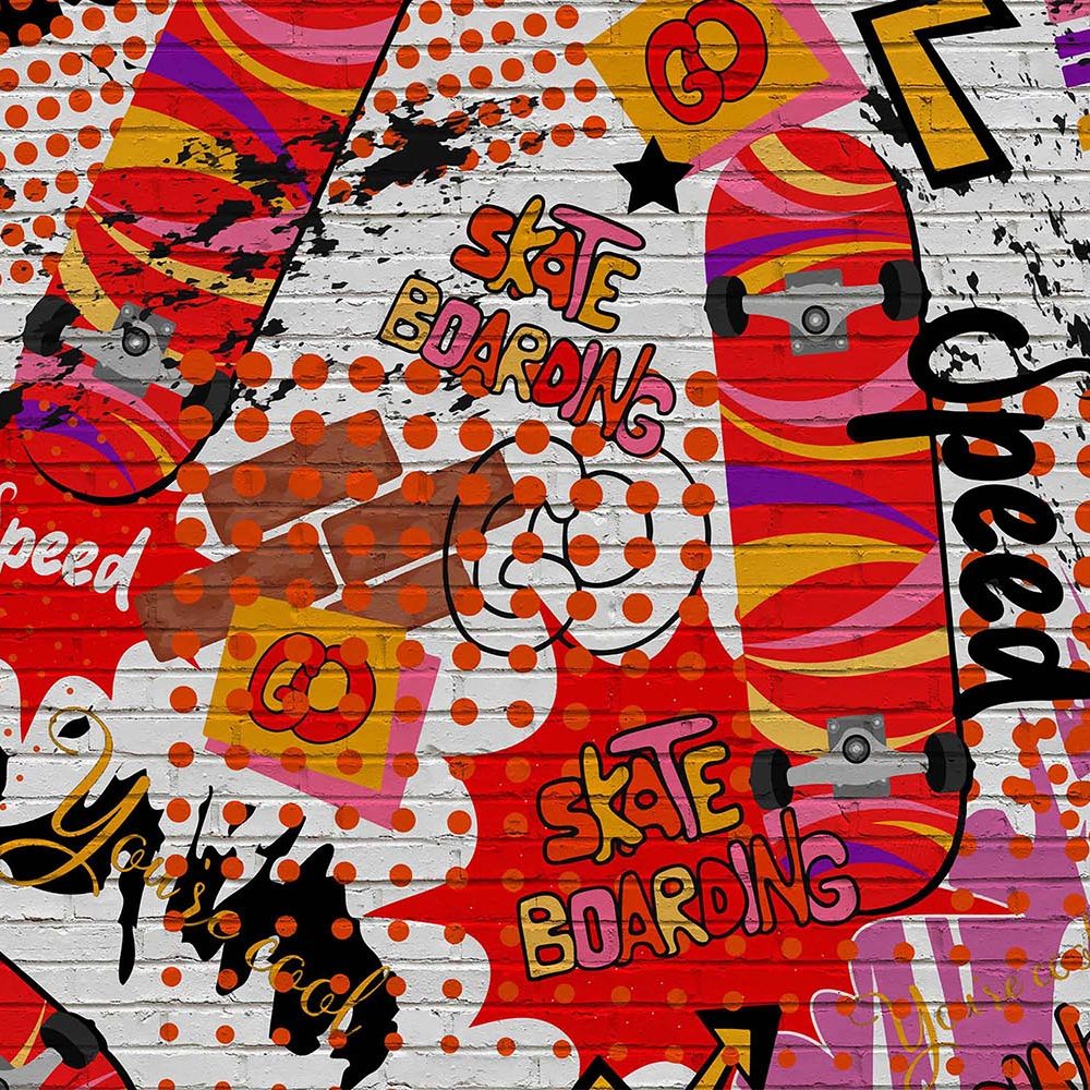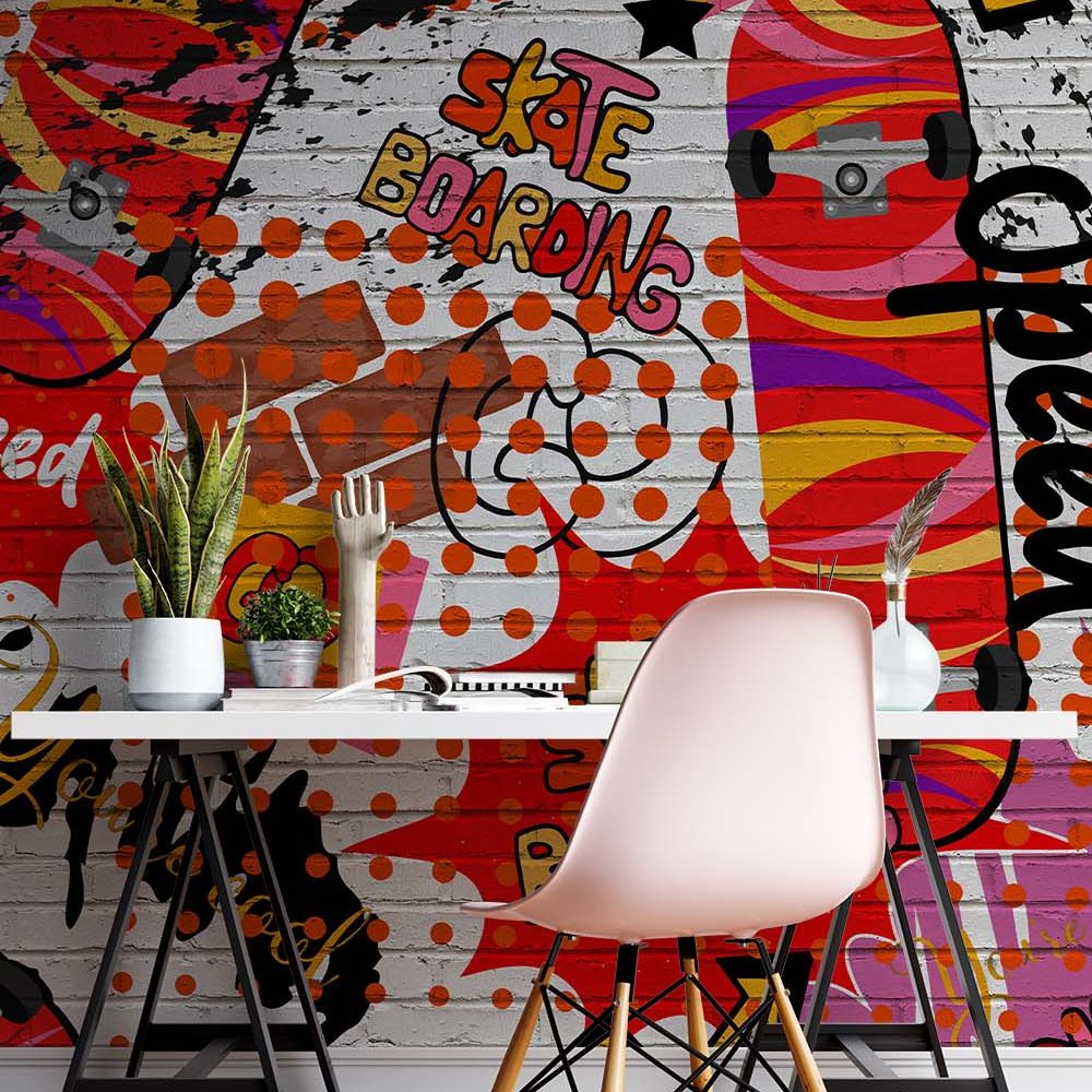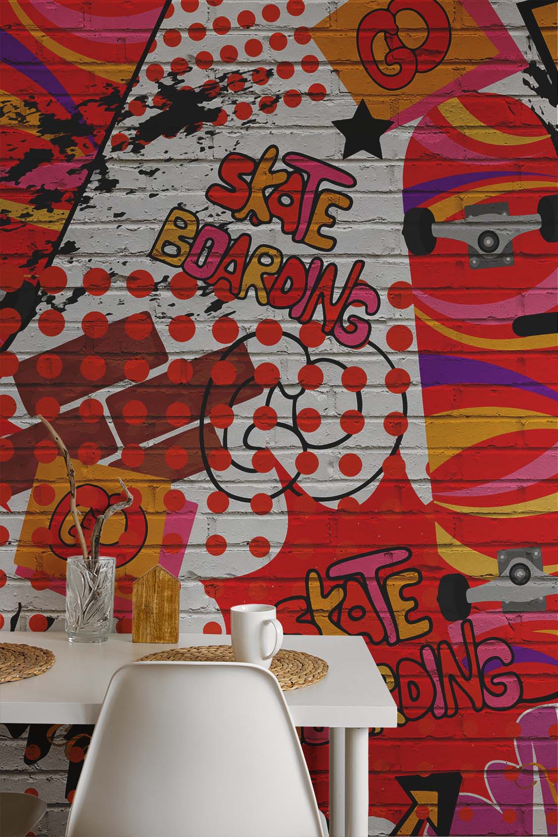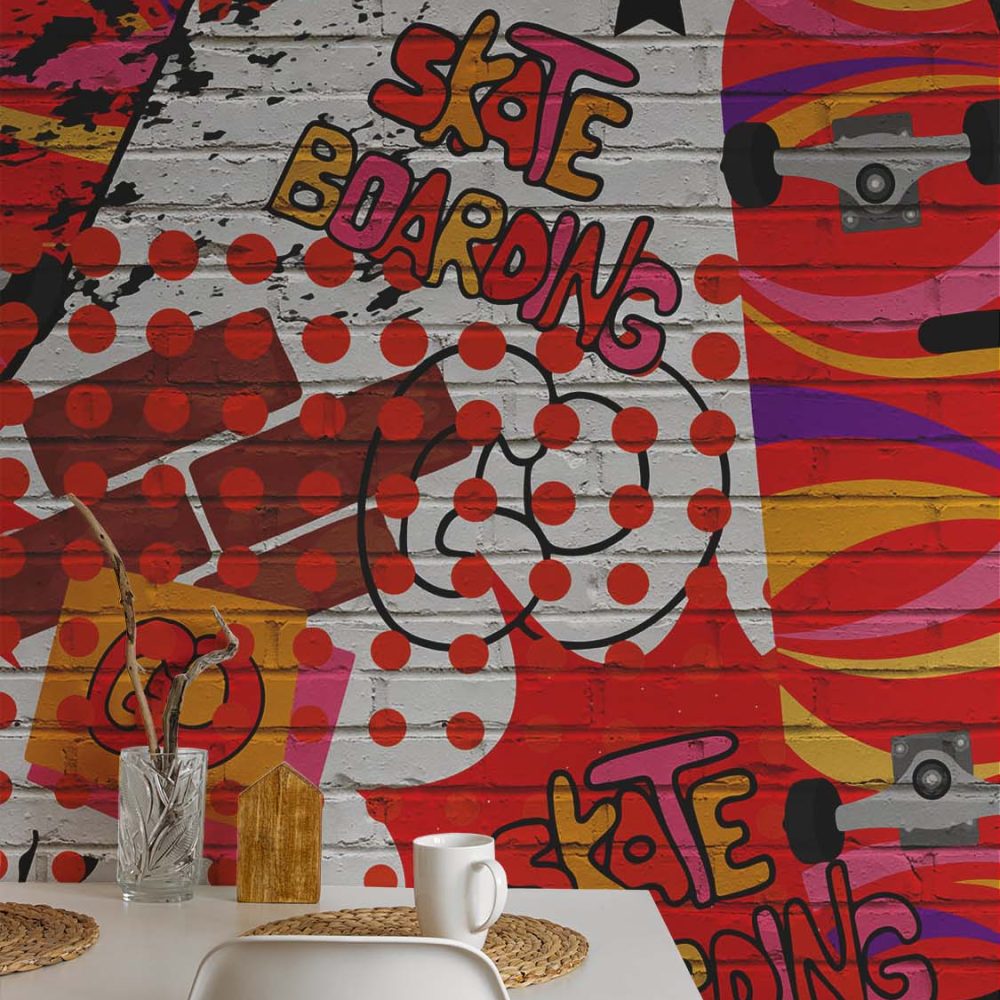 Terug naar collectie / Behang / Rood Skateboard Graffiti Behang