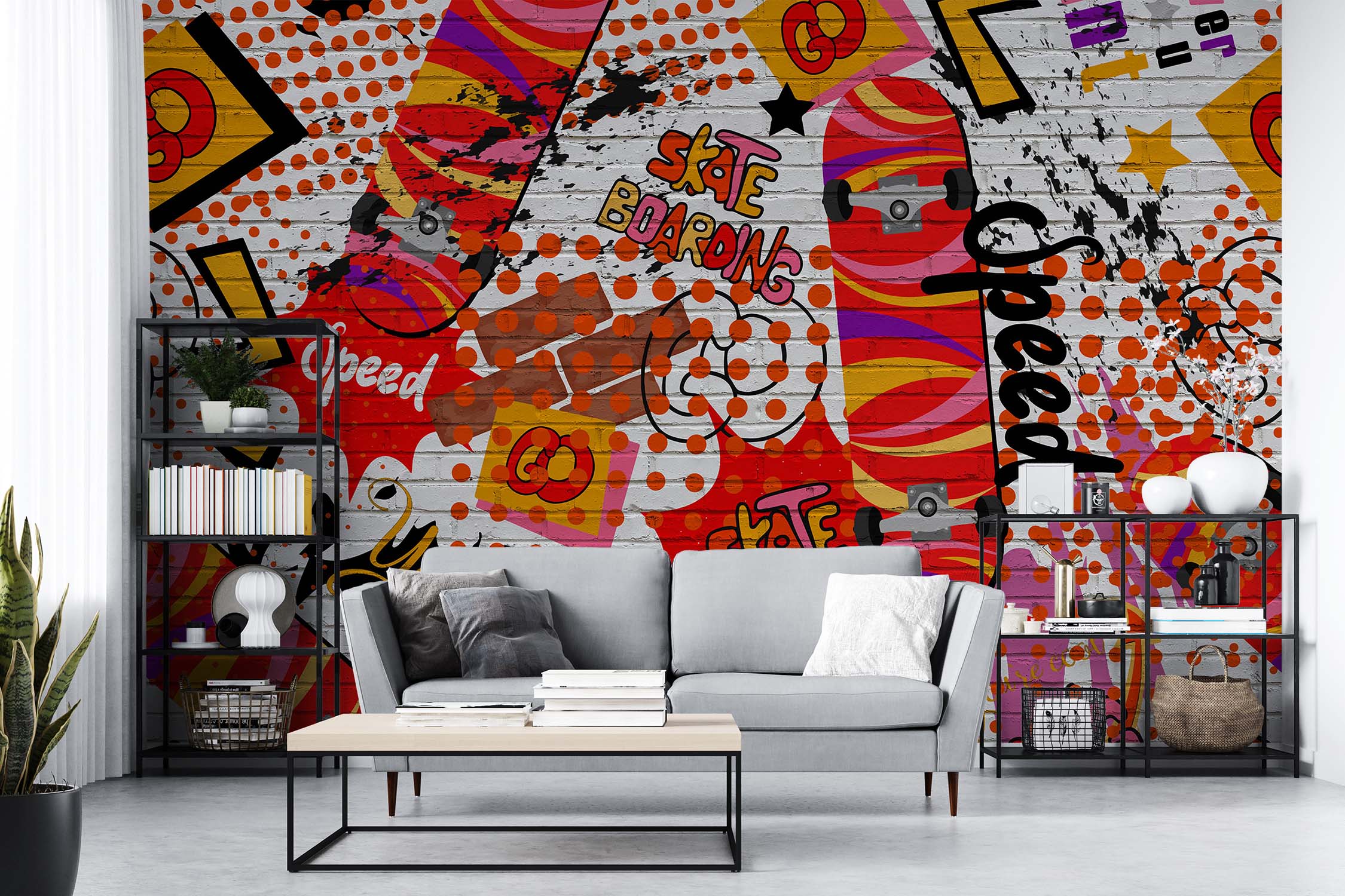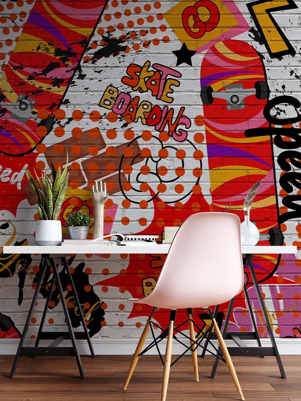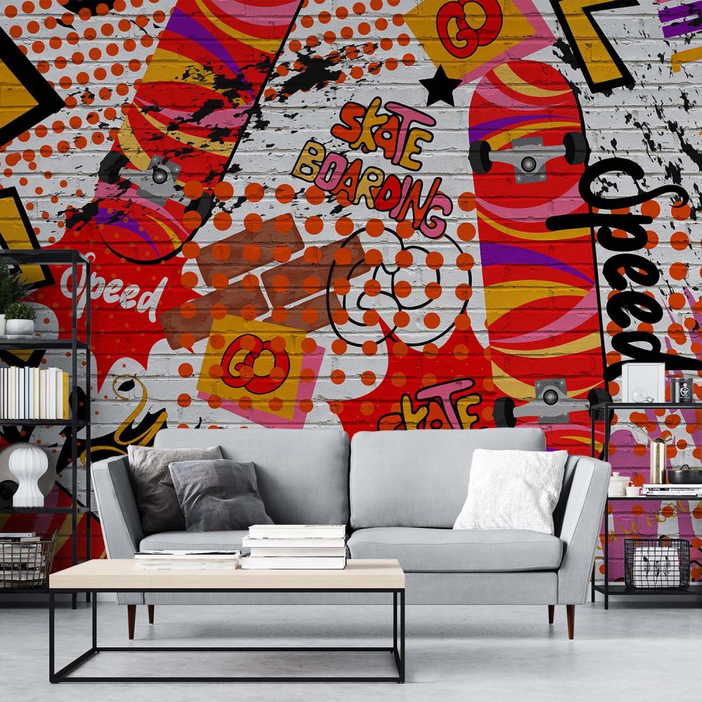 Terug naar collectie / Behang / Rood Skateboard Graffiti Behang