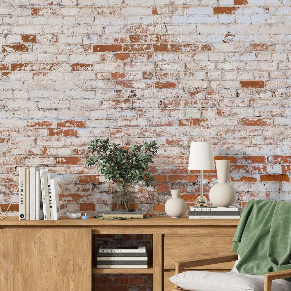 Terug naar collectie / Behang / Baksteen behang / Rood-Wit Industrieel Bakstenen Behang