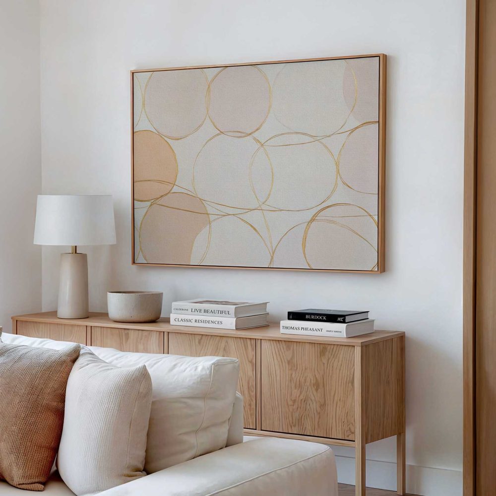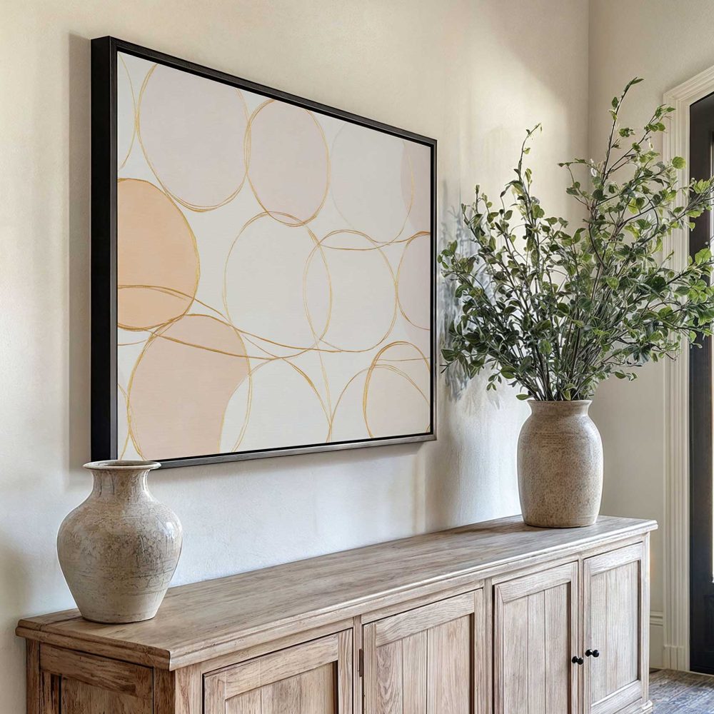 Terug naar collectie / Schilderijen / Abstract Schilderij / Roze-beige cirkelpatroon met goud