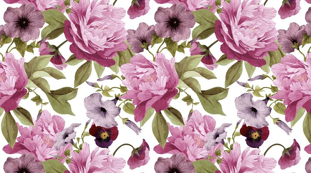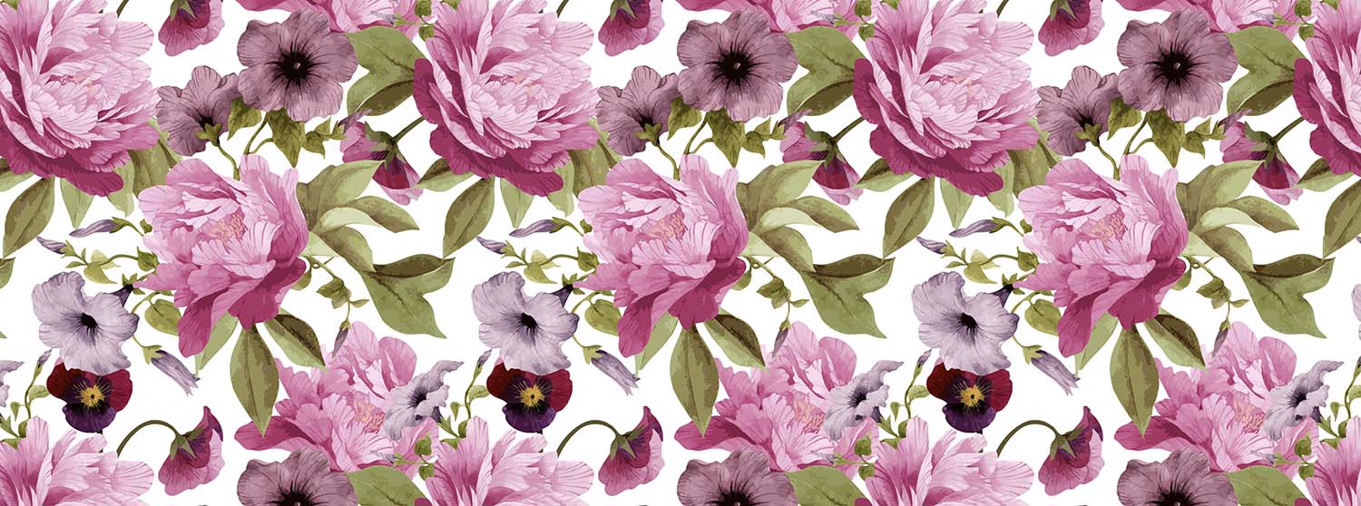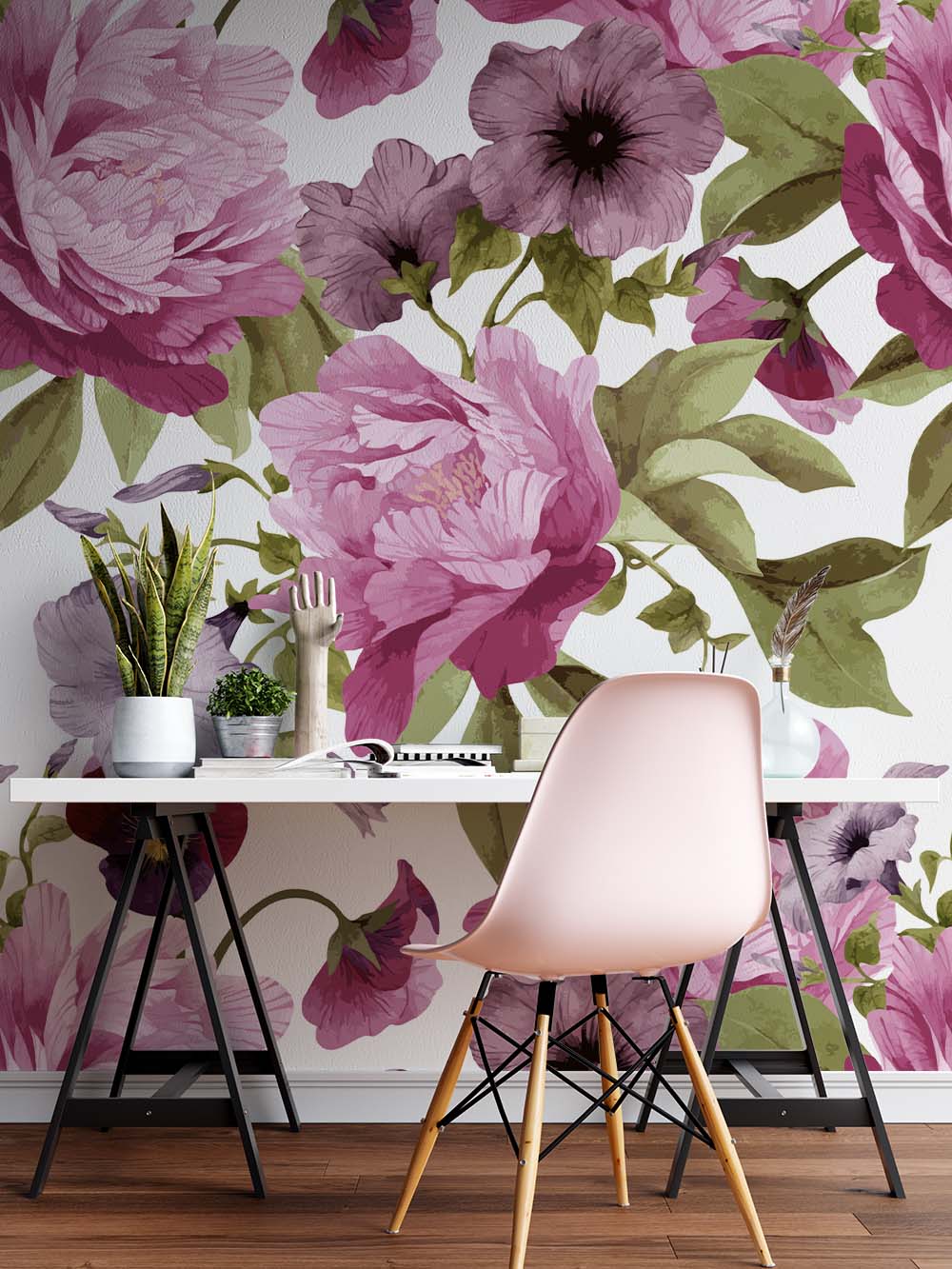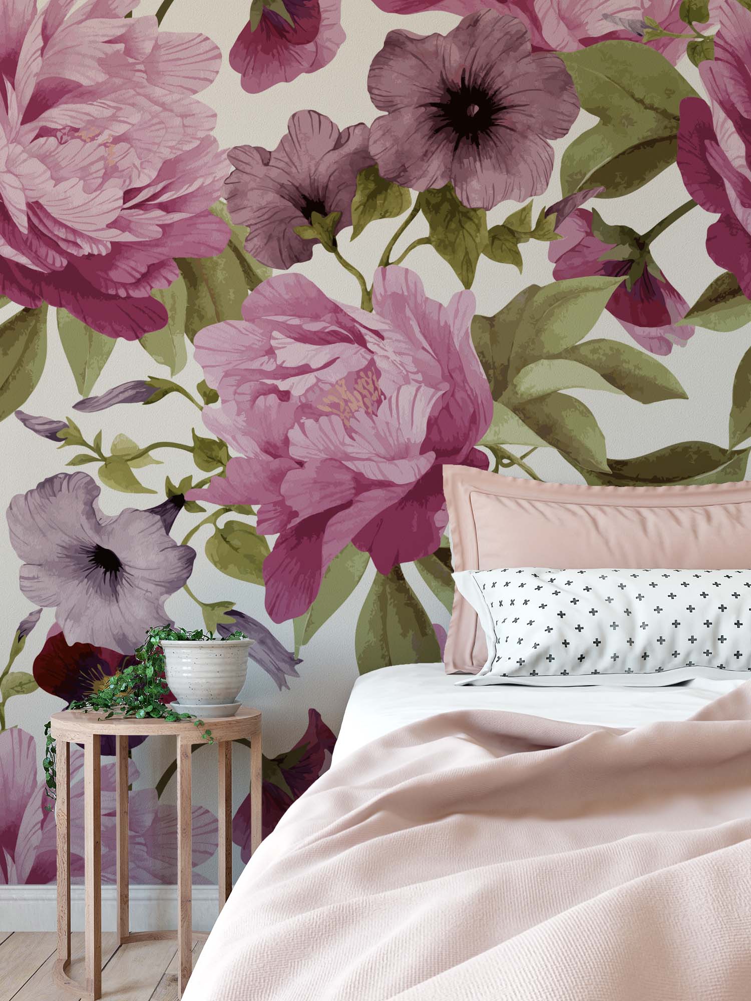 Terug naar collectie / Behang / Roze Bloemen Behang met Paarse Accenten