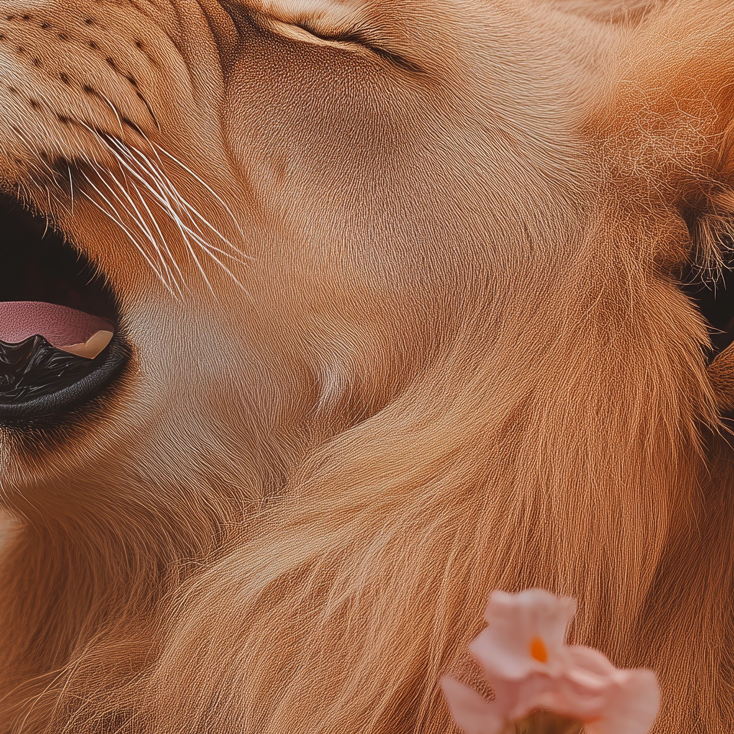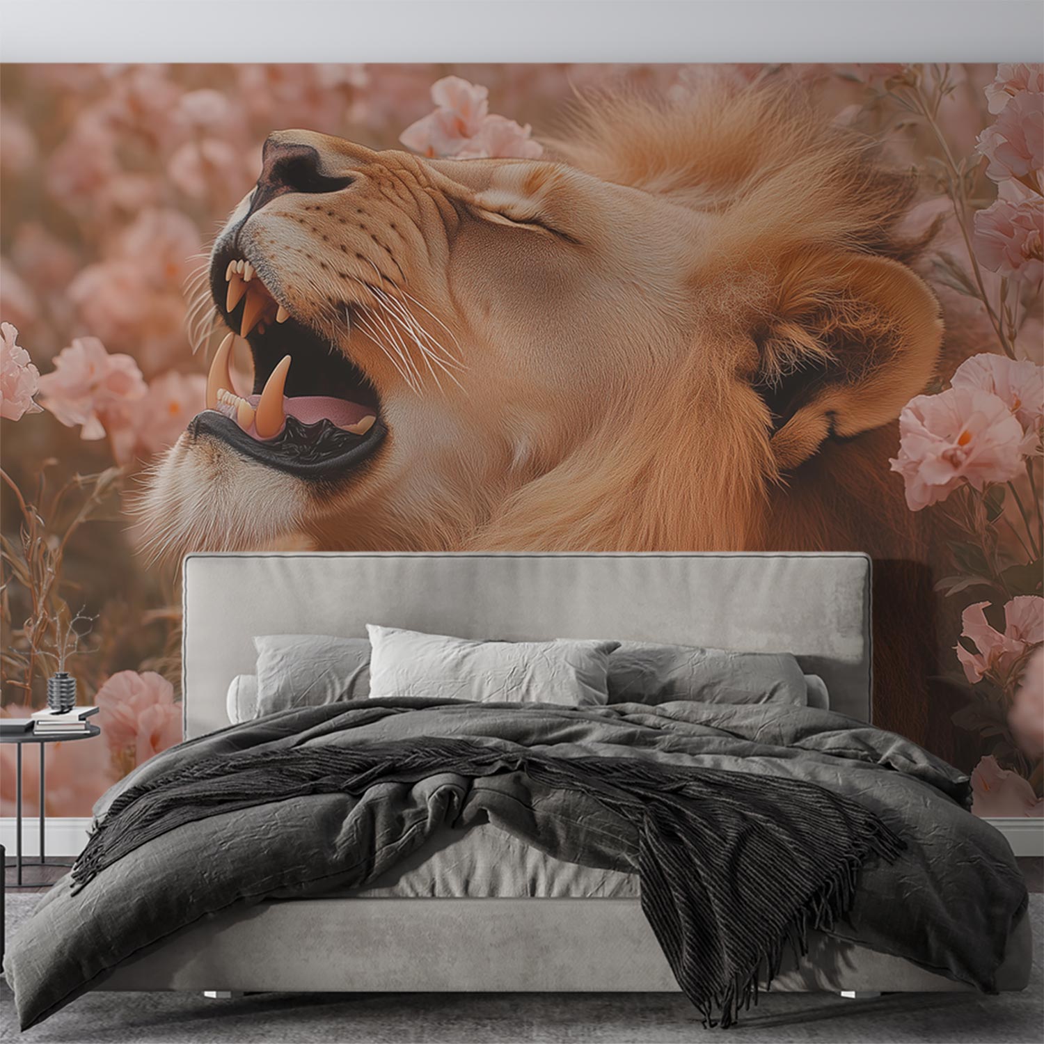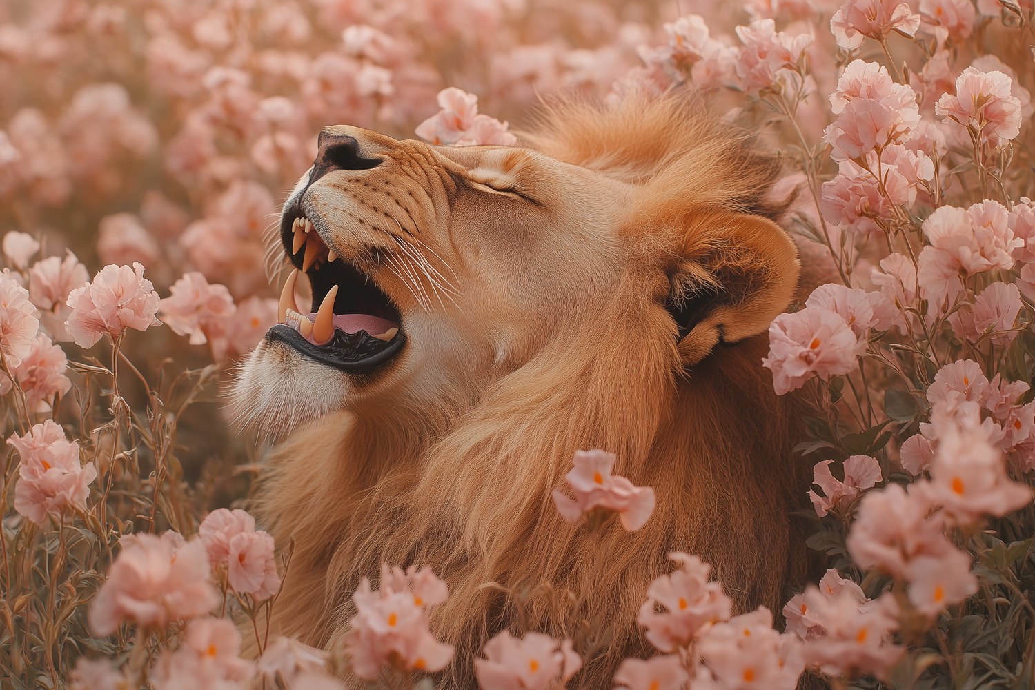 Roze bloemen leeuwensfeer behang