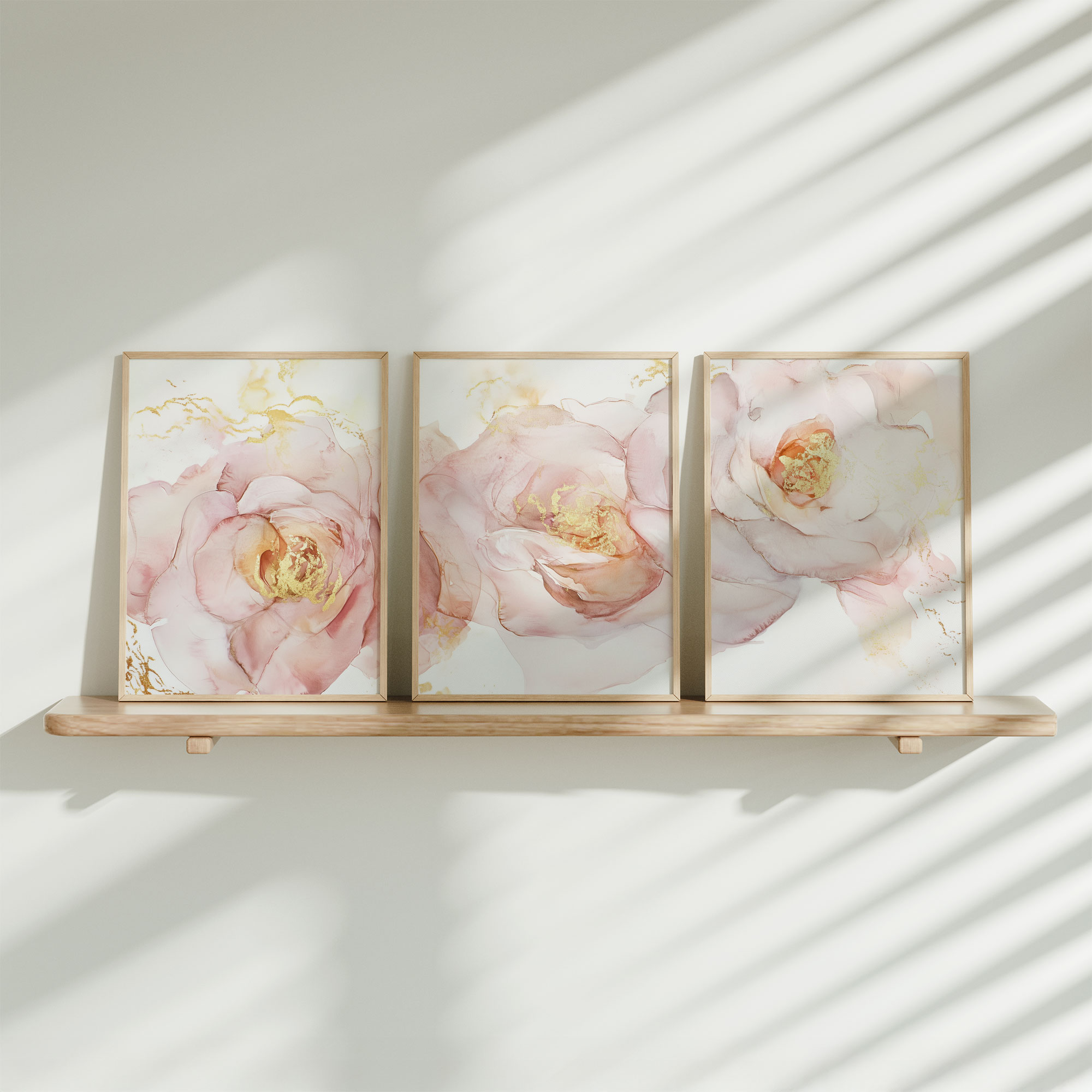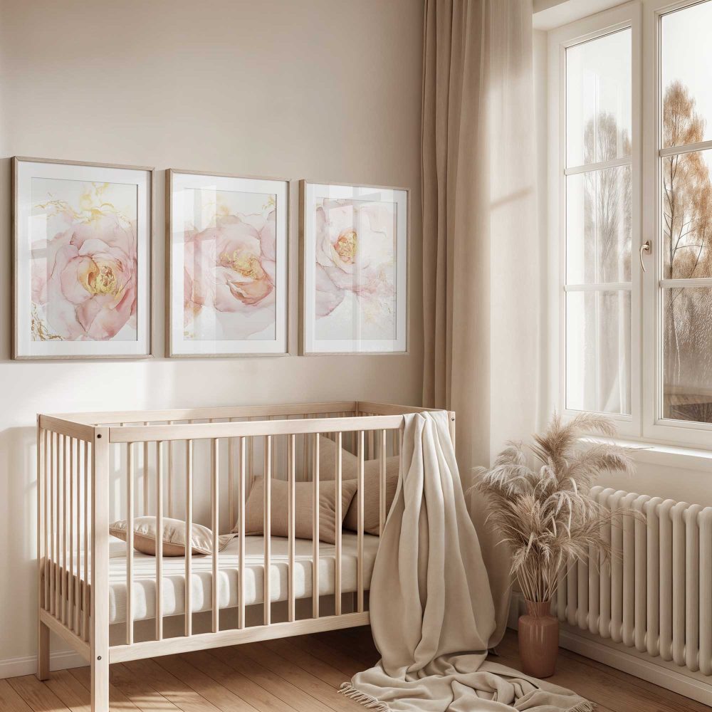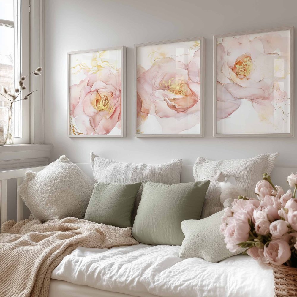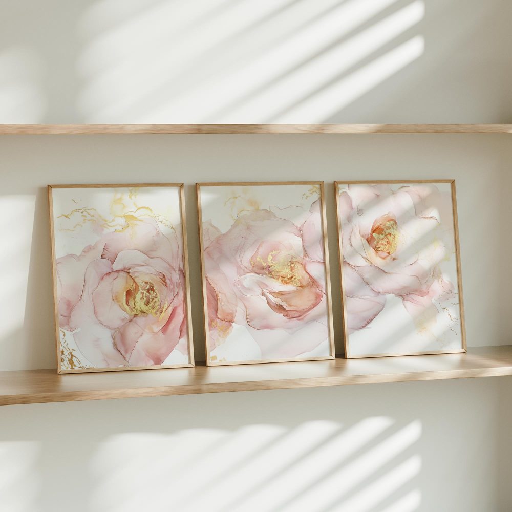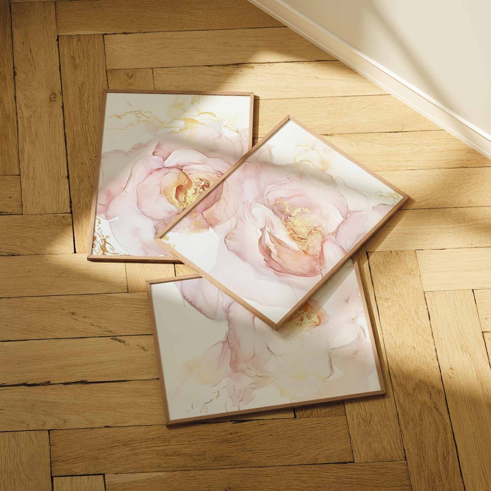 Terug naar collectie / Kinderkamer posters / Bloemen posters / Roze Bloemen met Gouden Toets – Elegante Wanddecoratie