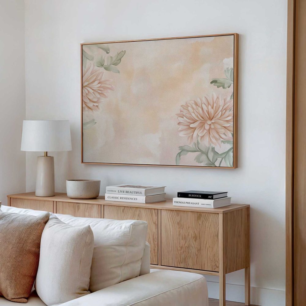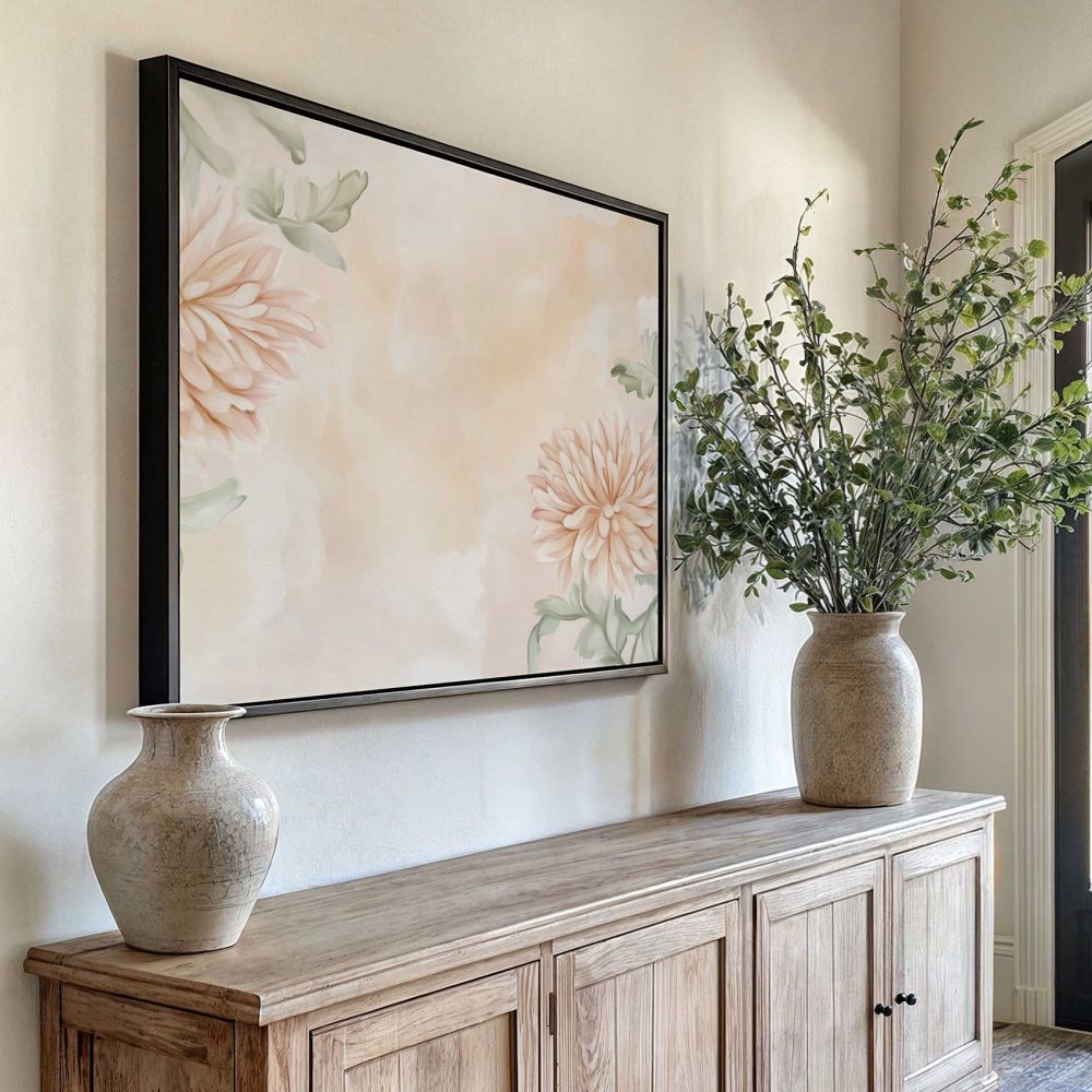 Terug naar collectie / Schilderijen / Bloemen Schilderij / Roze chrysanten bloemstuk