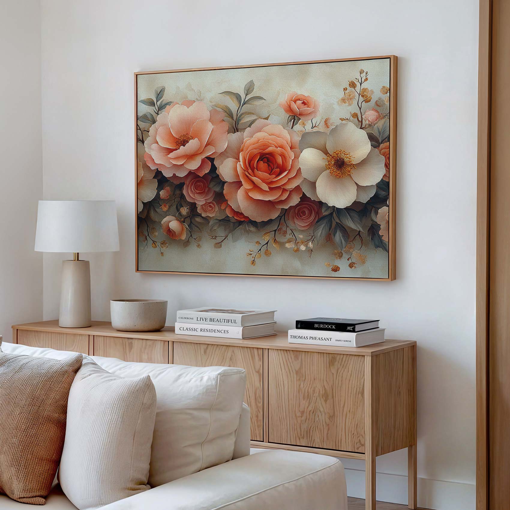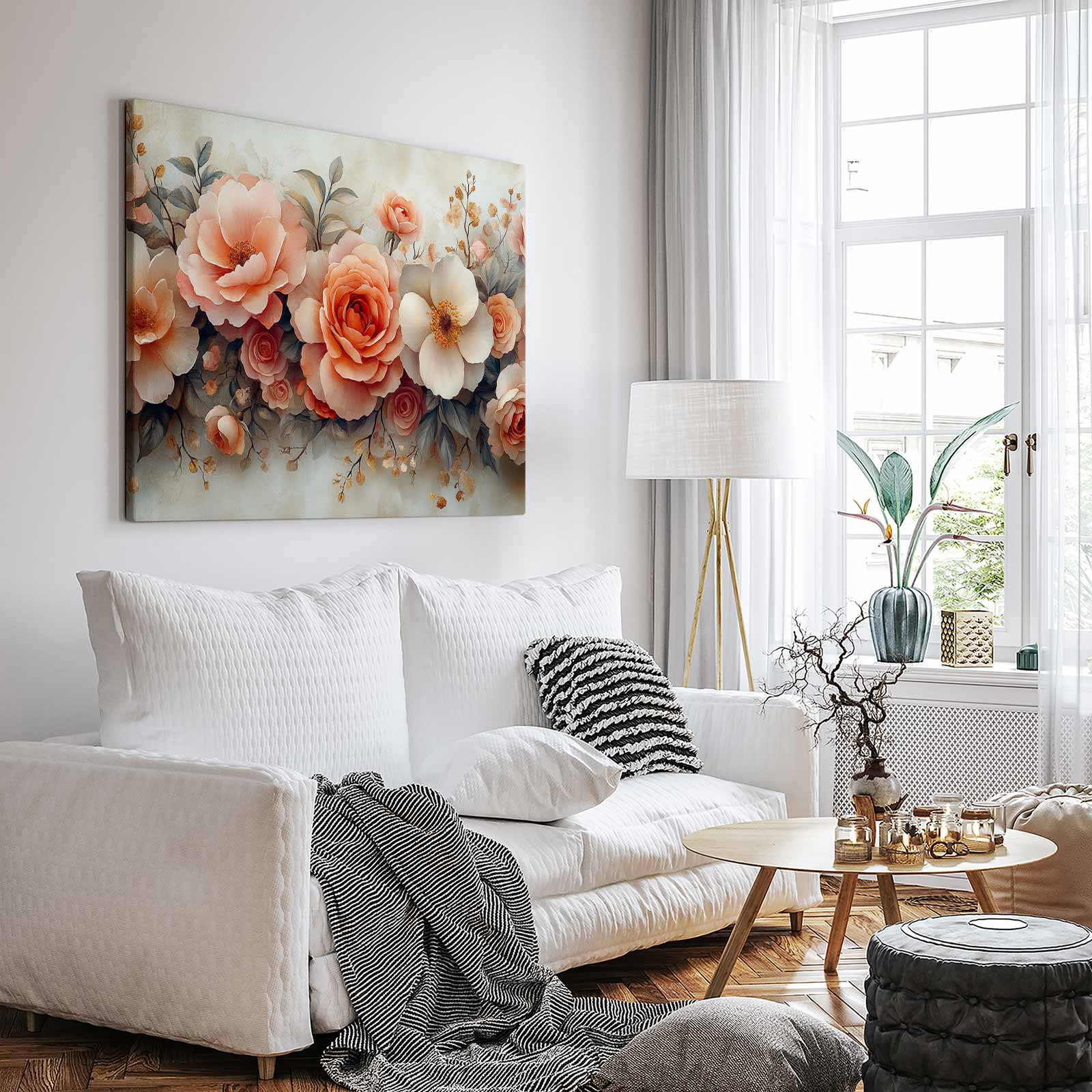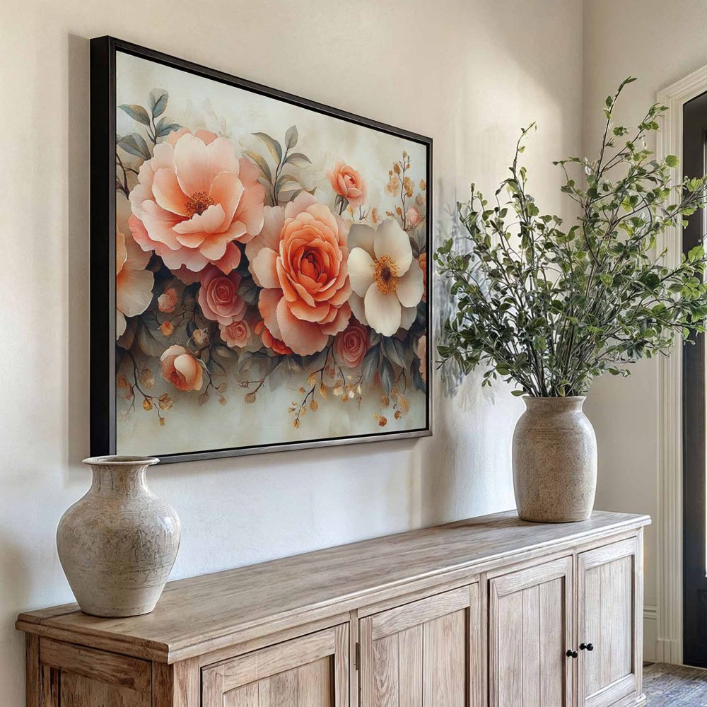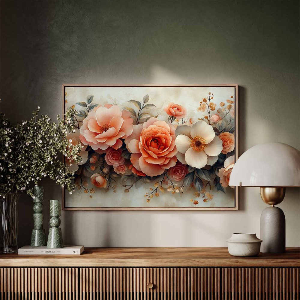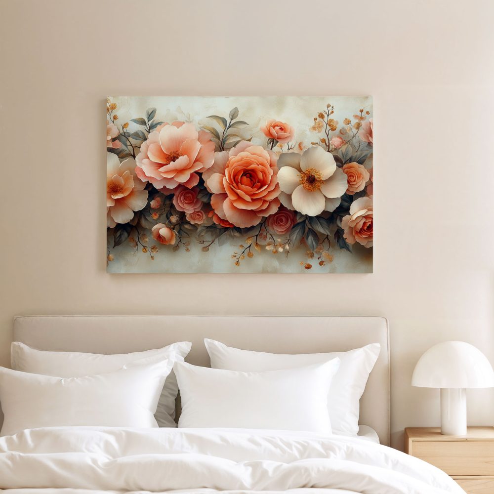 Terug naar collectie / Schilderijen / Bloemen Schilderij / Roze en witte rozenboeket
