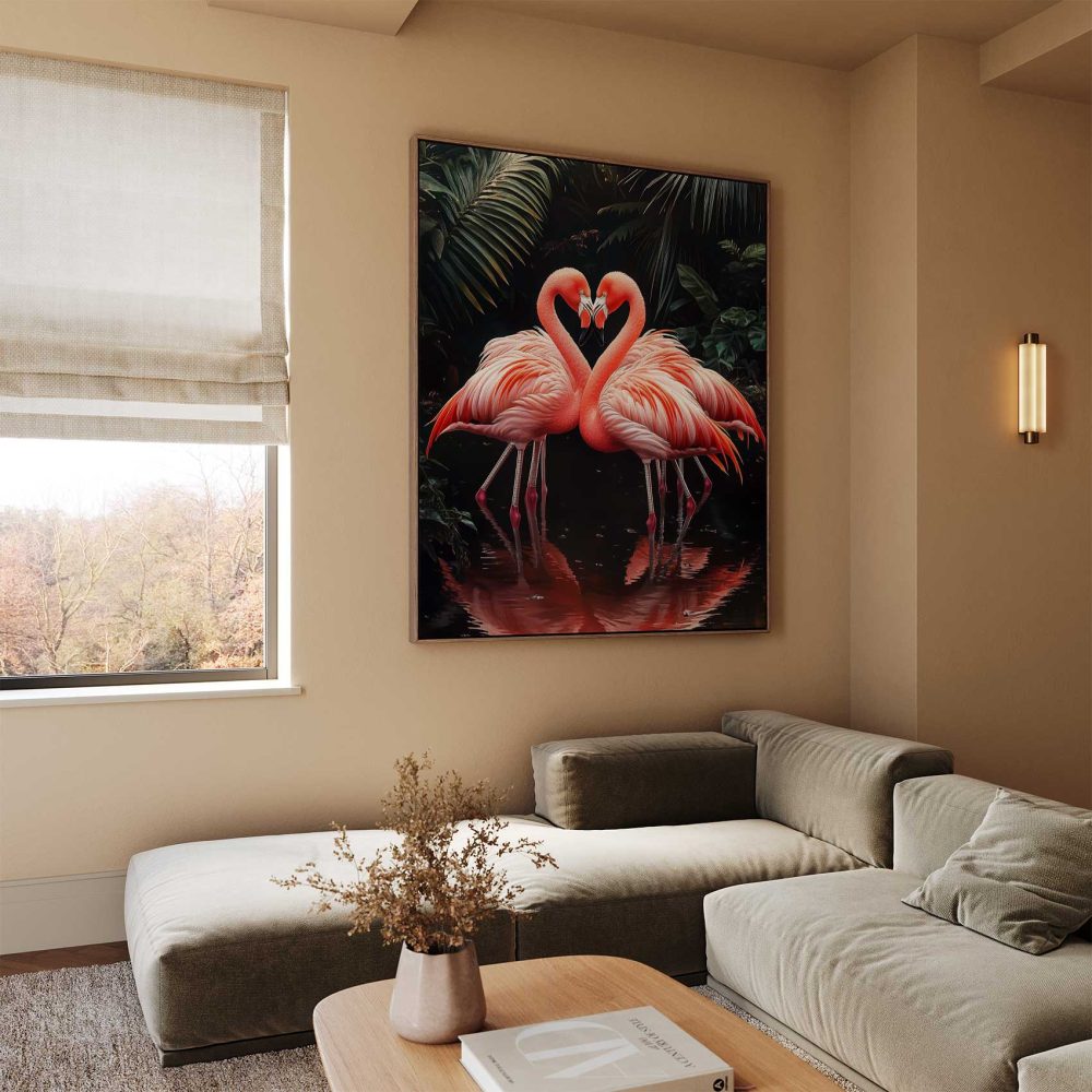 Terug naar collectie / Schilderijen / Bloemen Schilderij / Roze flamingohart in water