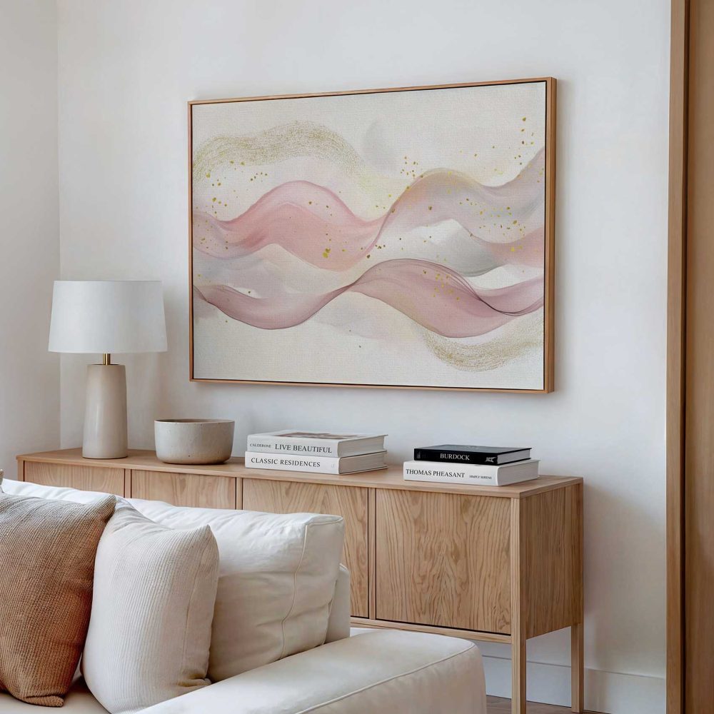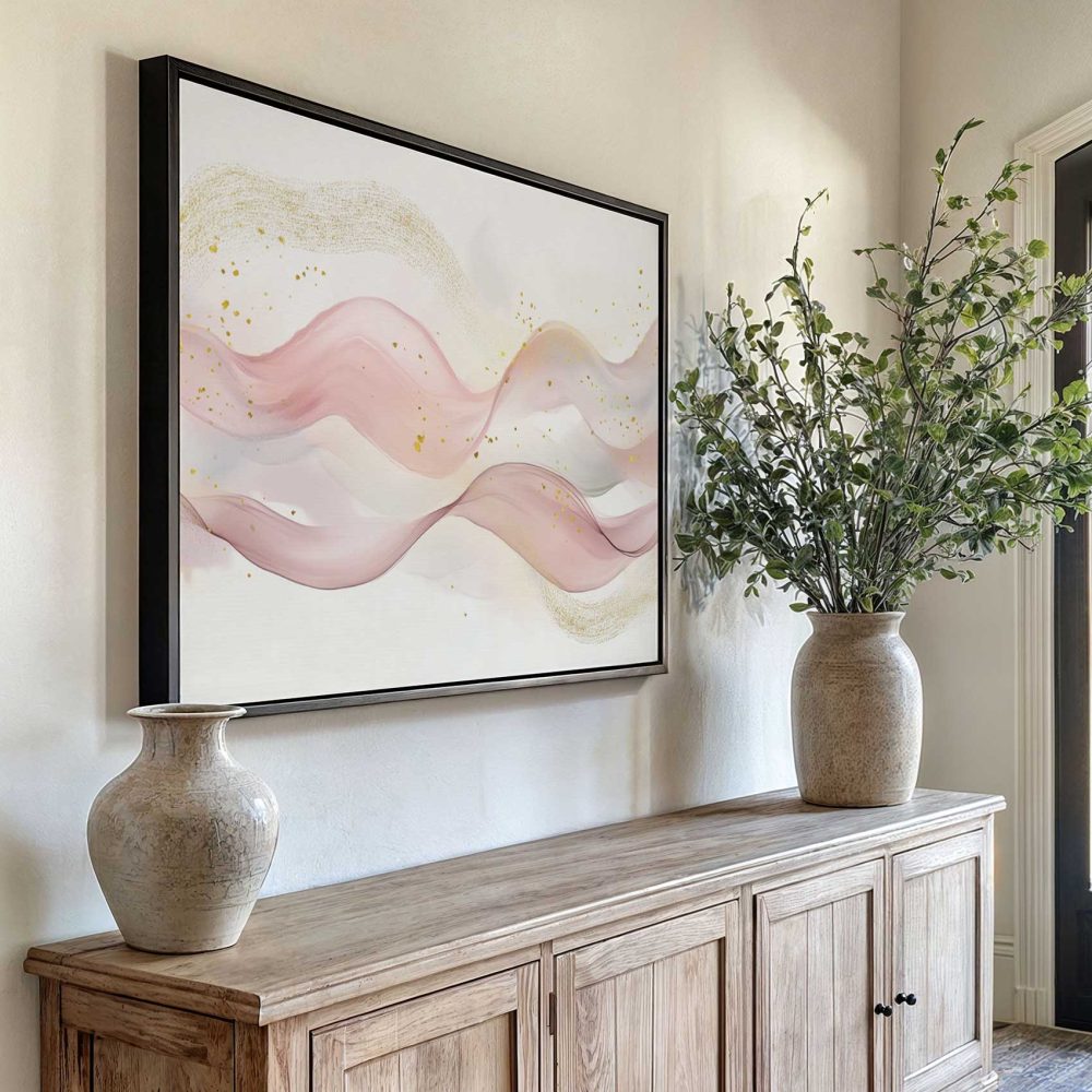 Terug naar collectie / Schilderijen / Abstract Schilderij / Roze golvende droomabstractie