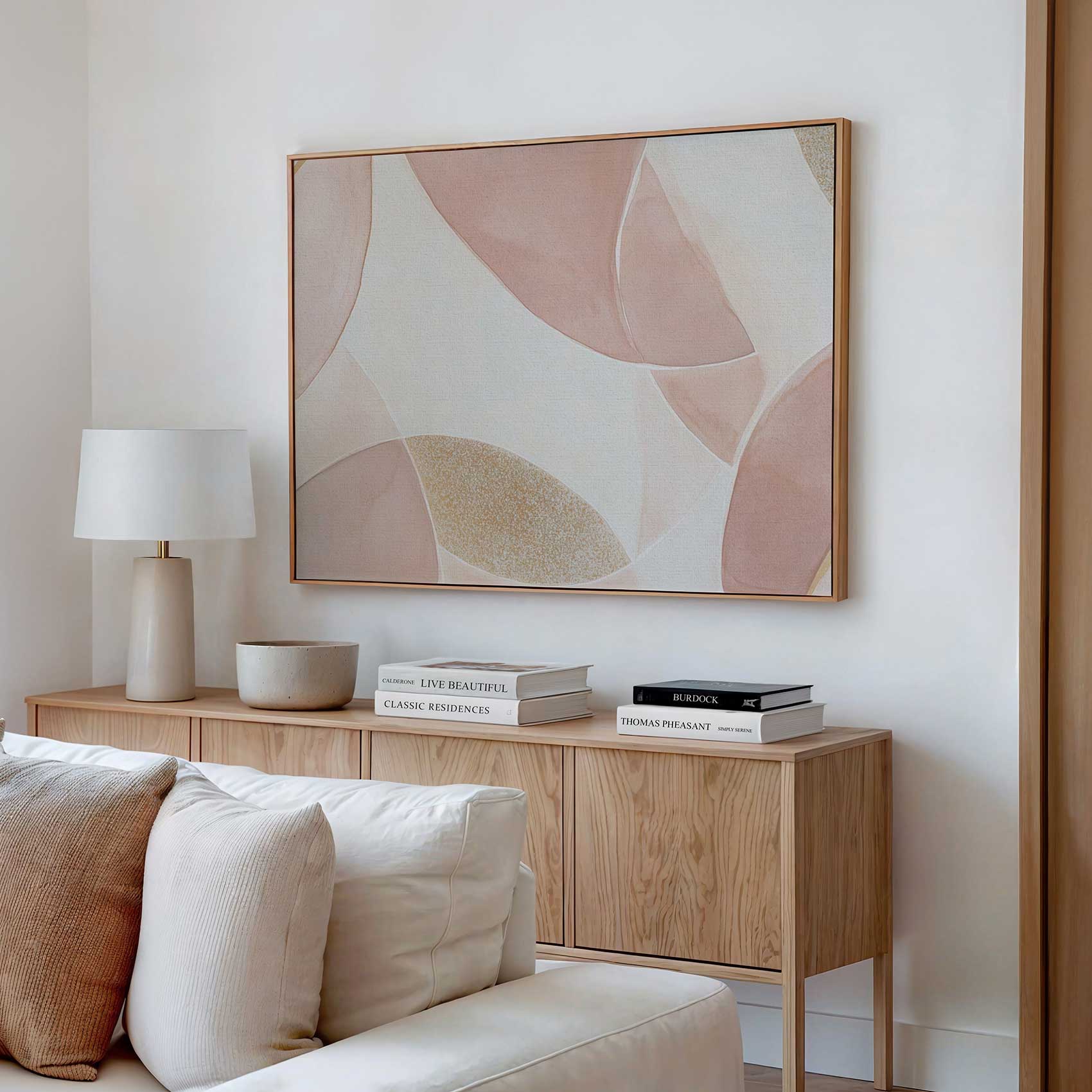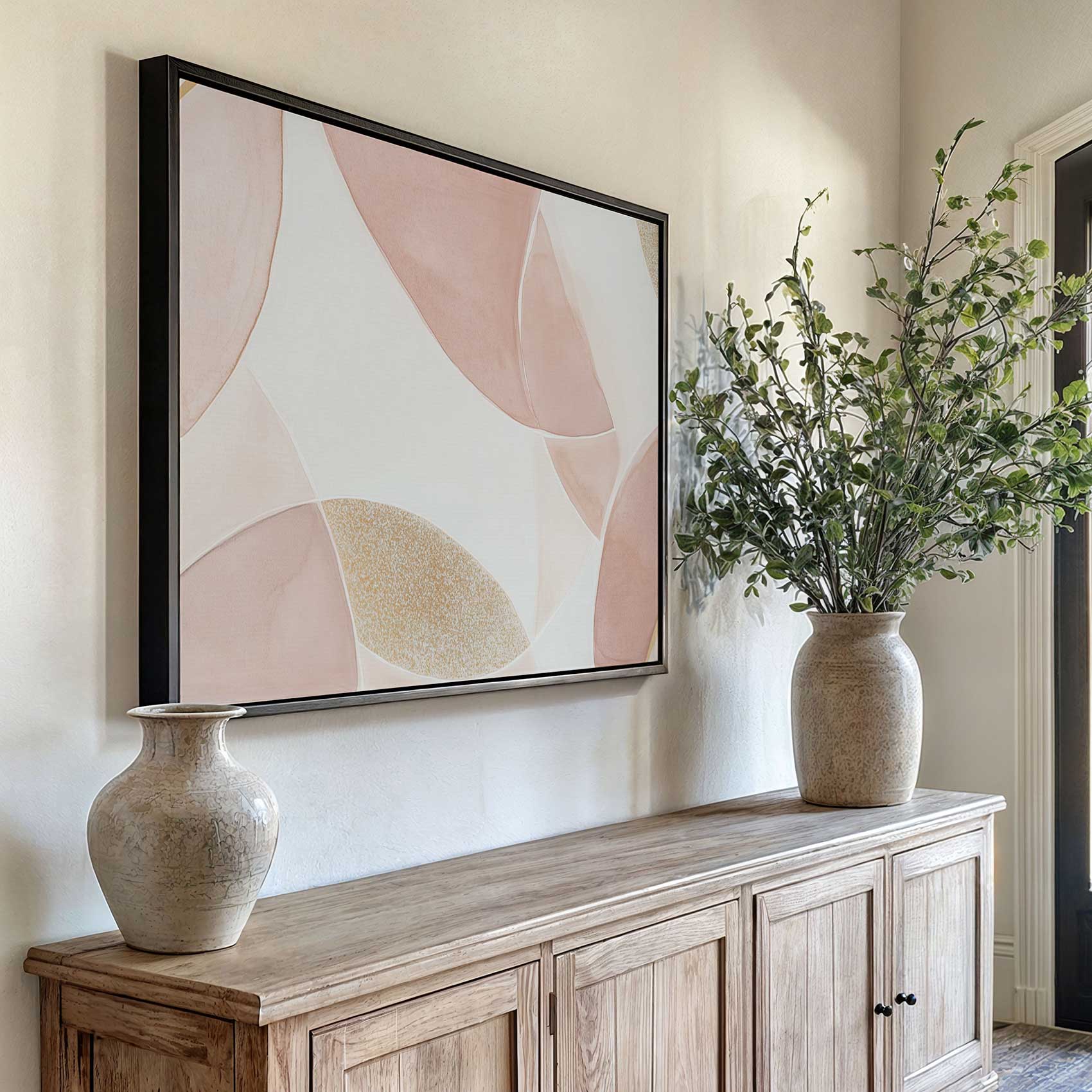 Terug naar collectie / Schilderijen / Abstract Schilderij / Roze-Gouden Abstract Kunstwerk