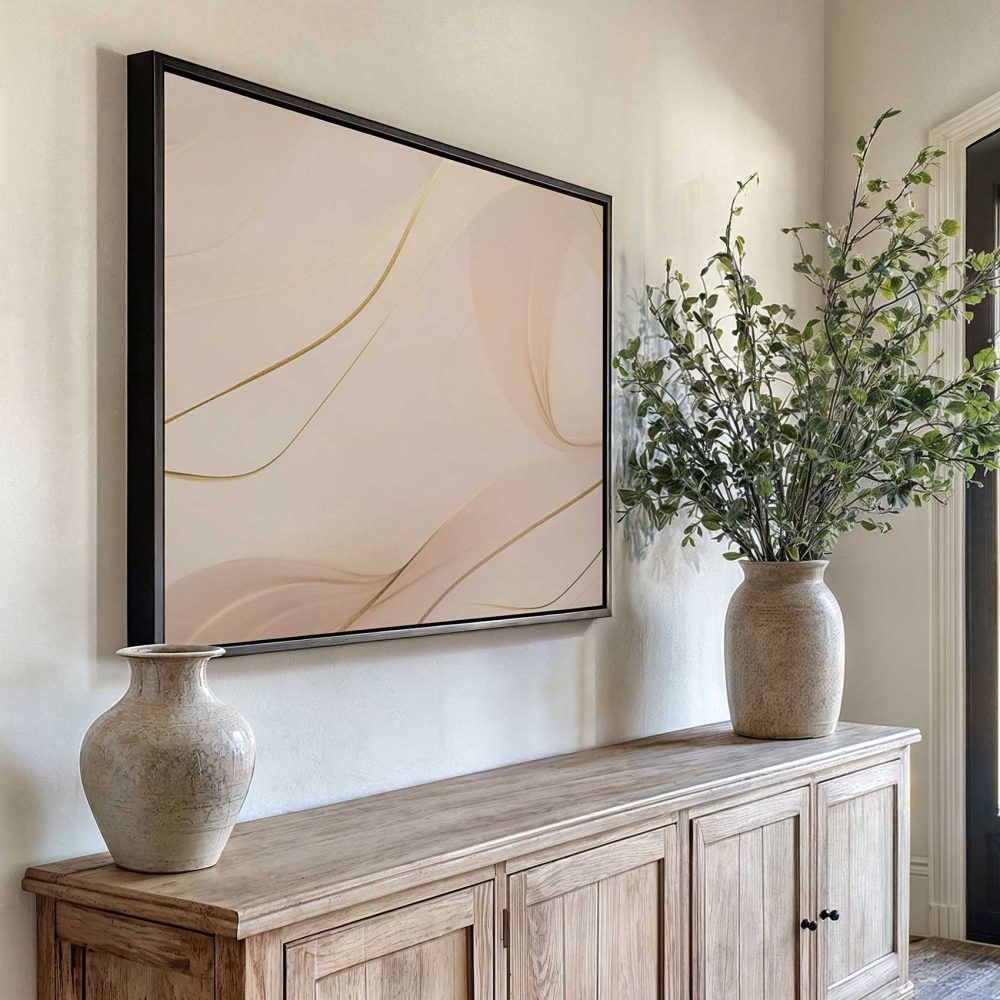 Terug naar collectie / Schilderijen / Abstract Schilderij / Roze Gouden Abstracte Elegantie