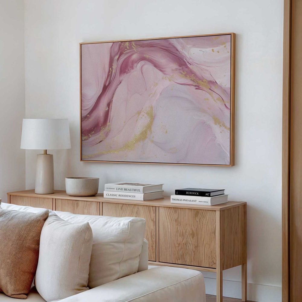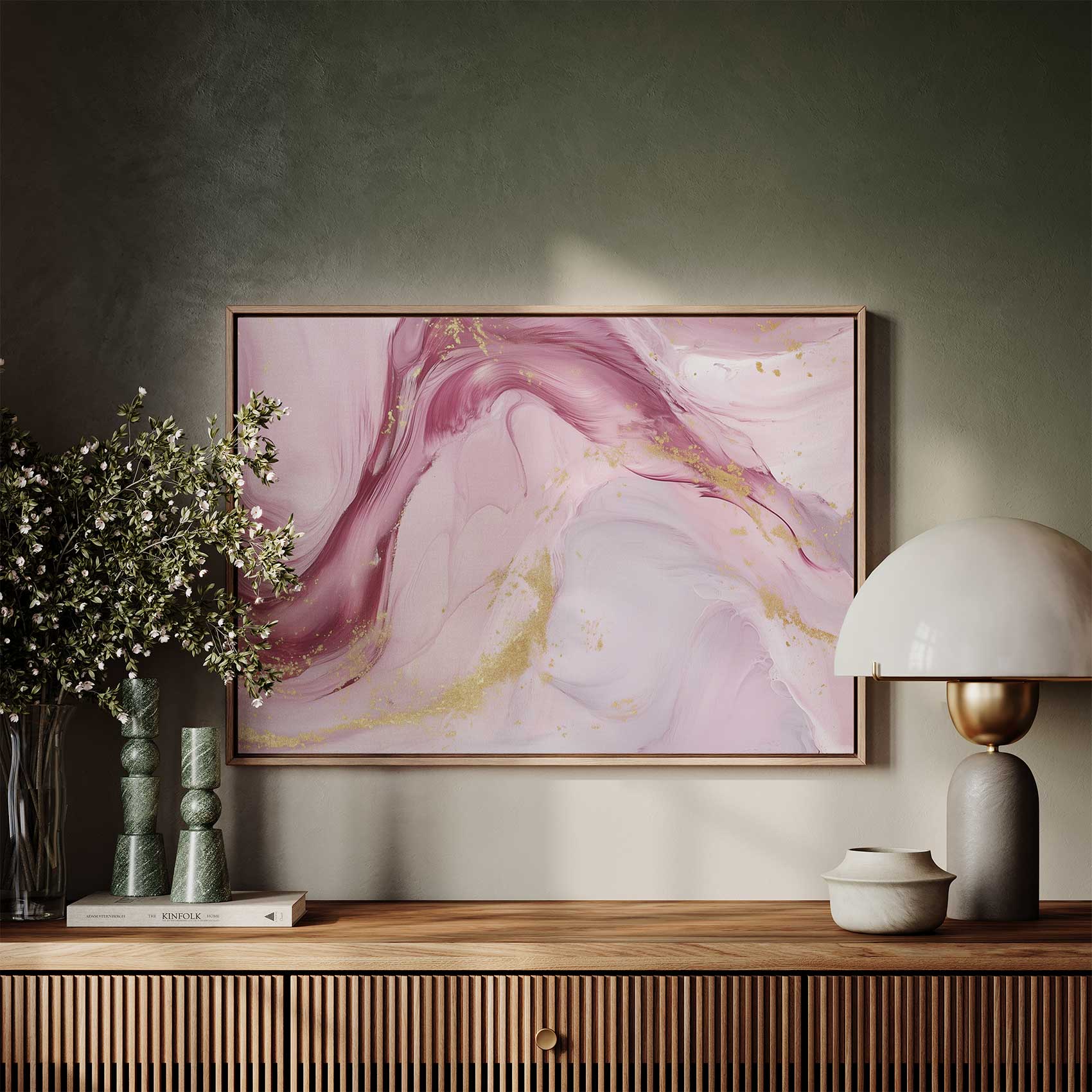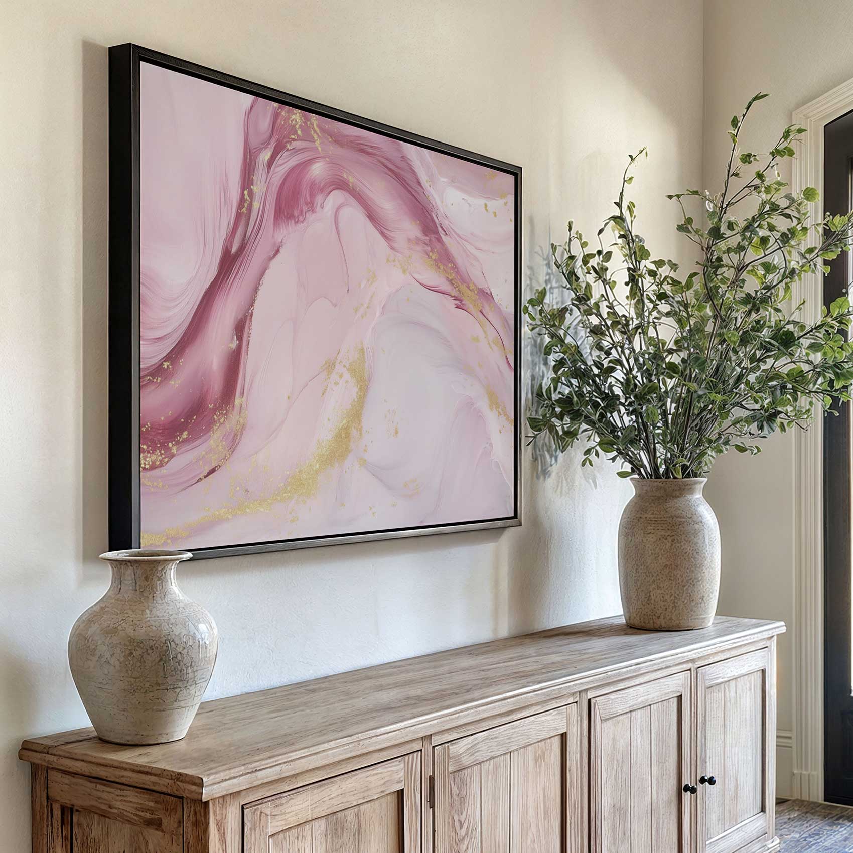 Terug naar collectie / Schilderijen / Abstract Schilderij / Roze Gouden Abstracte Swirls