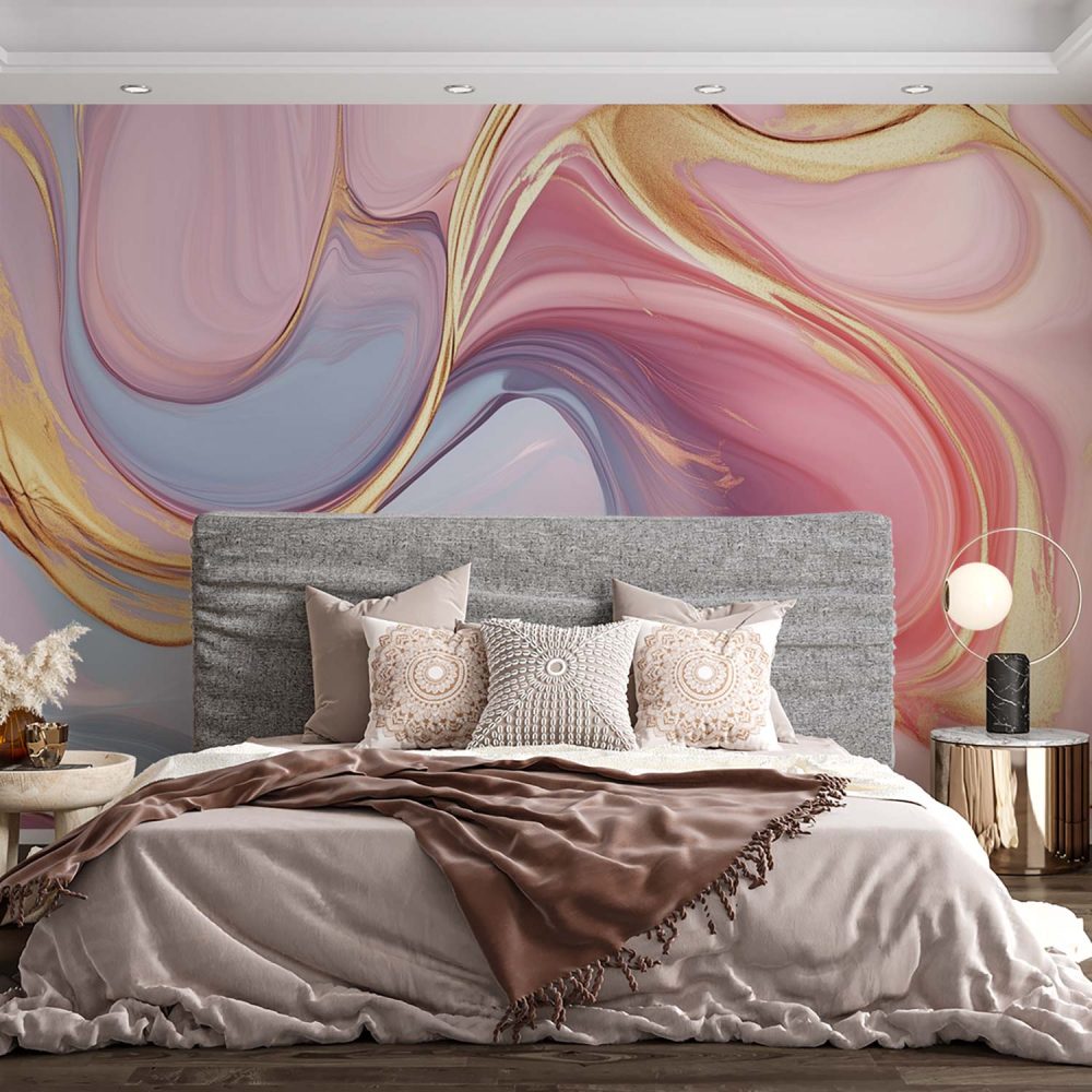 Terug naar collectie / Behang / Abstract behang / Roze Gouden Abstracte Werveling behang