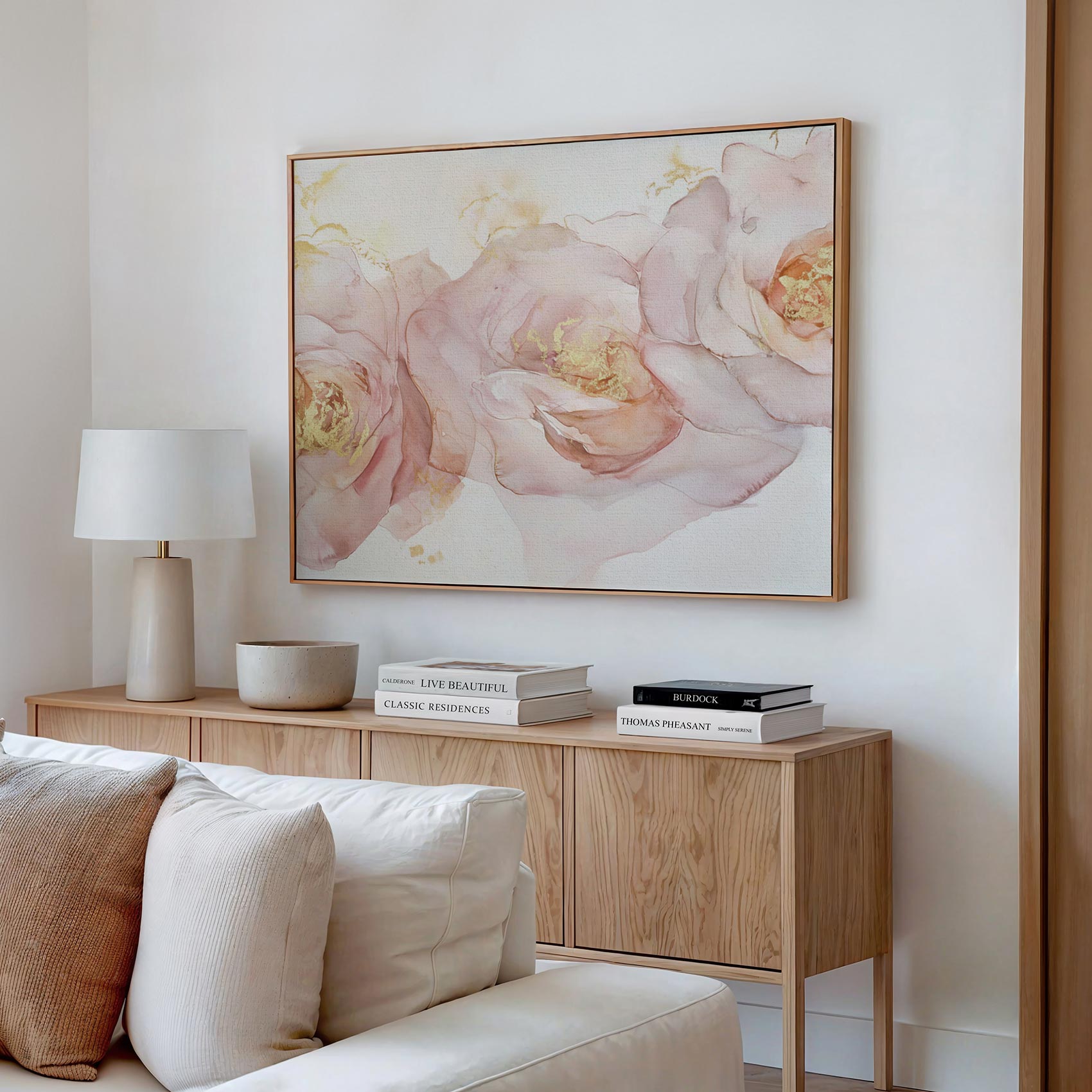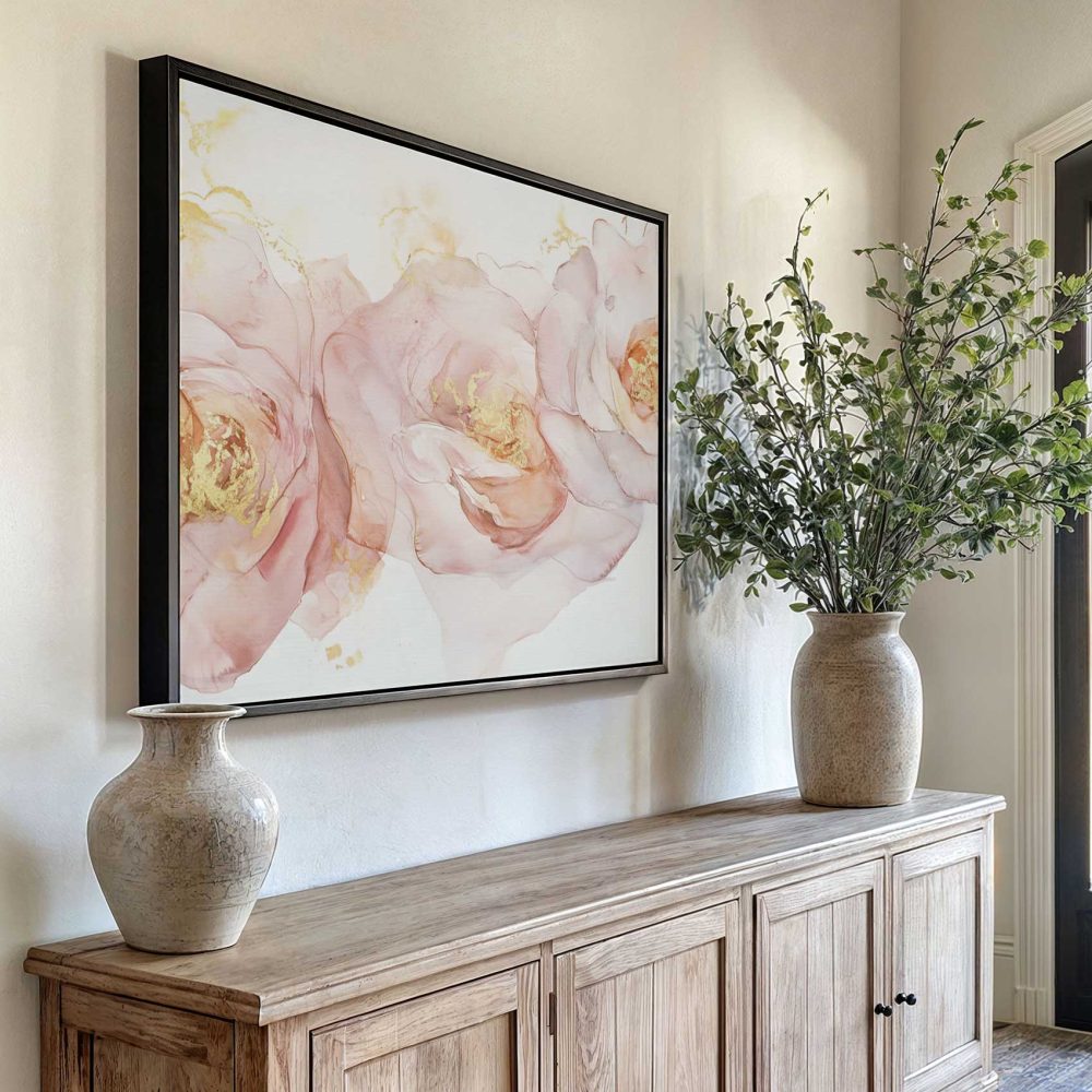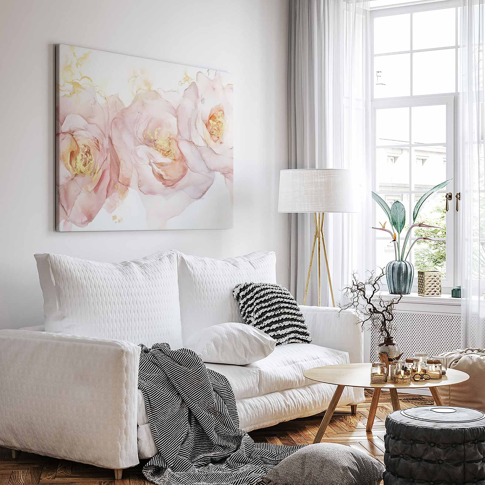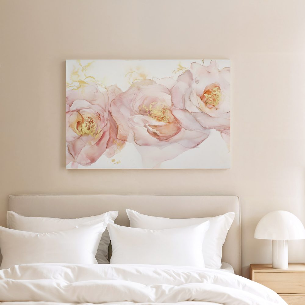 Terug naar collectie / Schilderijen / Bloemen Schilderij / Roze-Gouden Bloemen Aquarel