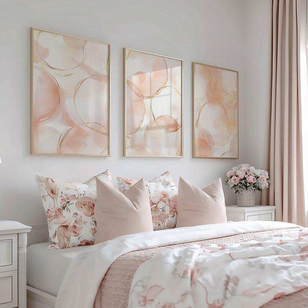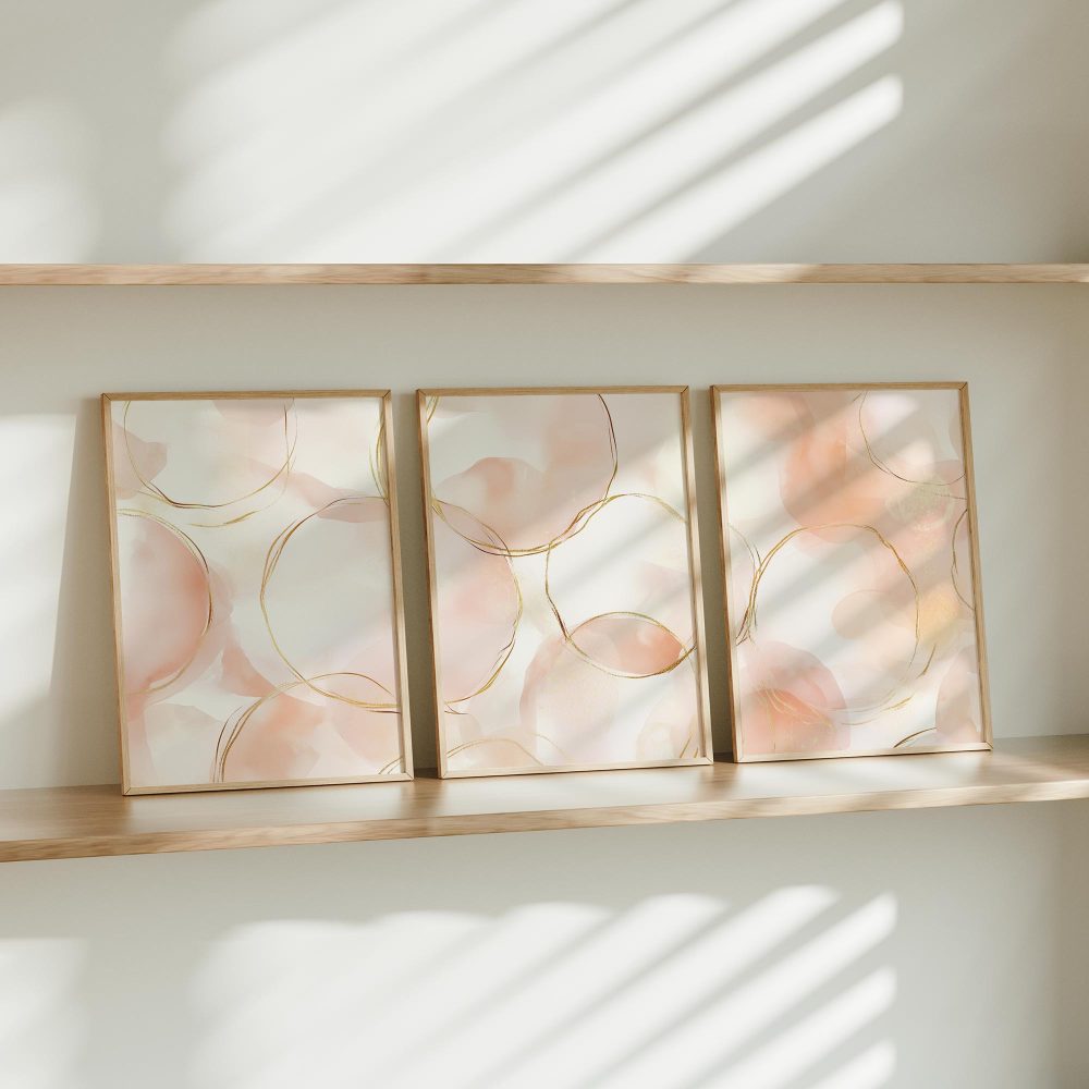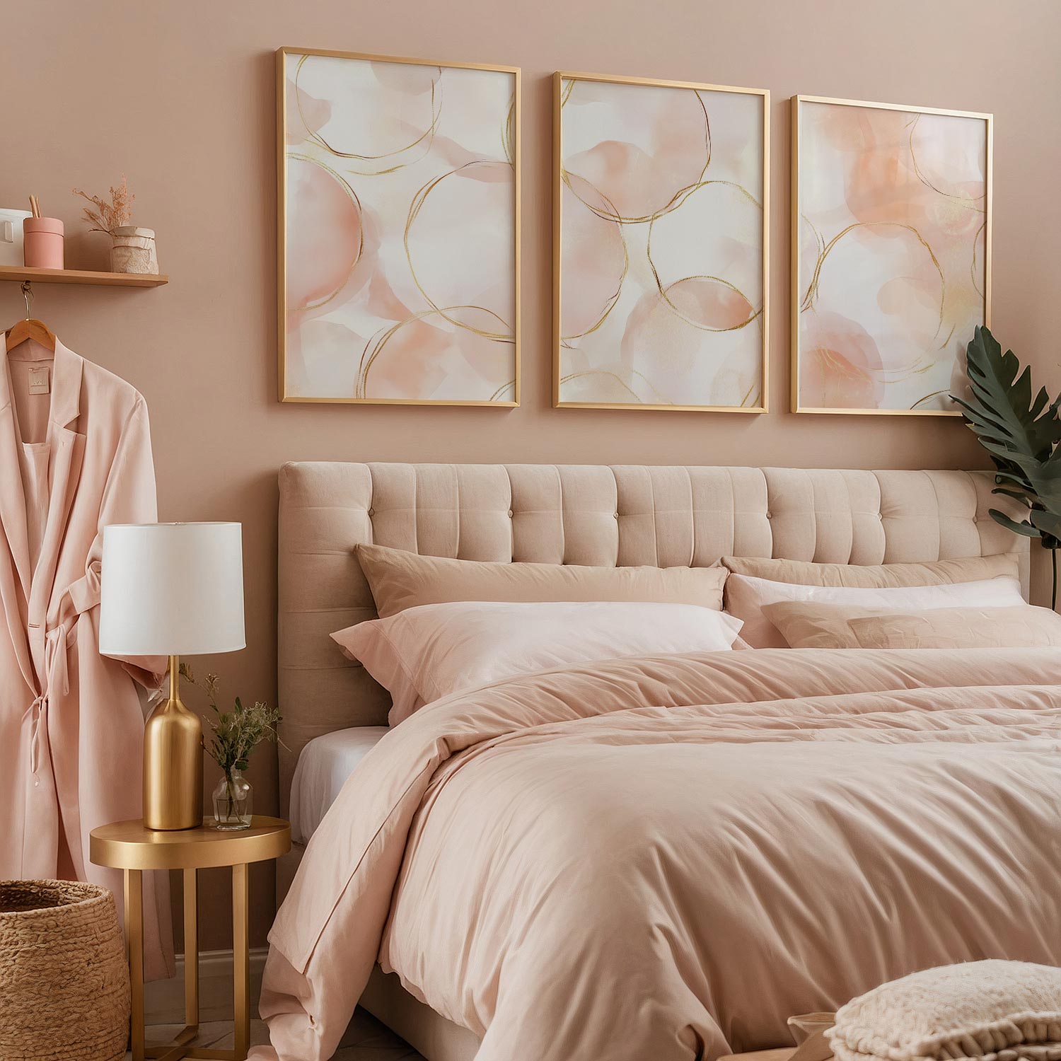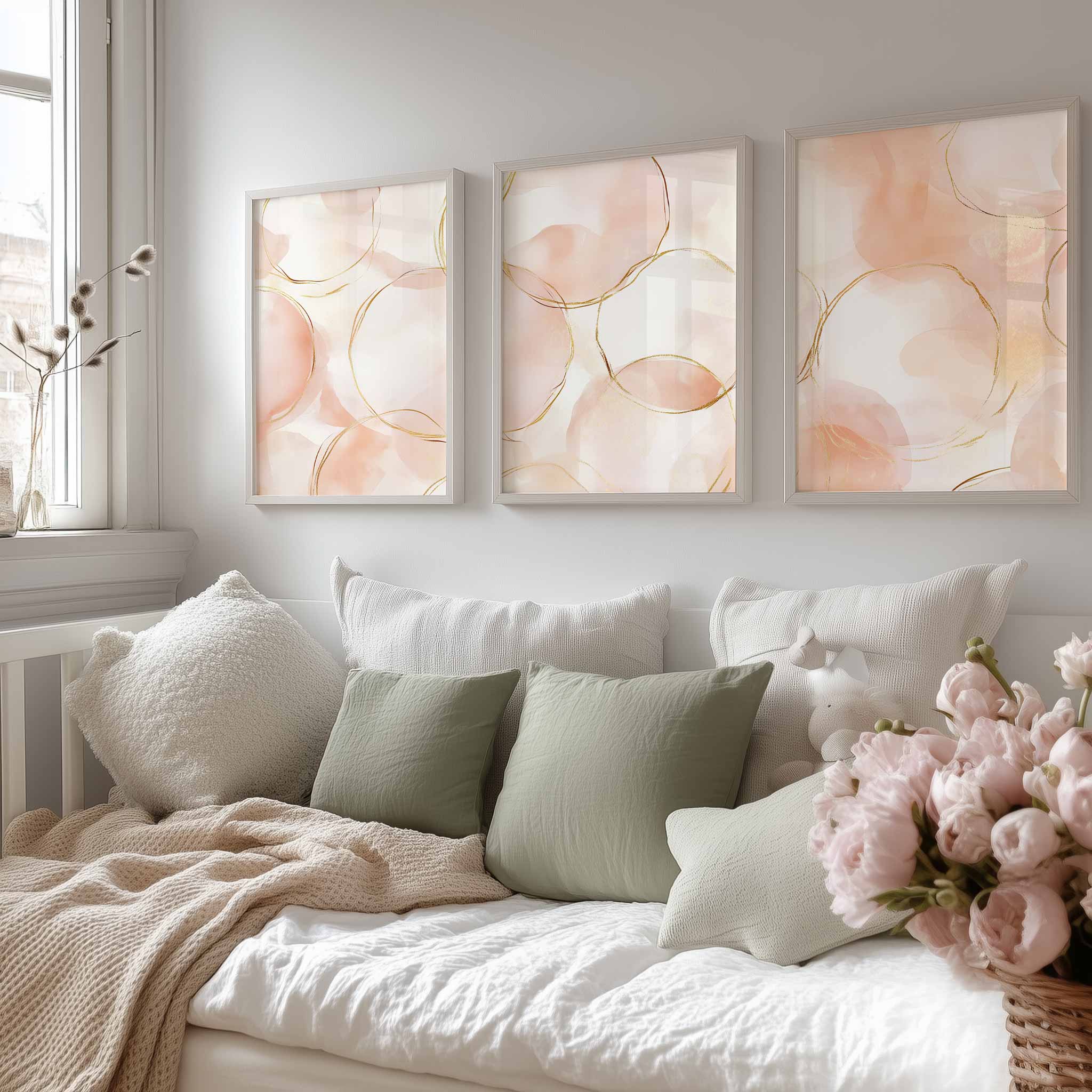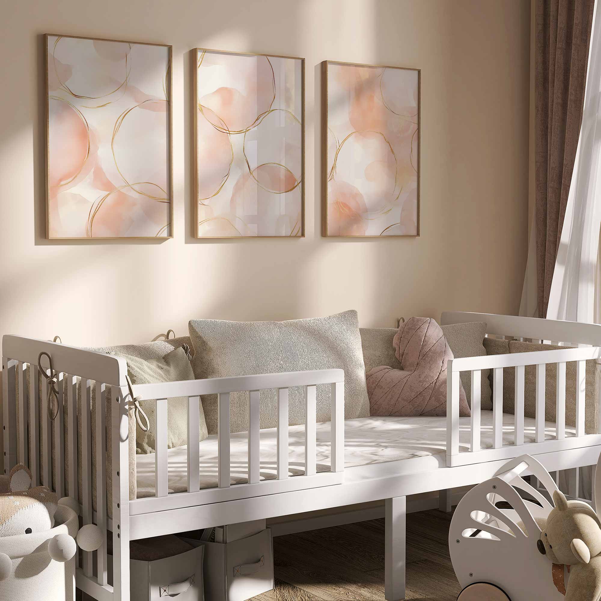 Terug naar collectie / Kinderkamer posters / Roze Gouden Cirkels: Speels Elegant Patroon