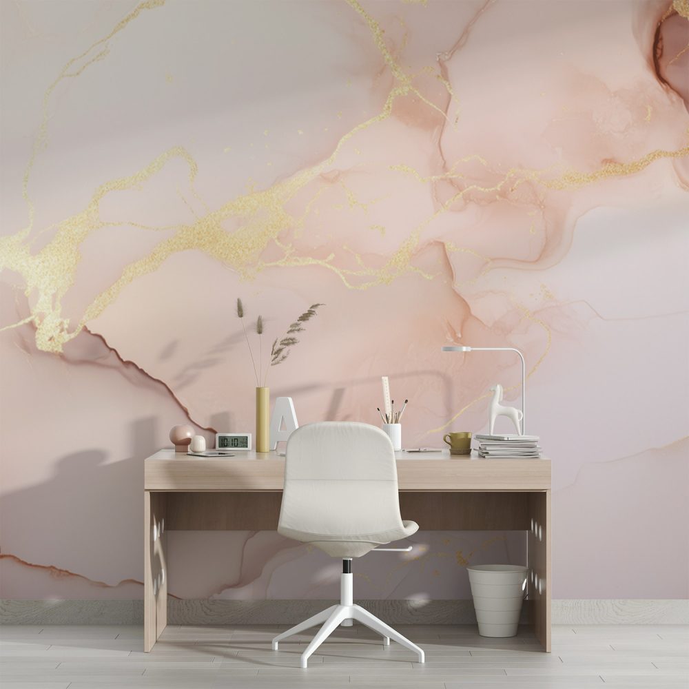 Terug naar collectie / Behang / Abstract behang / Roze Gouden Marmeren Textuur behang