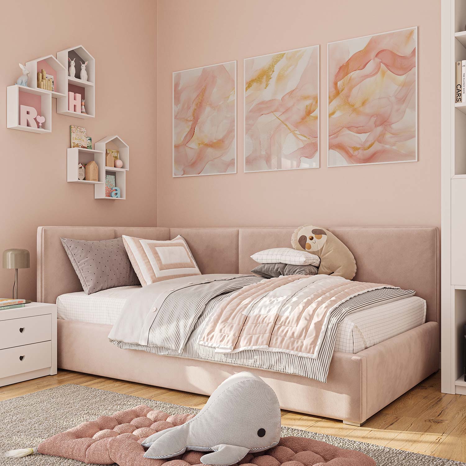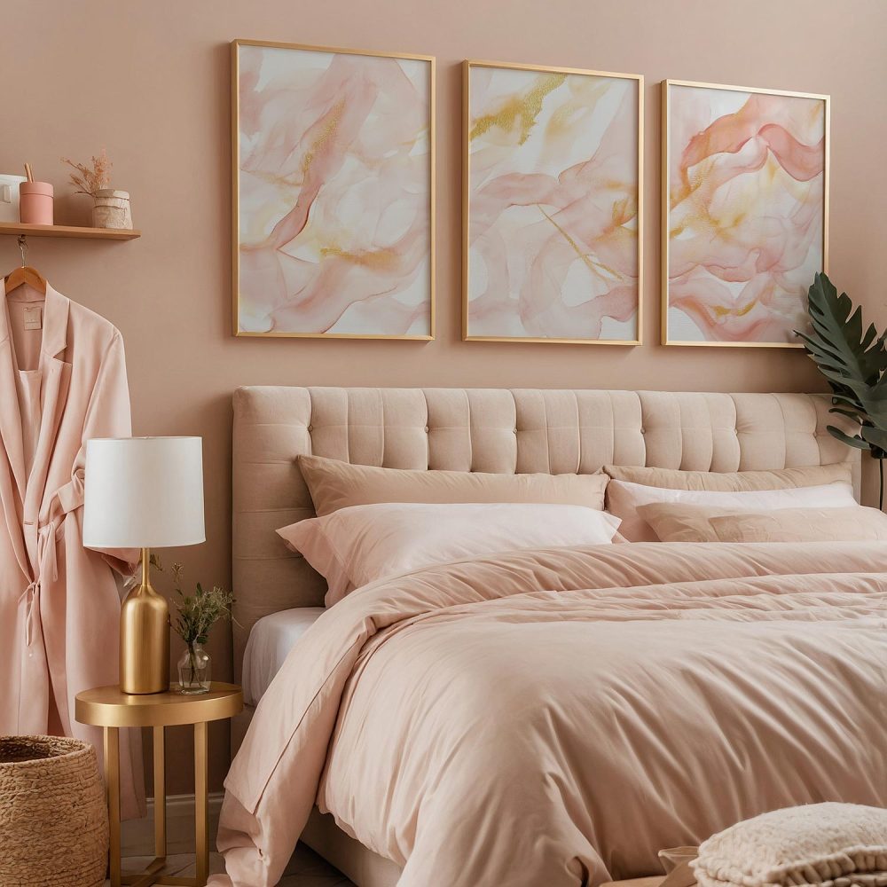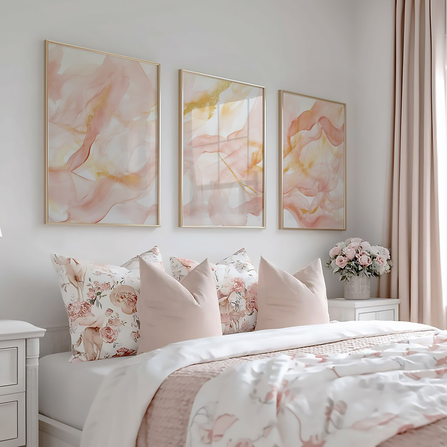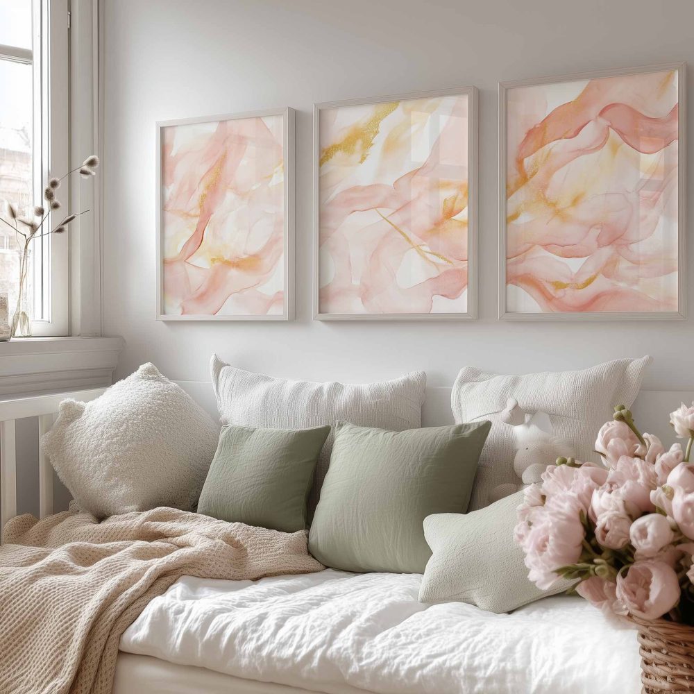 Terug naar collectie / Kinderkamer posters / Roze & Gouden Watercolor Sfeer – Speels en Stijlvol