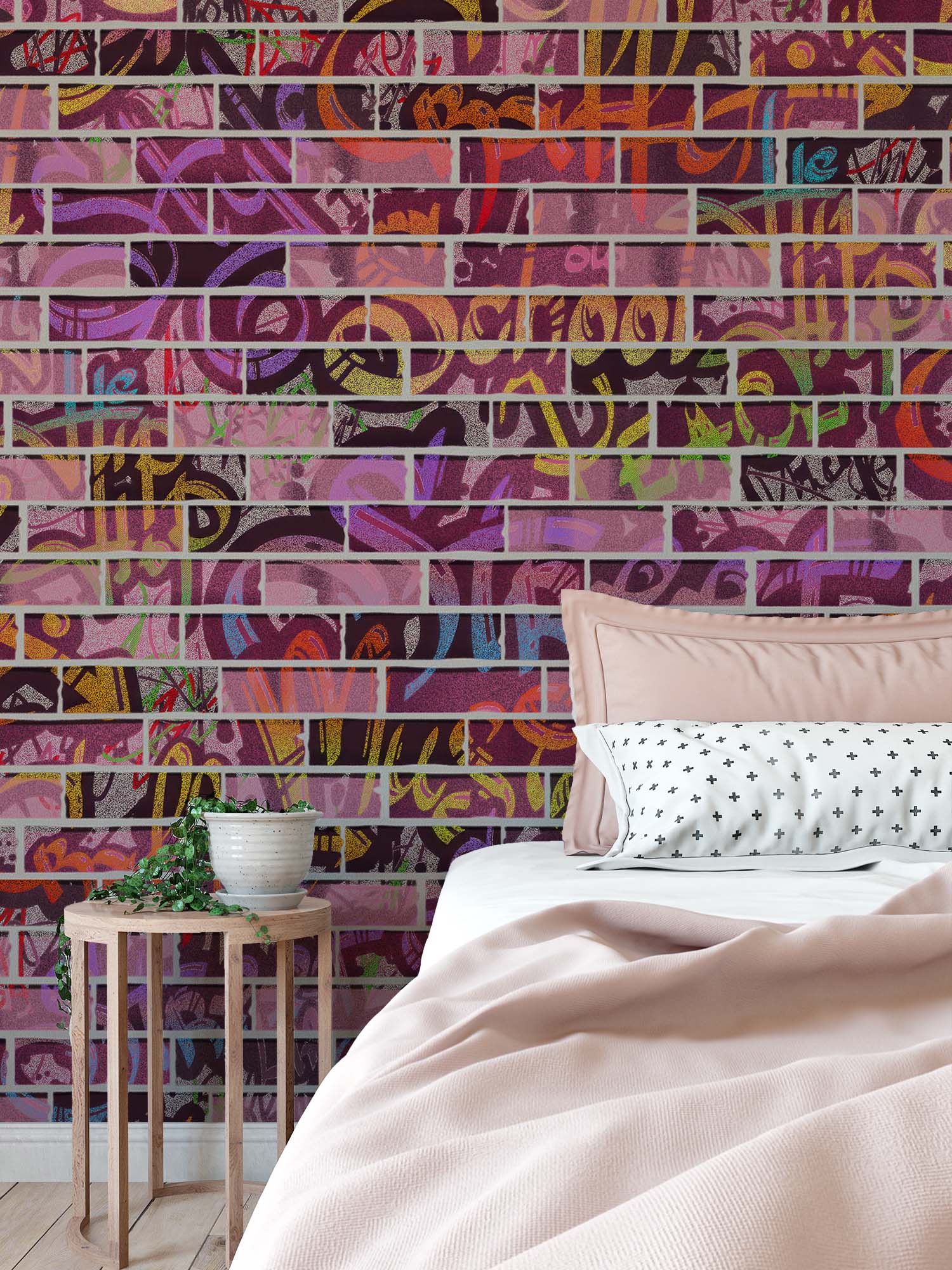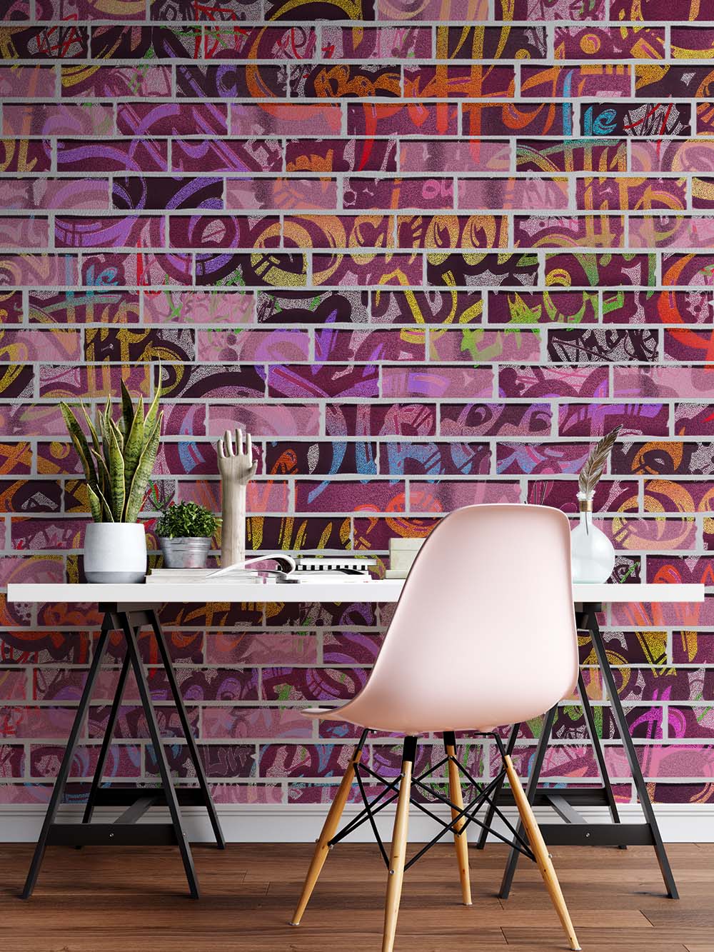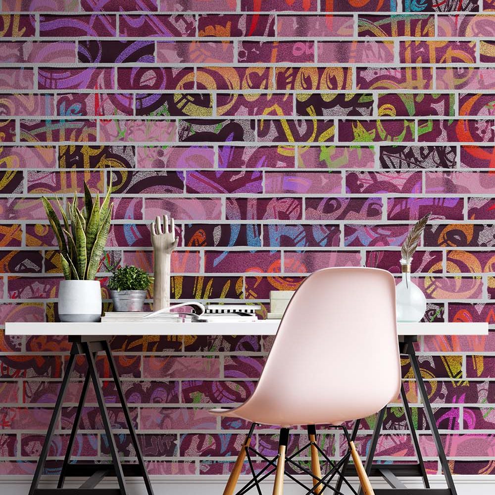 Terug naar collectie / Behang / Roze Graffiti Behang Urban
