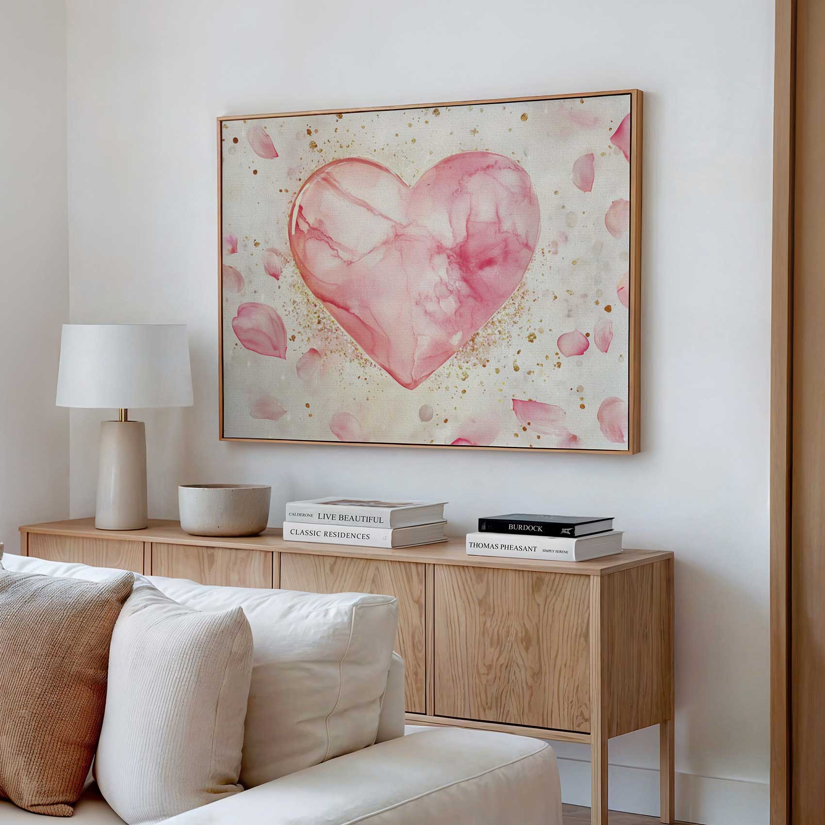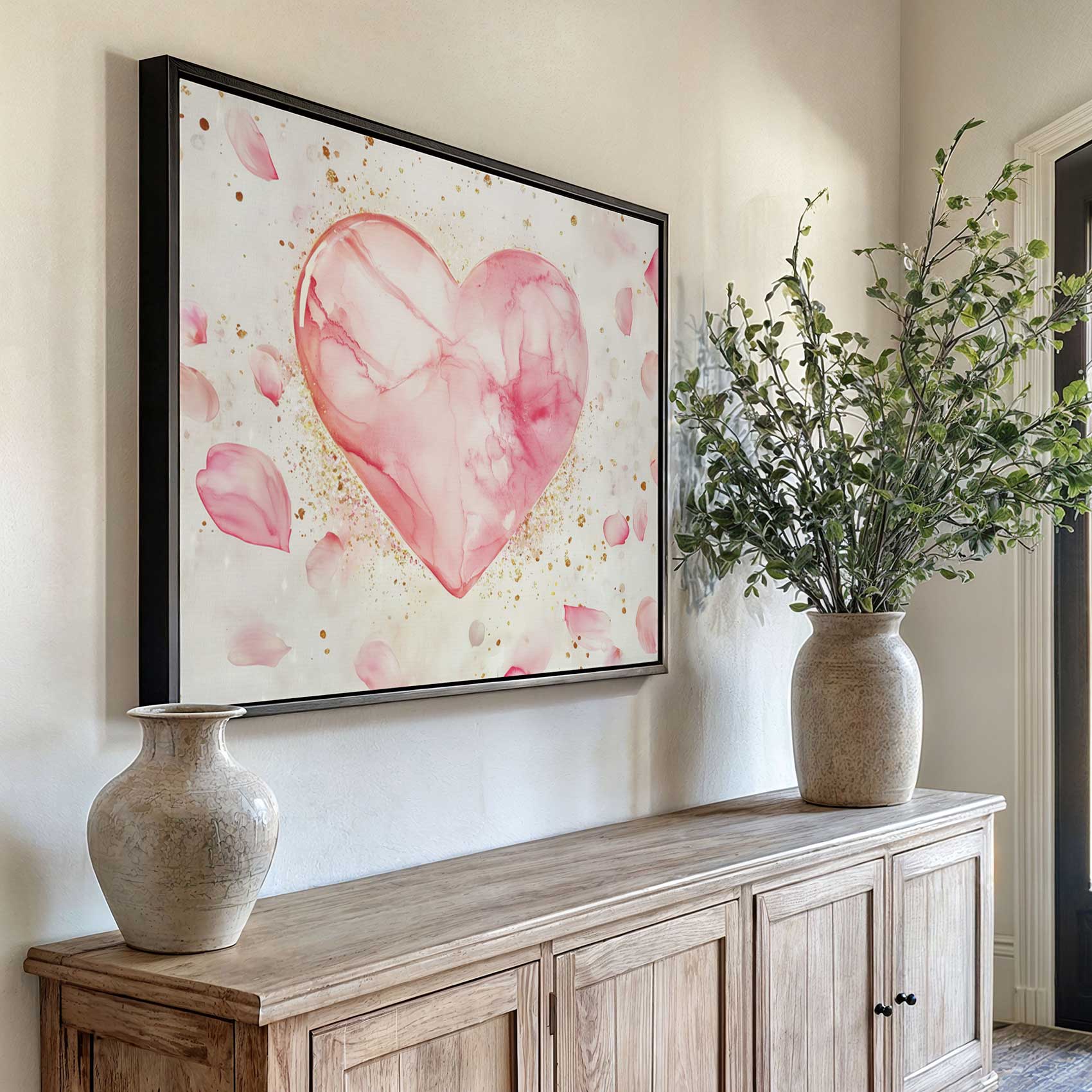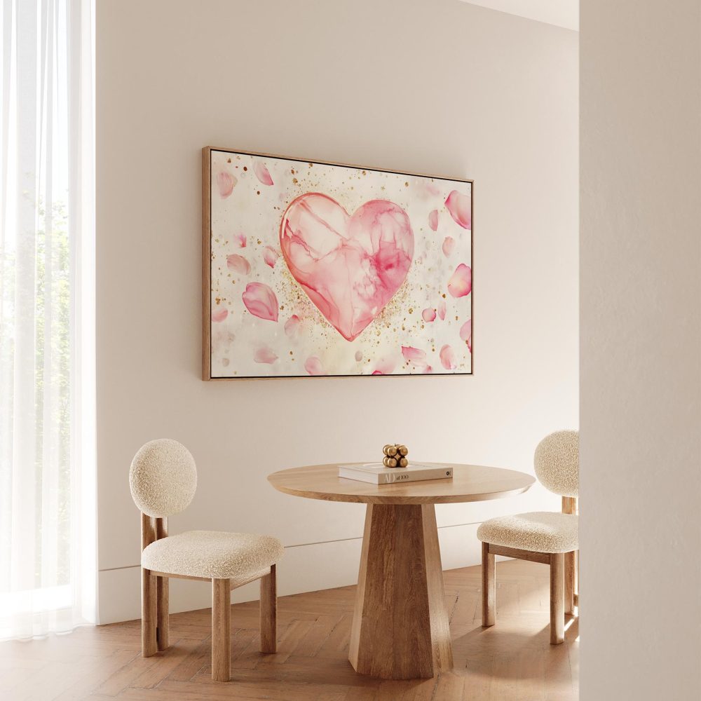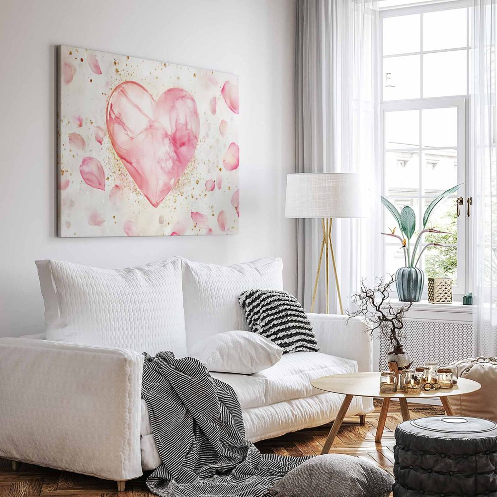 Terug naar collectie / Schilderijen / Abstract Schilderij / Roze hart met bloemblaadjes