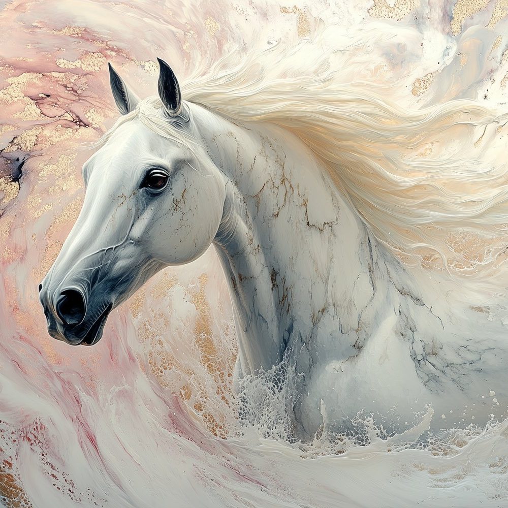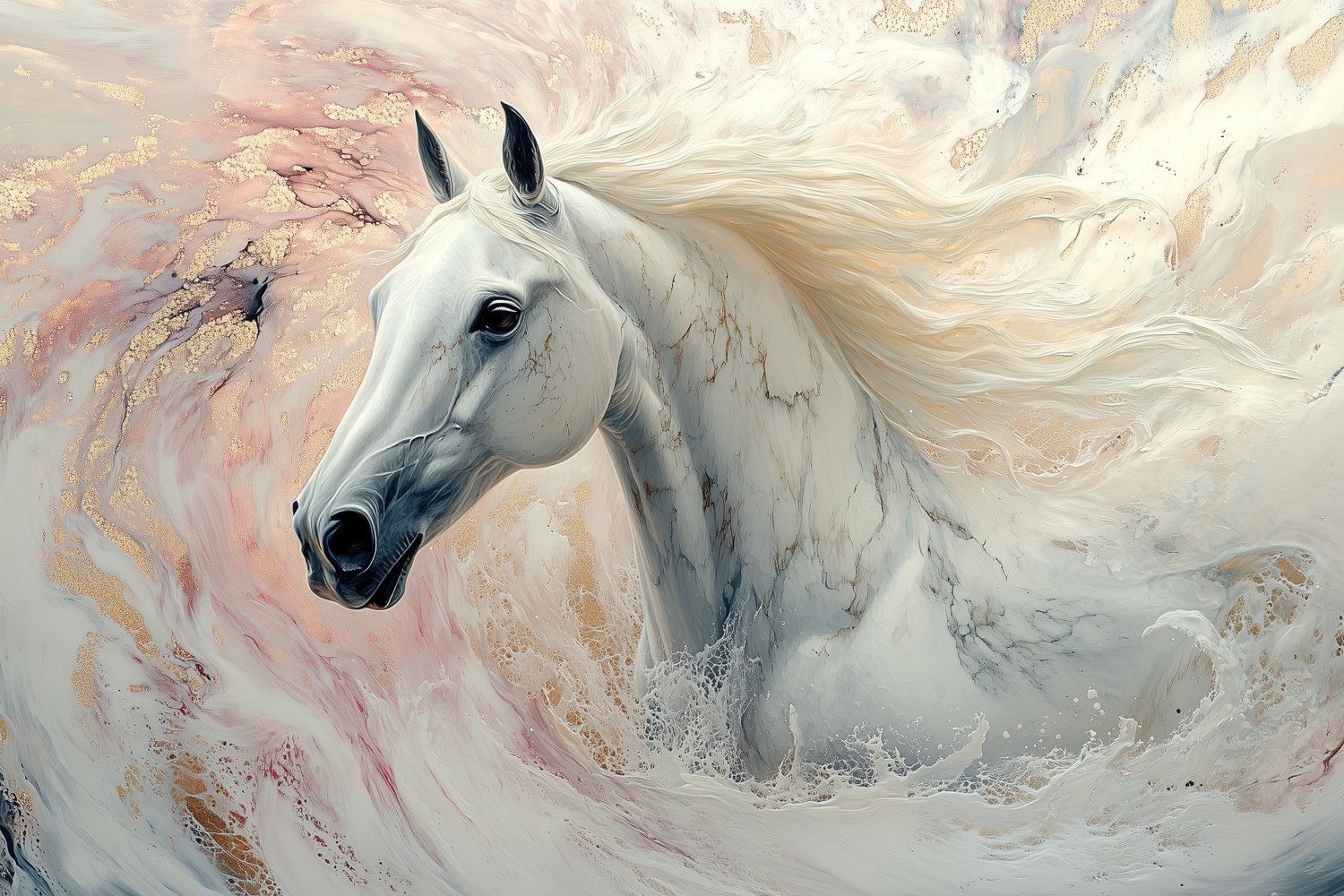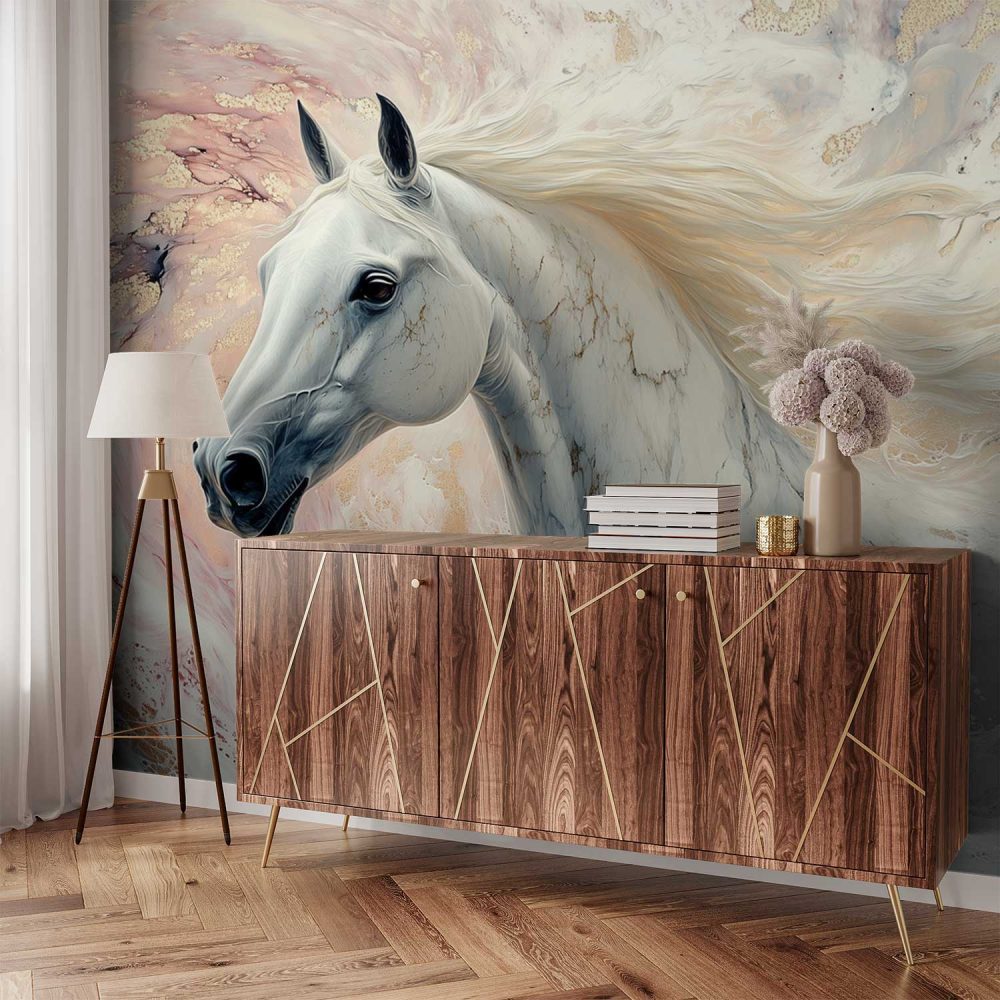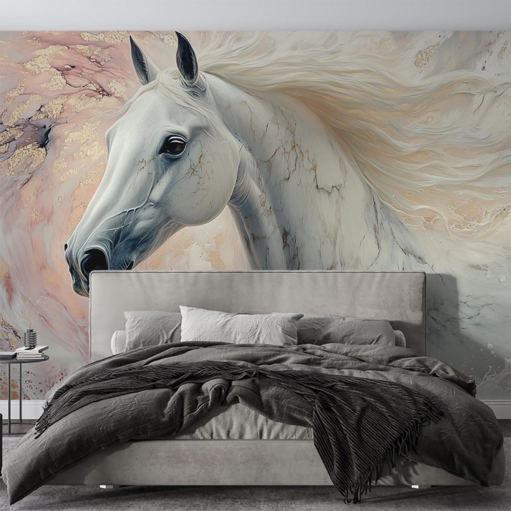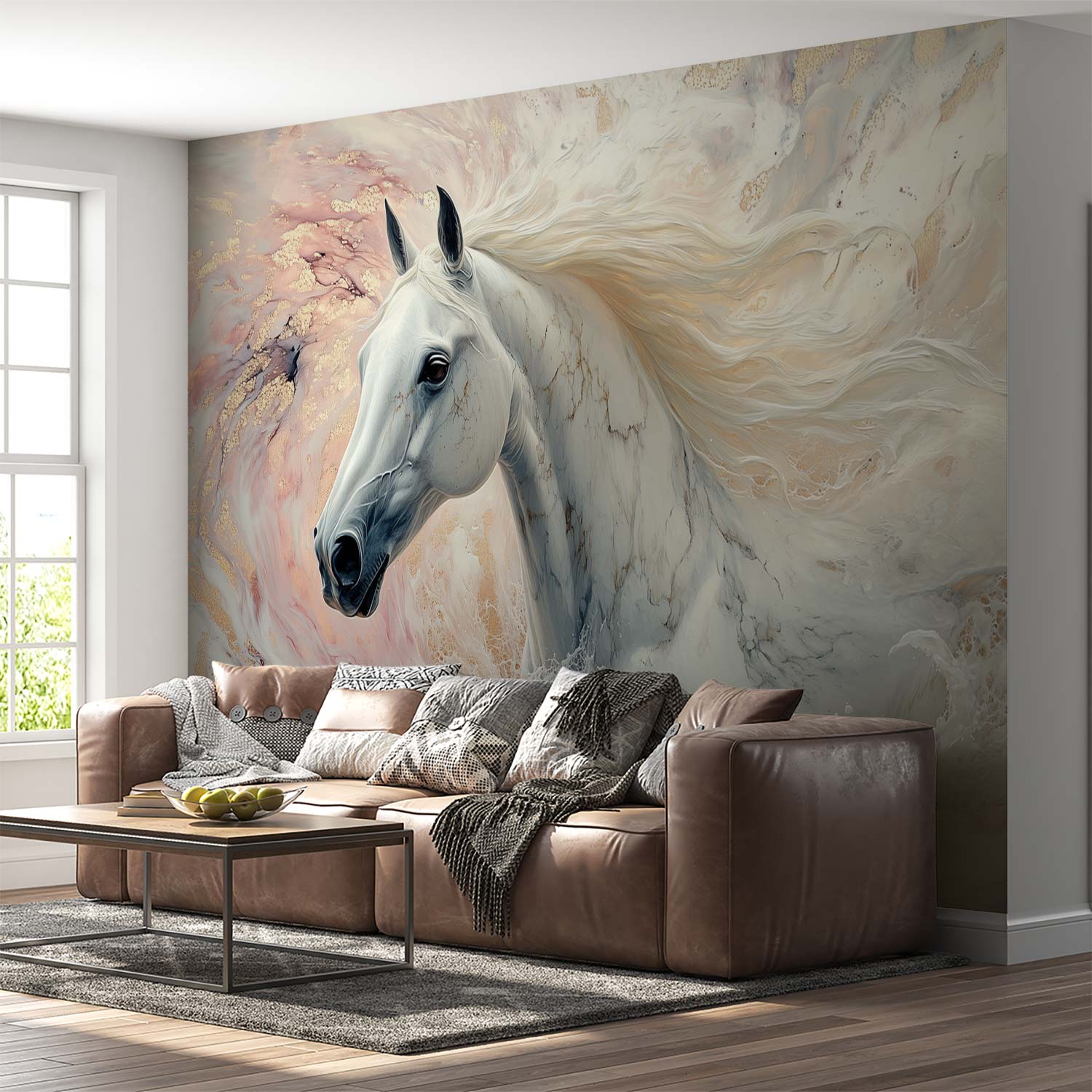 Terug naar collectie / Behang / Abstract behang / Roze Marmeren Galopperend Paard behang
