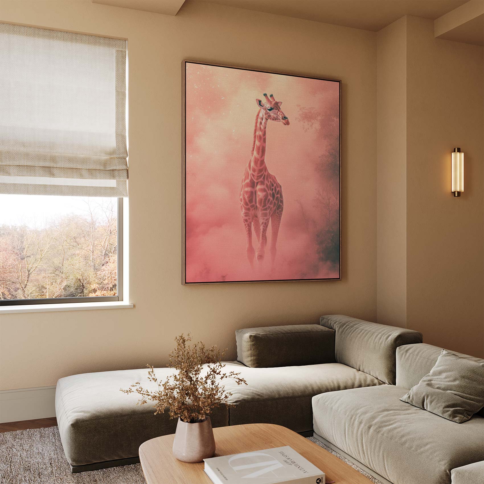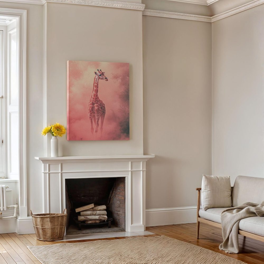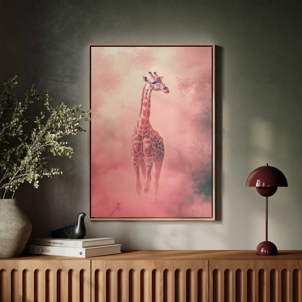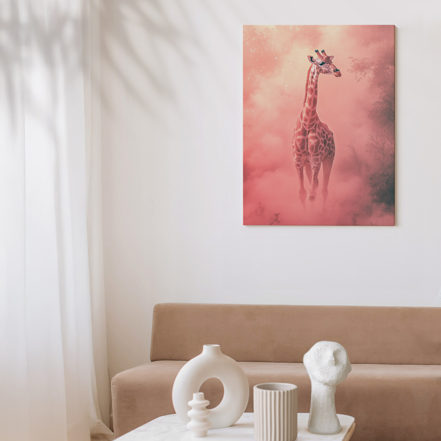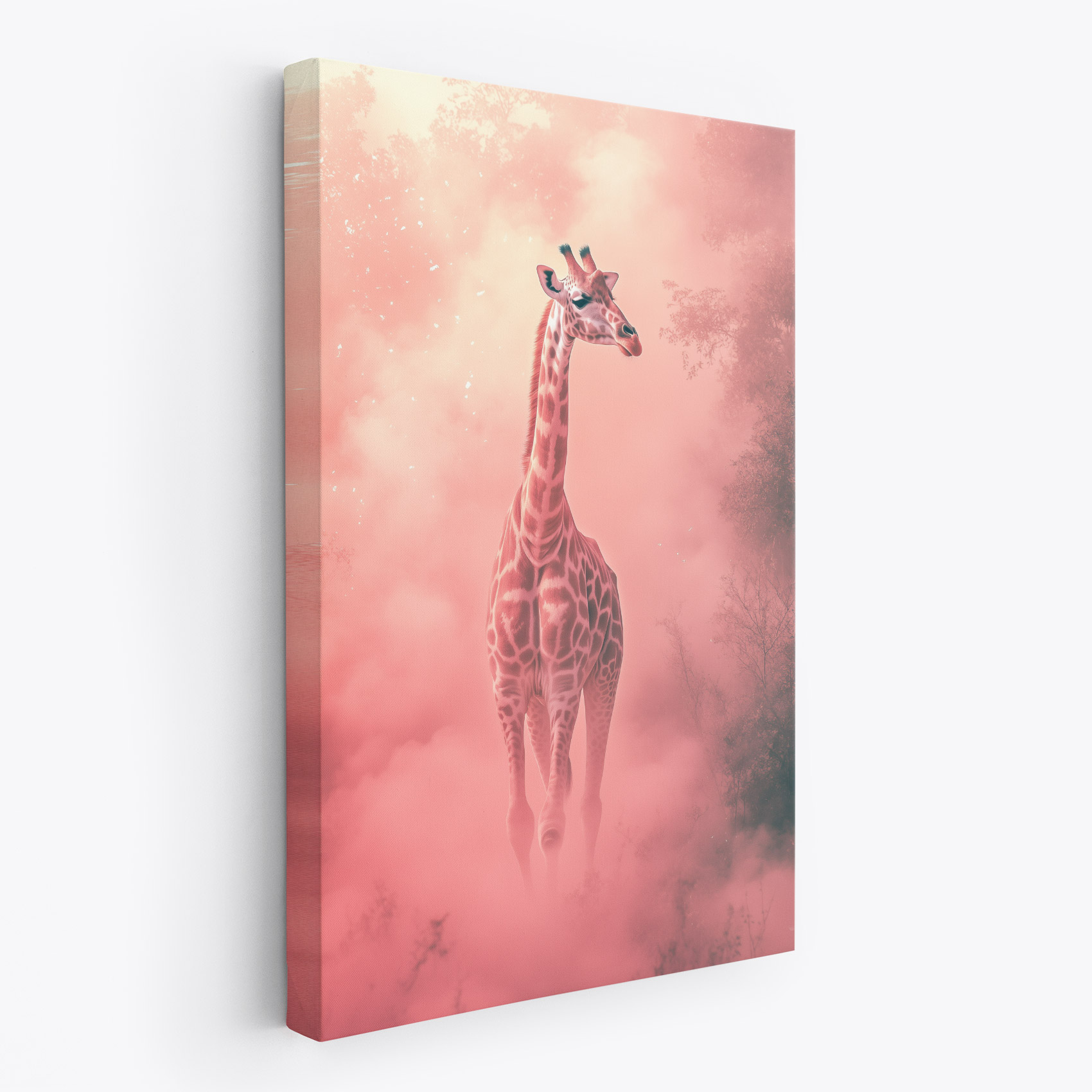 Terug naar collectie / Schilderijen / Bossen Schilderij / Roze nevelgiraffe in droombos