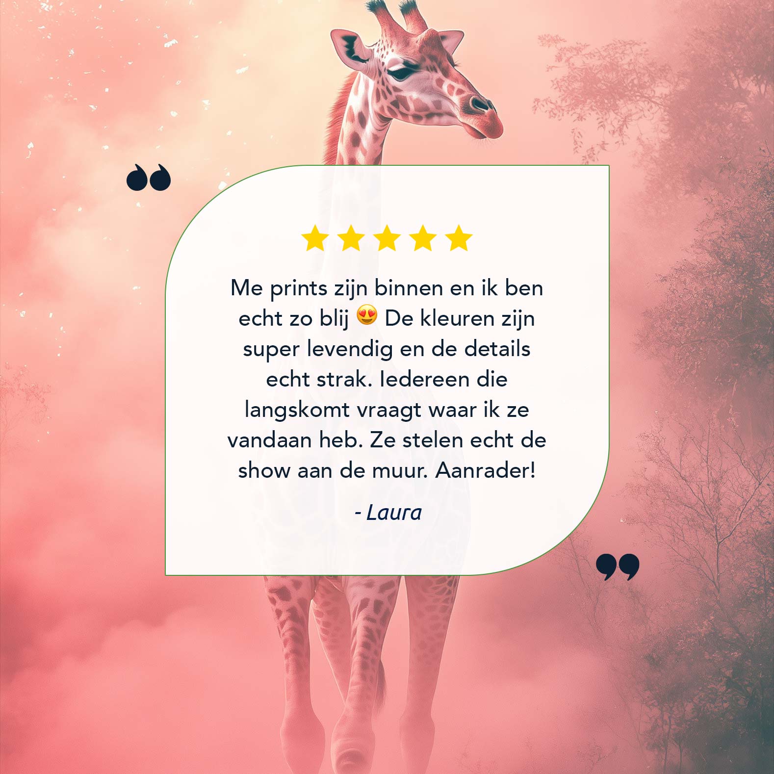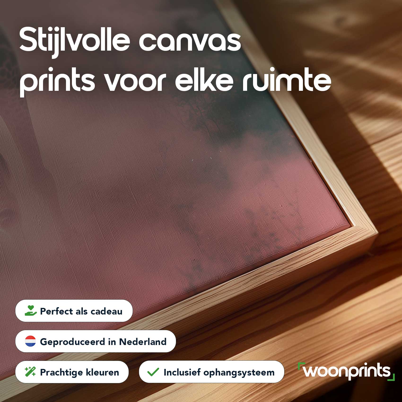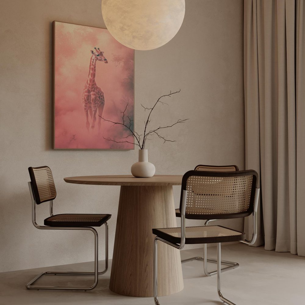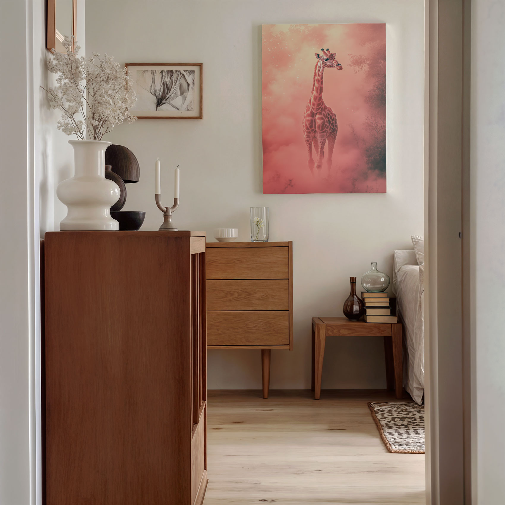Terug naar collectie / Schilderijen / Bossen Schilderij / Roze nevelgiraffe in droombos