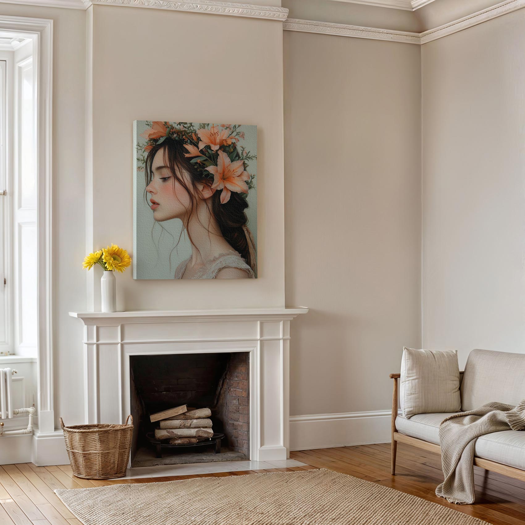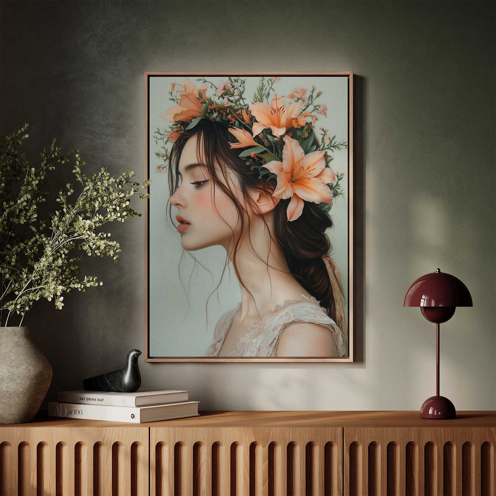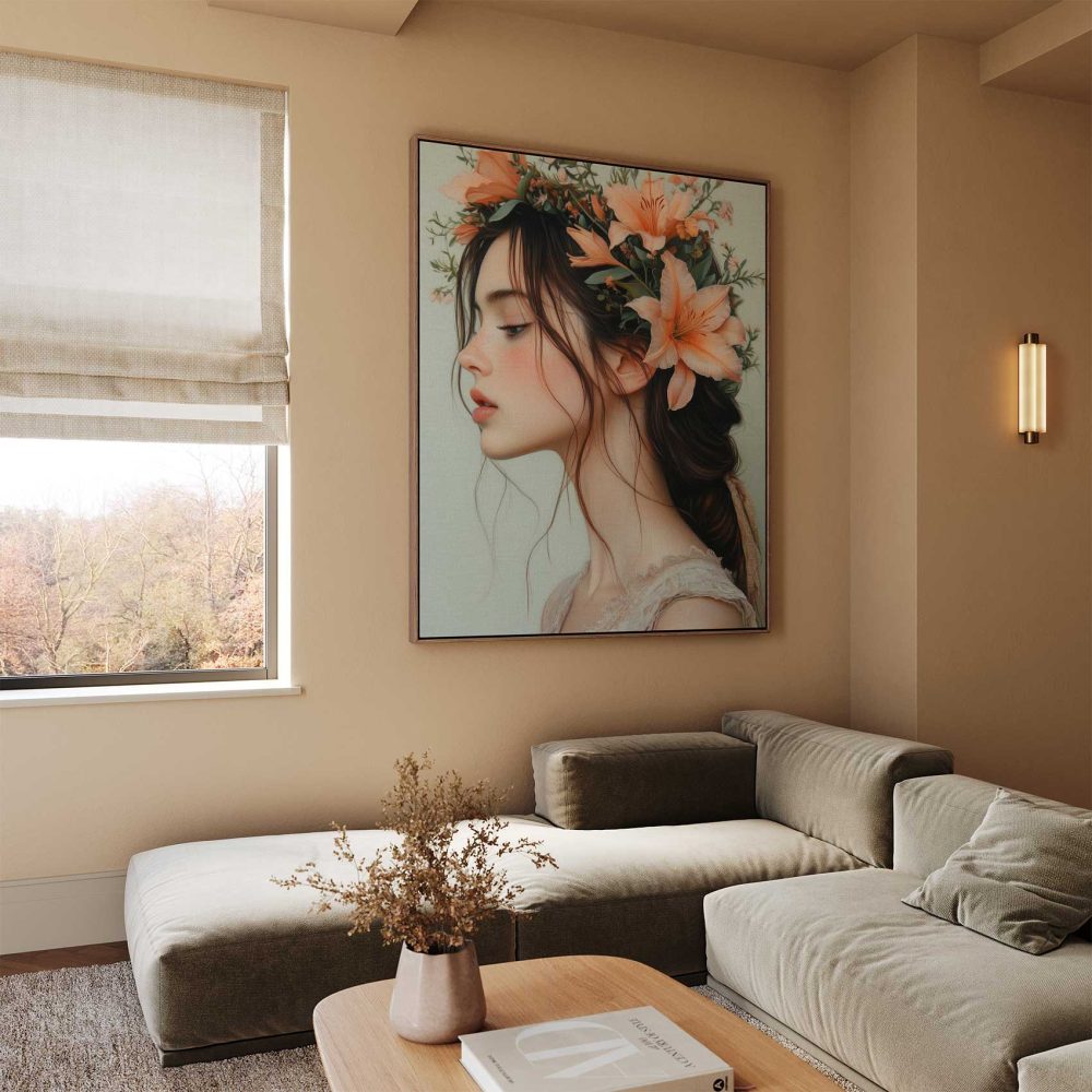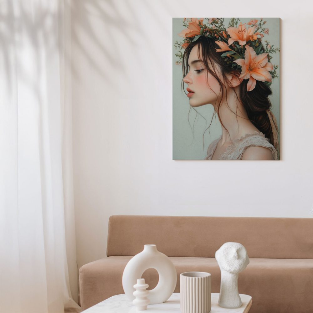 Terug naar collectie / Schilderijen / Bloemen Schilderij / Roze-oranje bloemen hoofdtooi