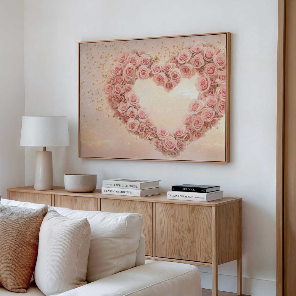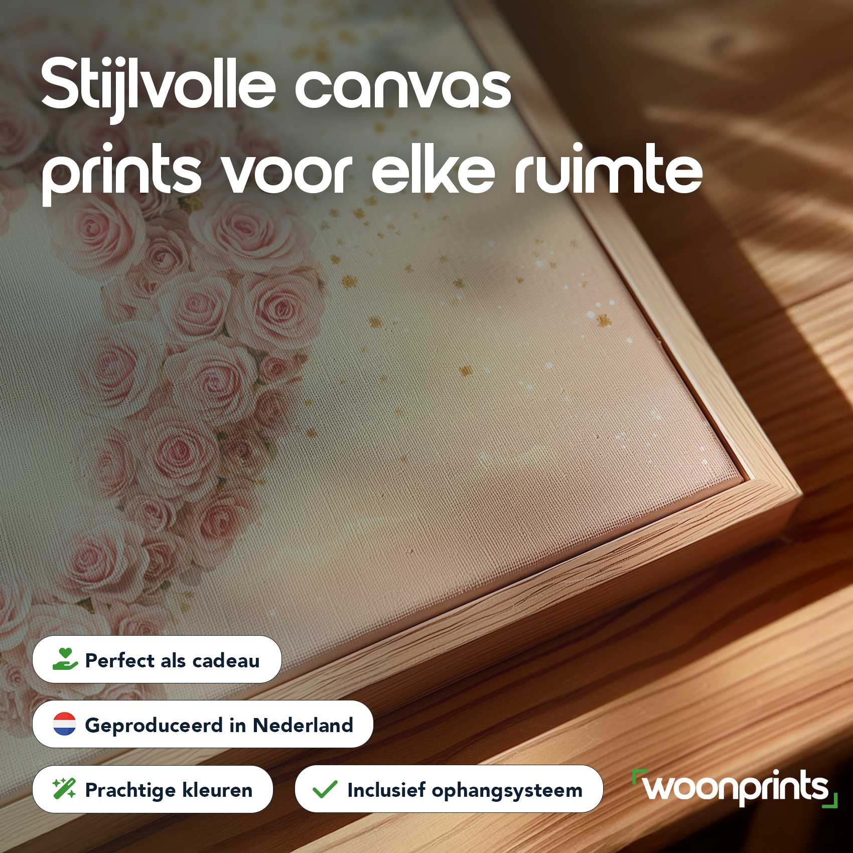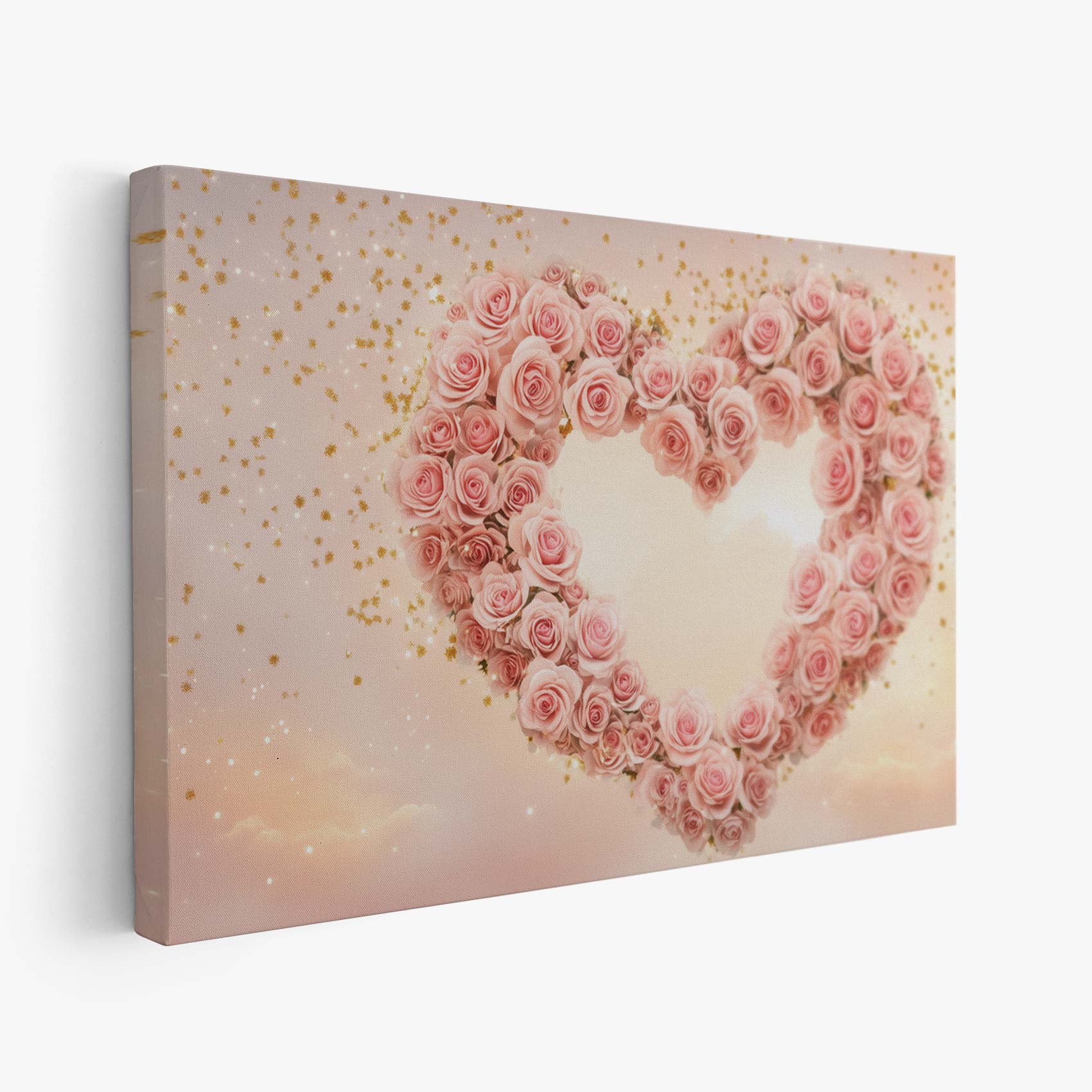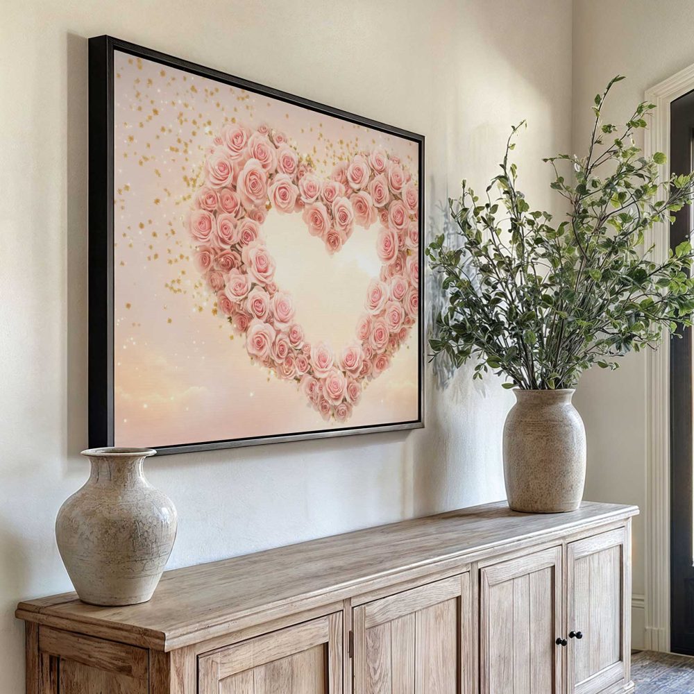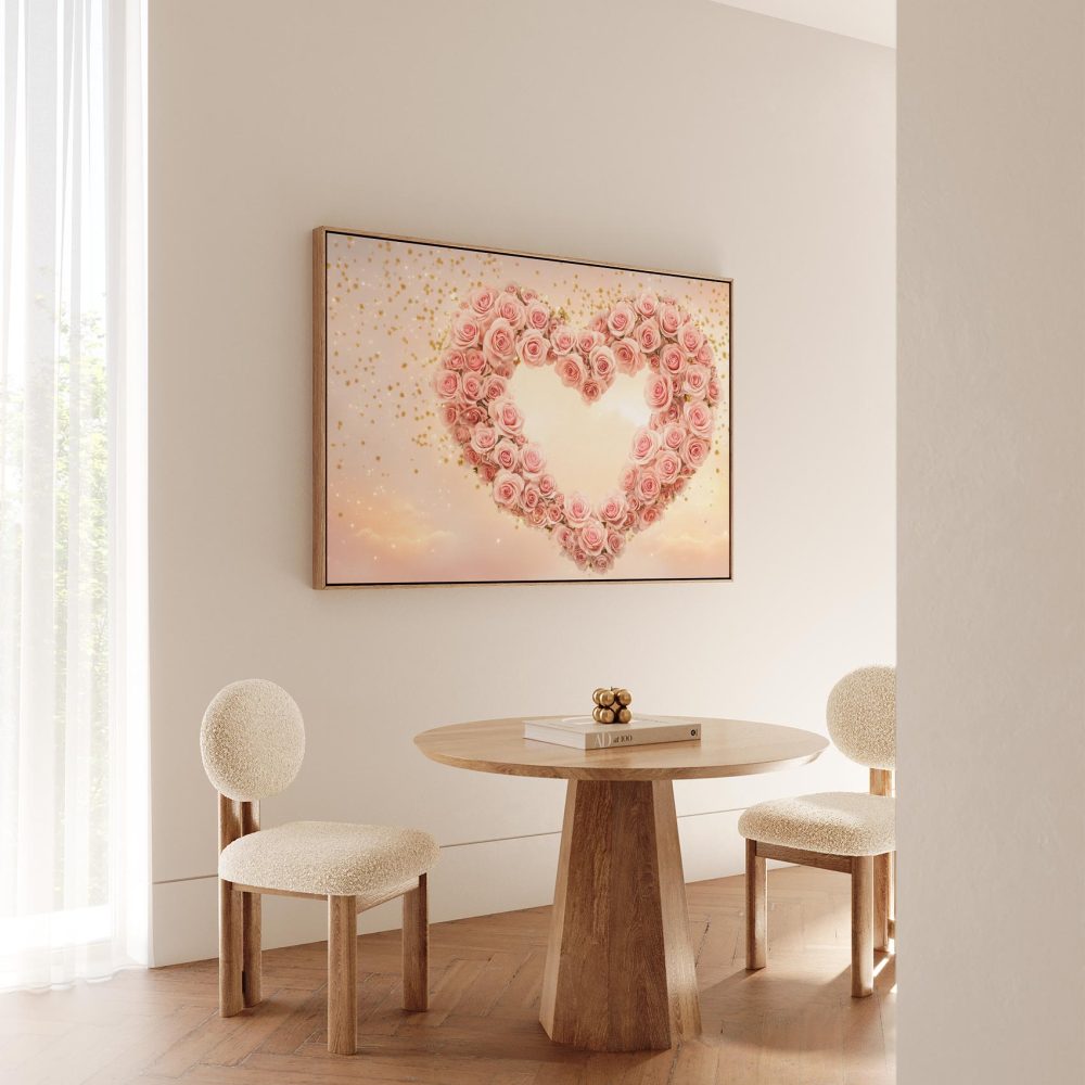 Terug naar collectie / Schilderijen / Bloemen Schilderij / Roze rozen hartarrangement