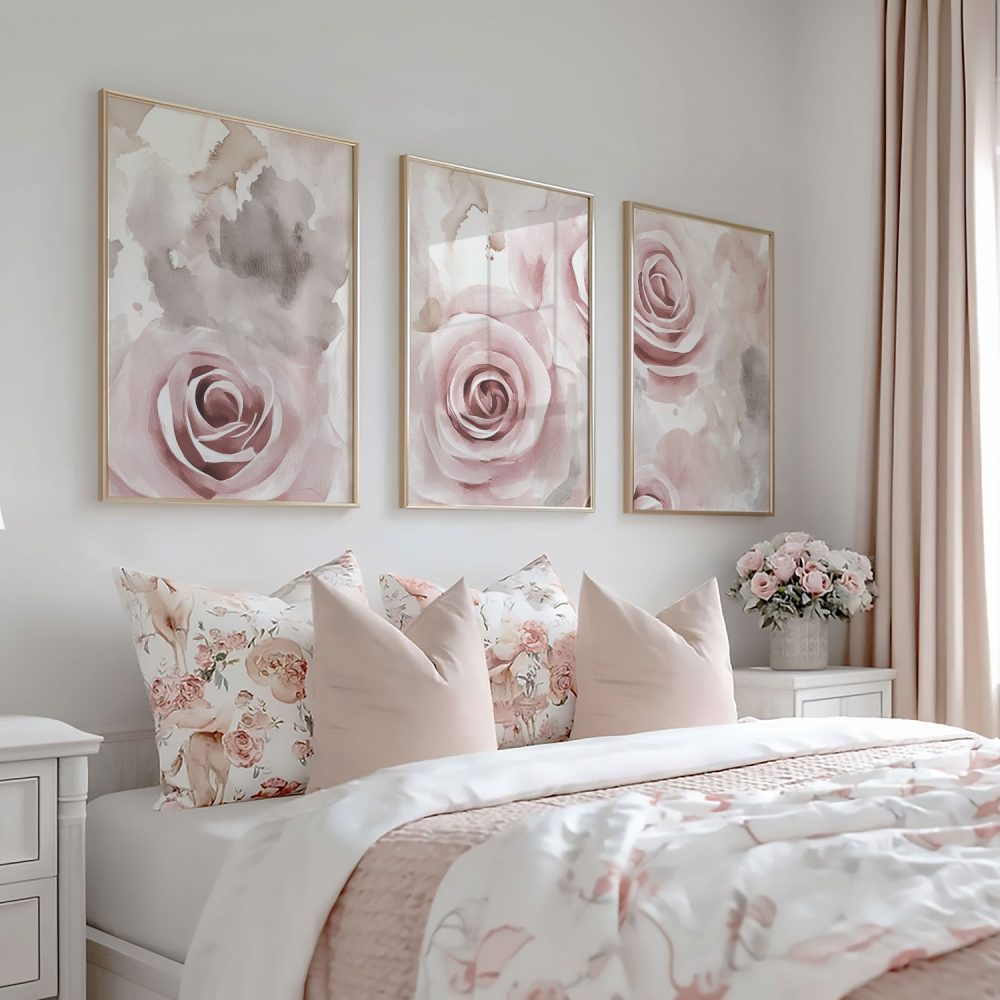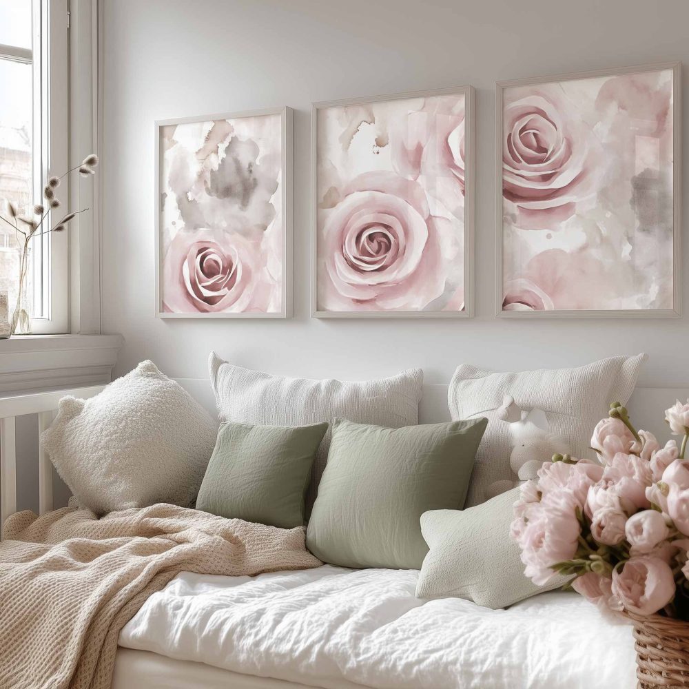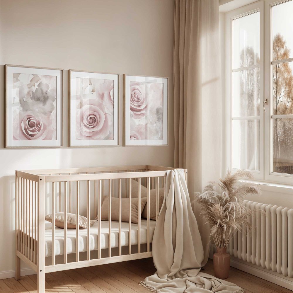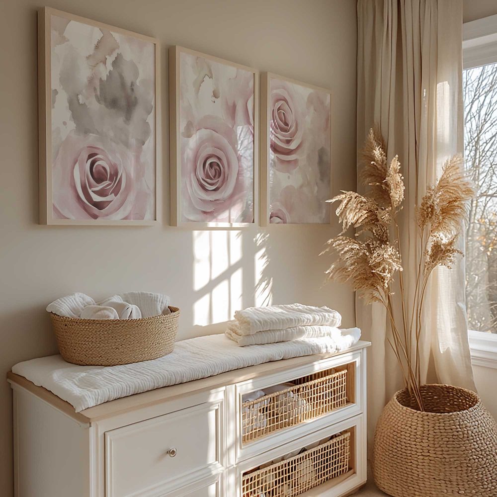 Terug naar collectie / Kinderkamer posters / Bloemen posters / Roze Rozen in Dromerige Watercolor Stijl