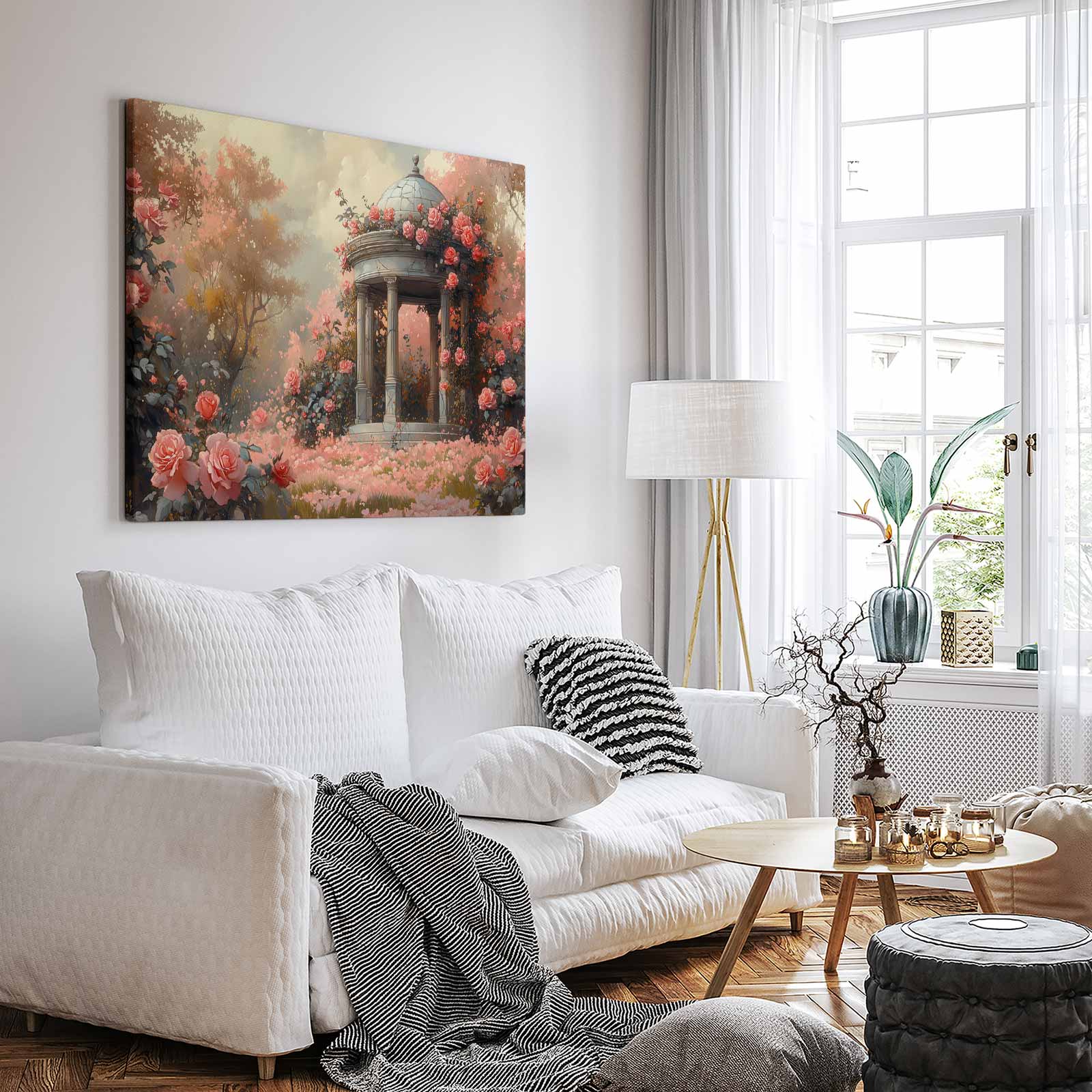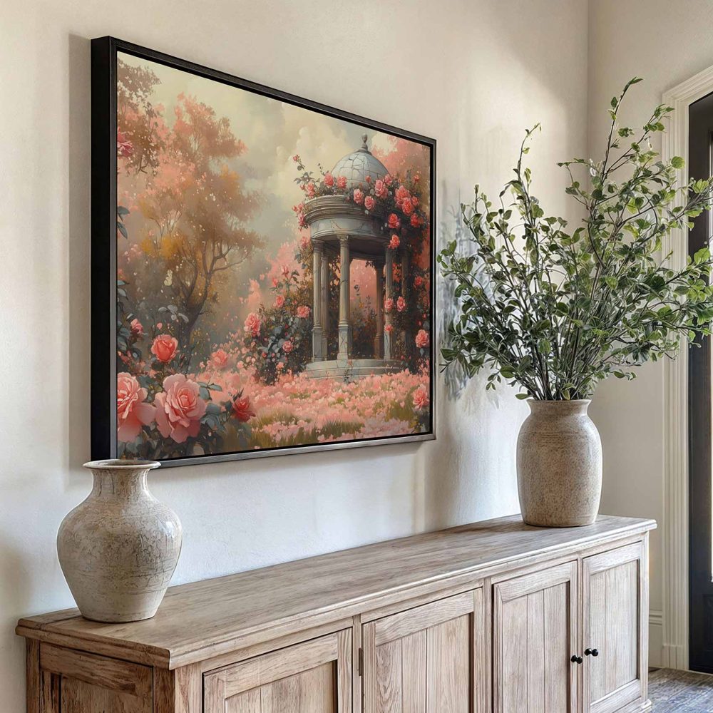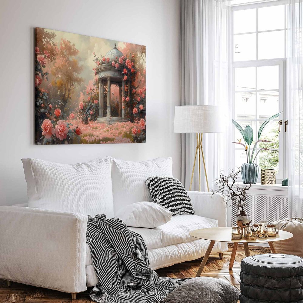 Terug naar collectie / Schilderijen / Bloemen Schilderij / Roze rozengazebo in bloei