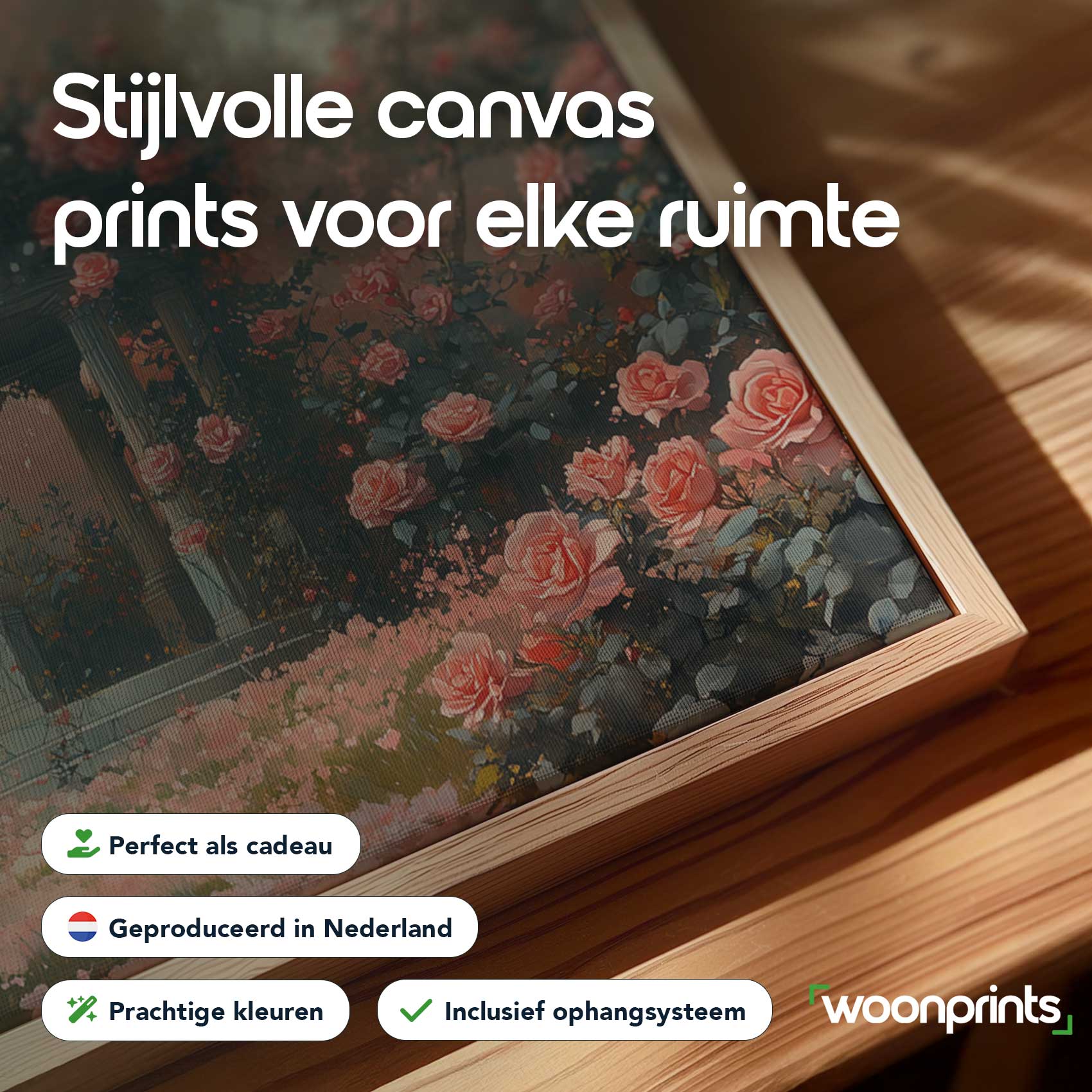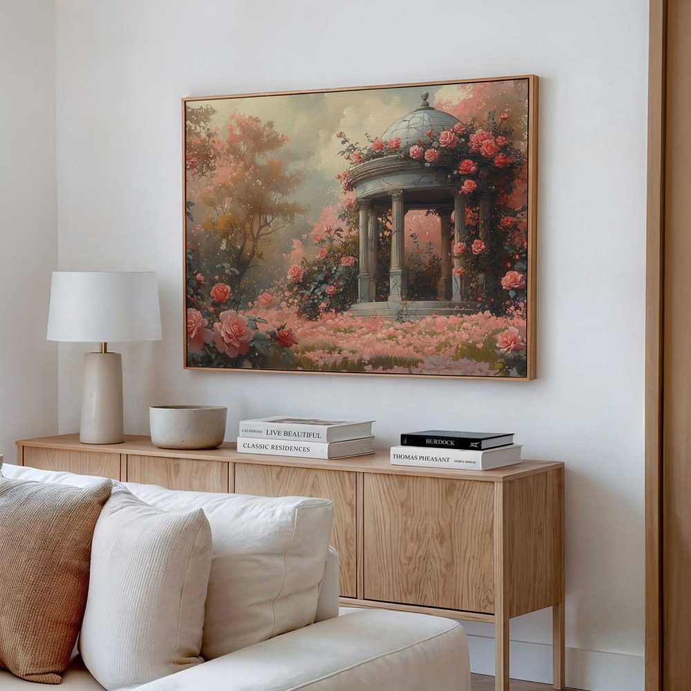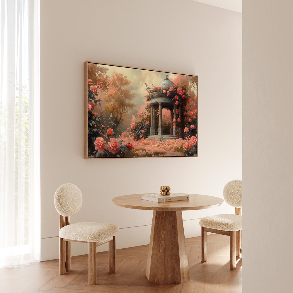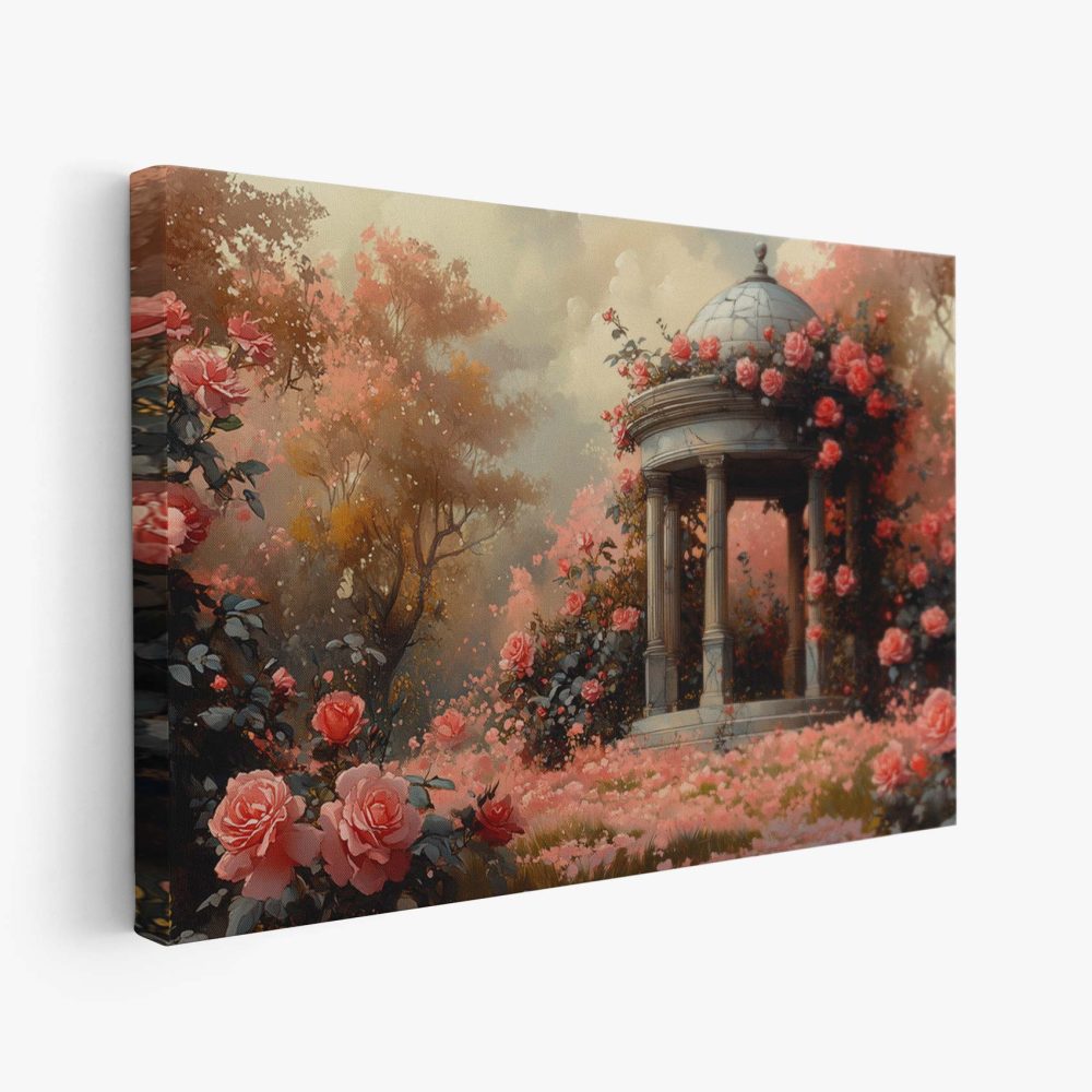 Terug naar collectie / Schilderijen / Bloemen Schilderij / Roze rozengazebo in bloei