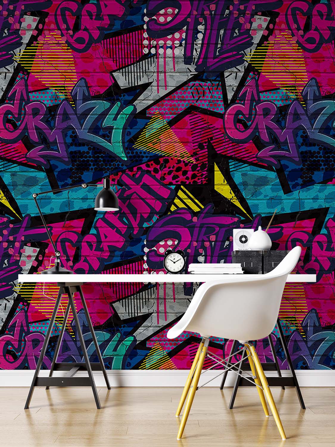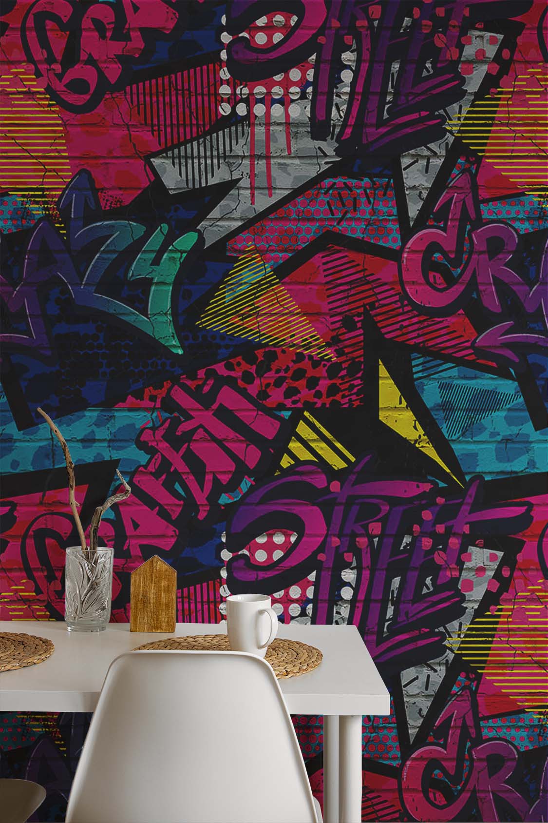 Terug naar collectie / Behang / Roze Urban Graffiti Behang