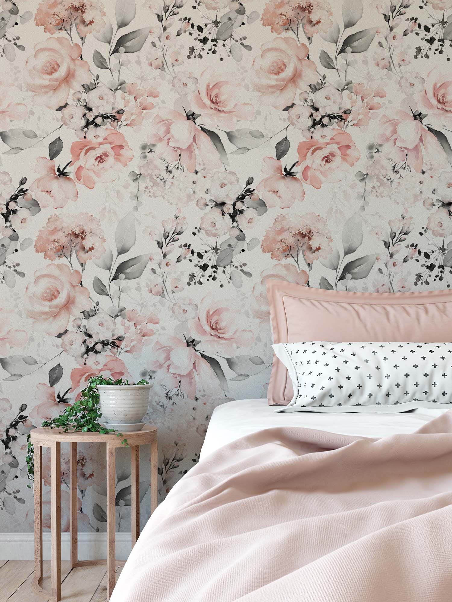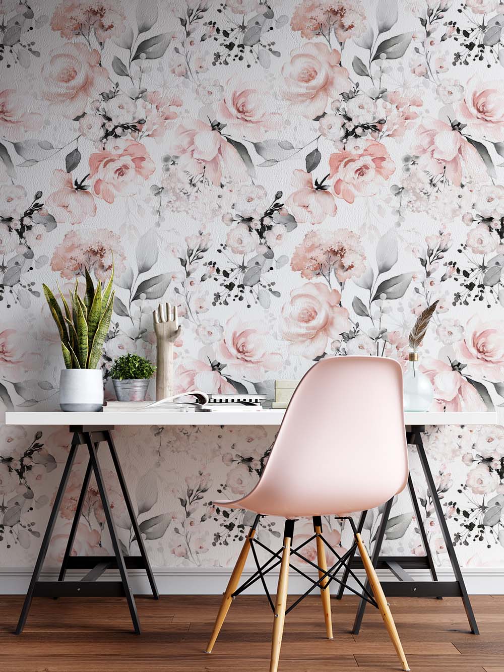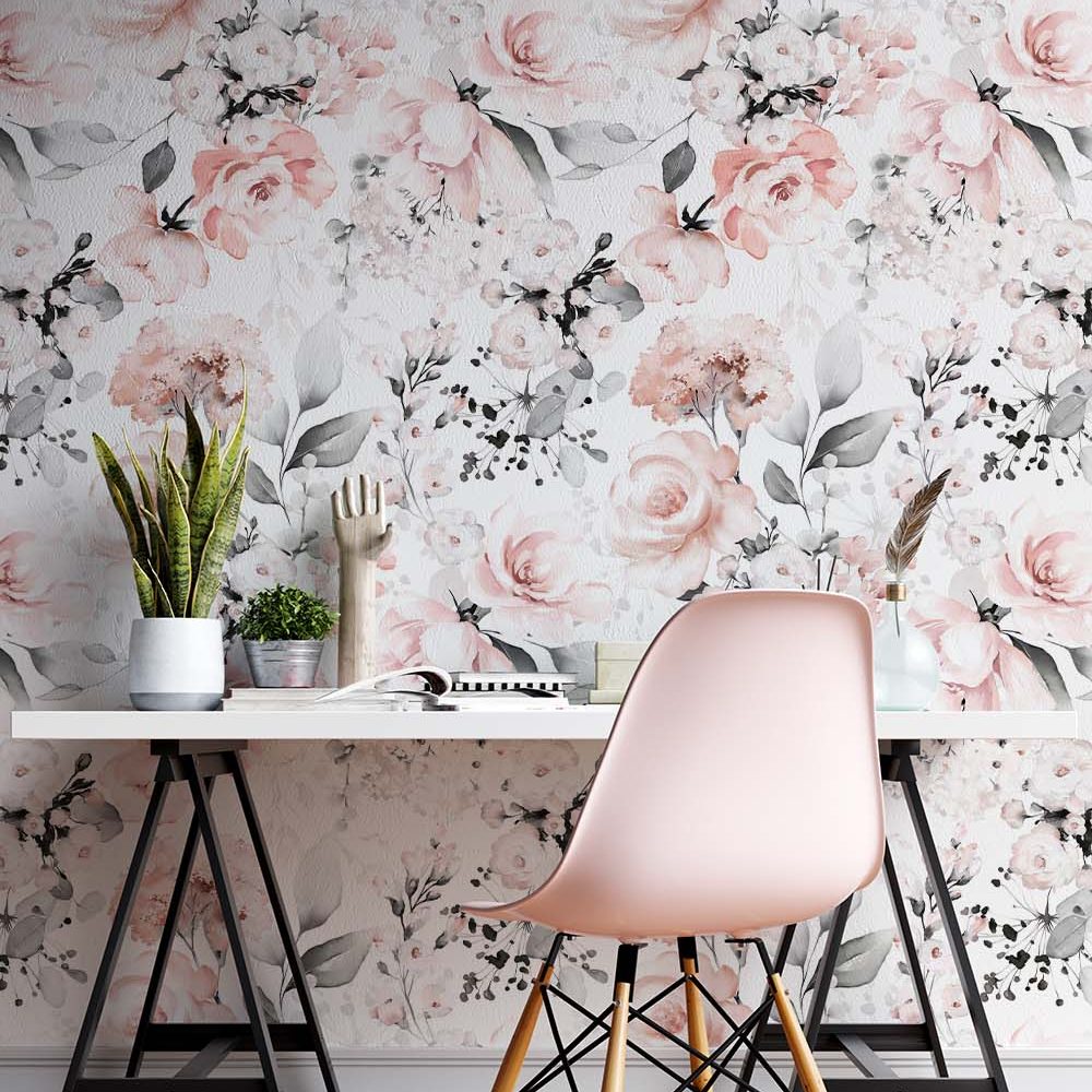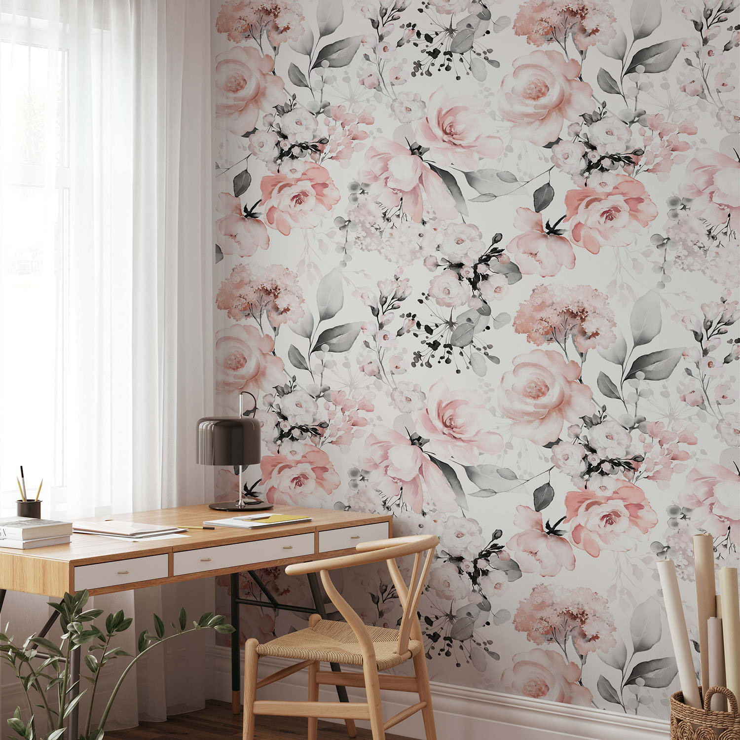 Terug naar collectie / Behang / Roze Witte Bloemen Behang