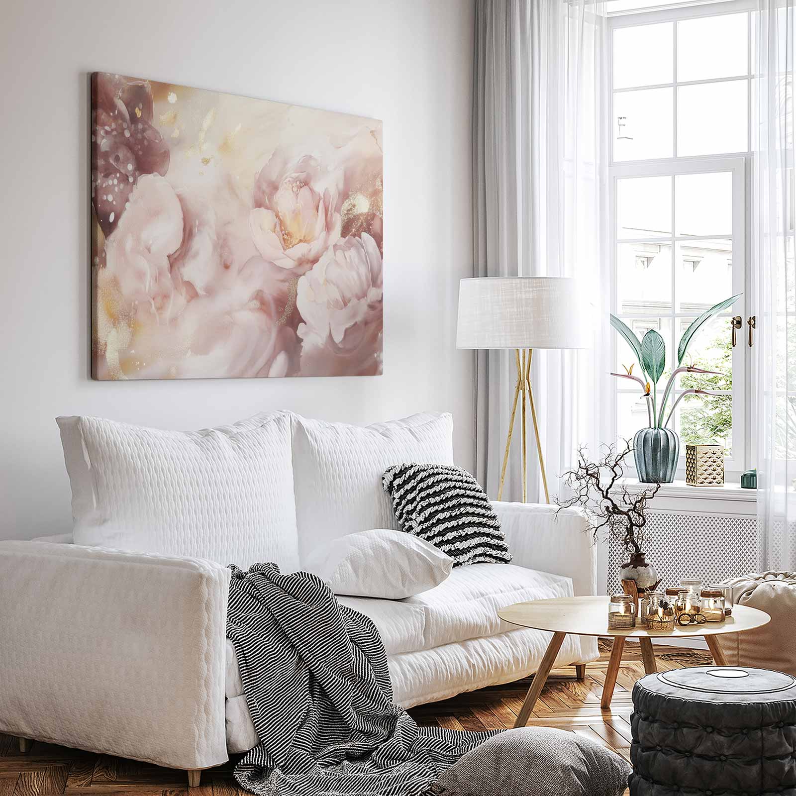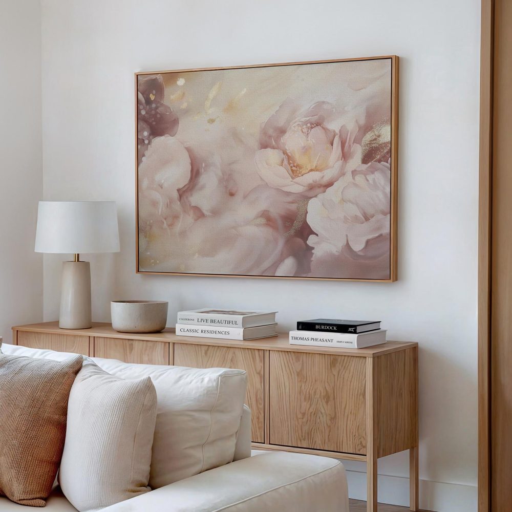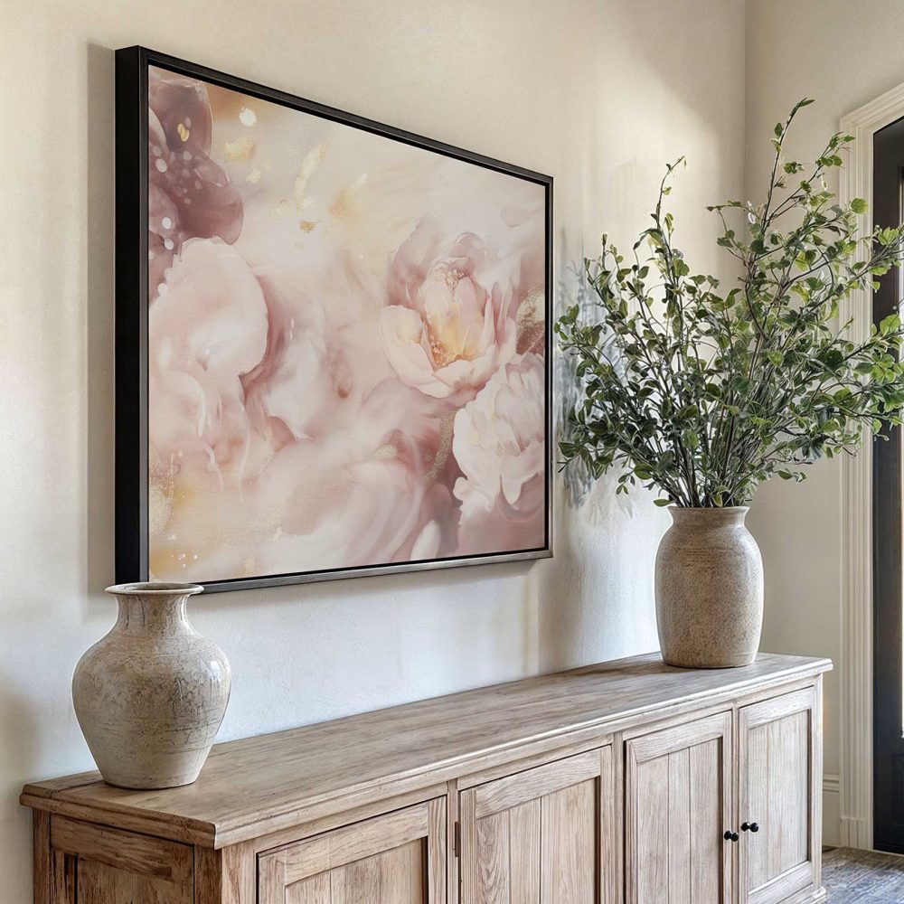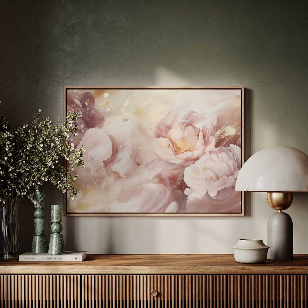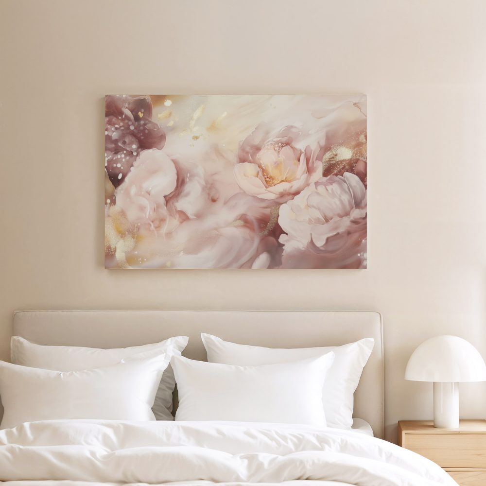Terug naar collectie / Schilderijen / Bloemen Schilderij / Roze-witte glitterbloemenpracht