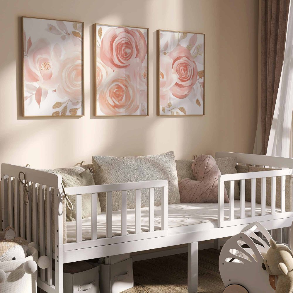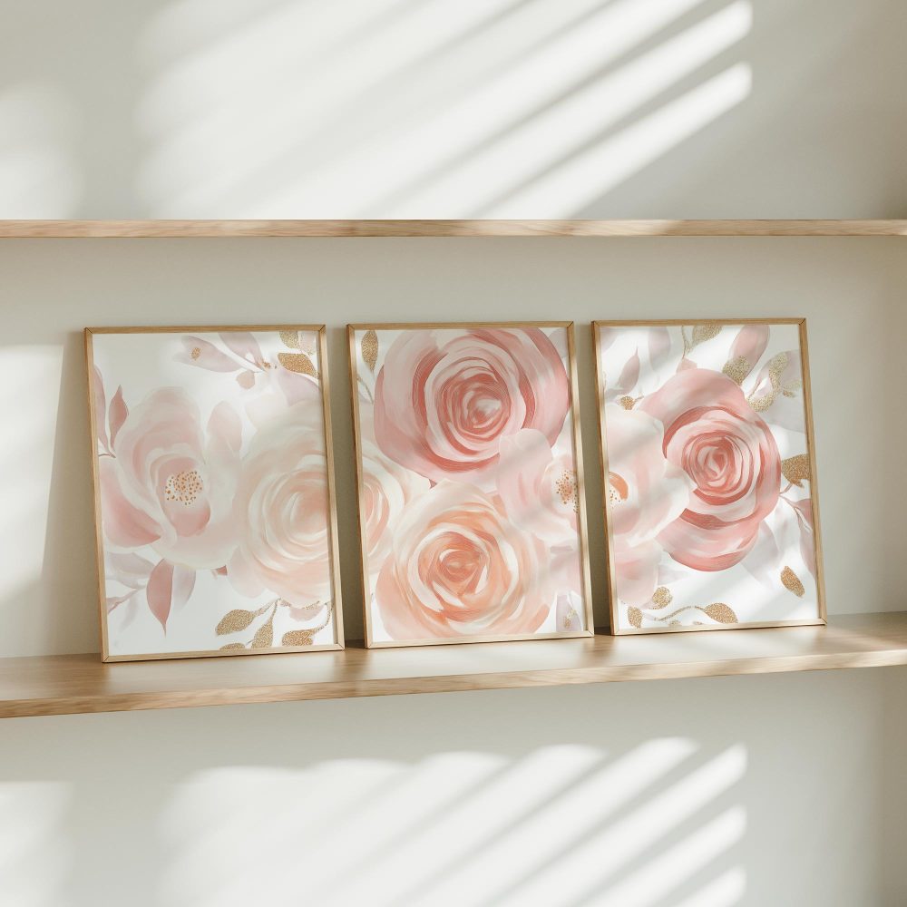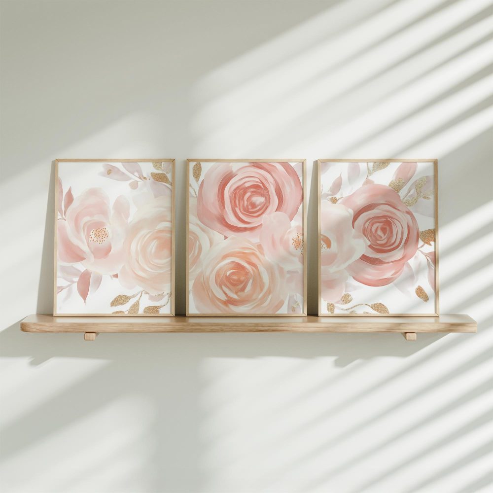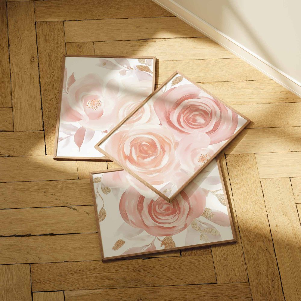 Terug naar collectie / Kinderkamer posters / Bloemen posters / Roze & Witte Rozen met Gouden Accenten – Romantische Wanddecoratie