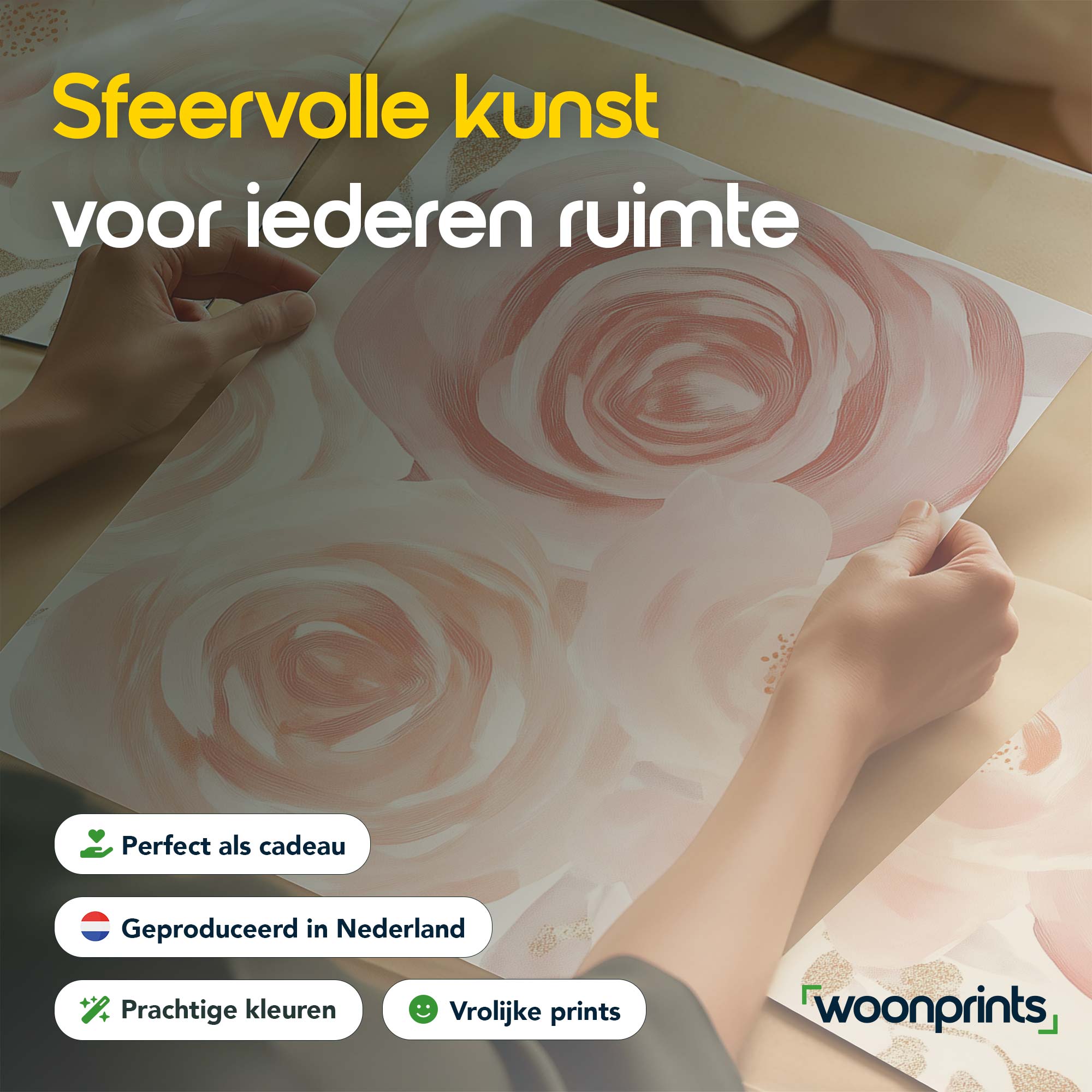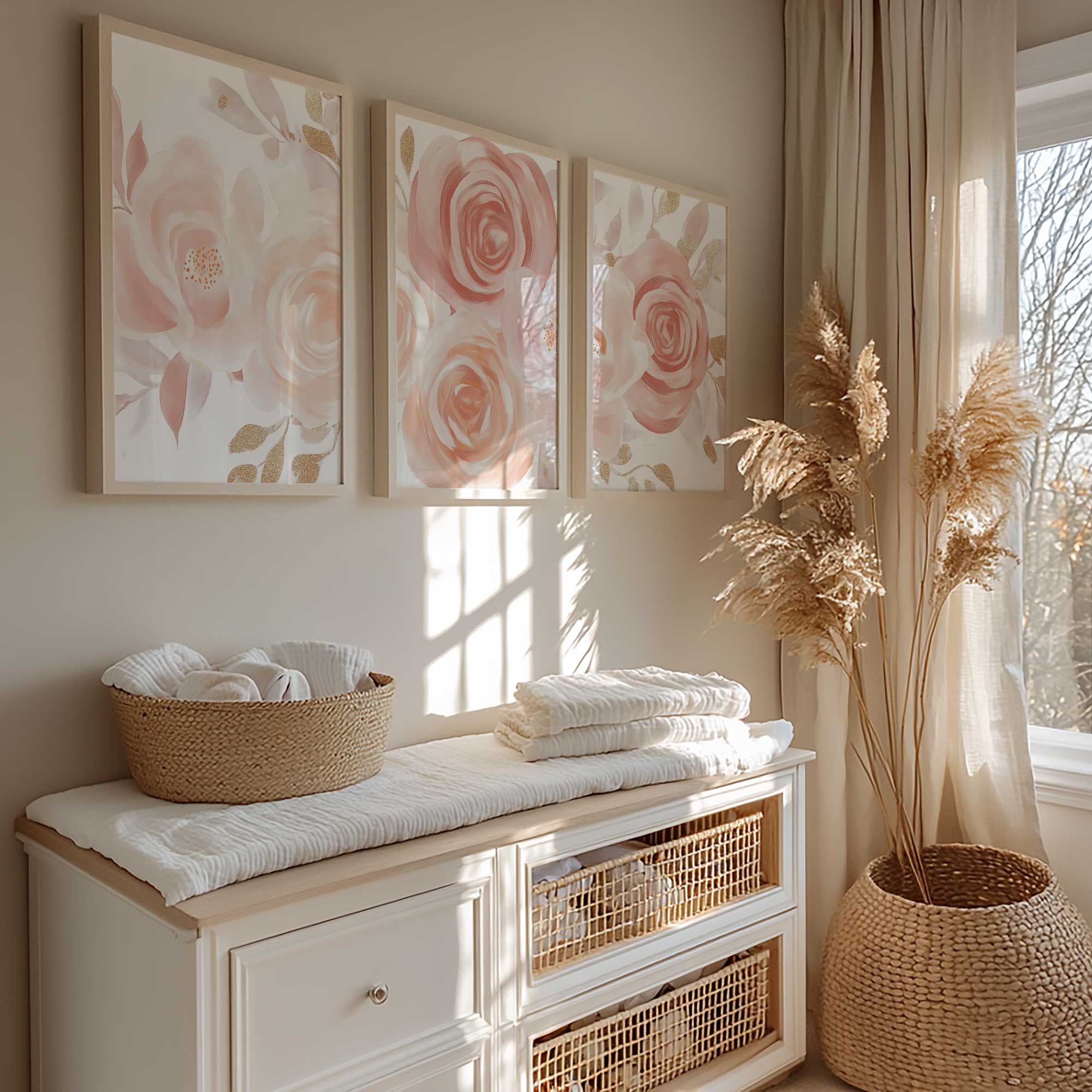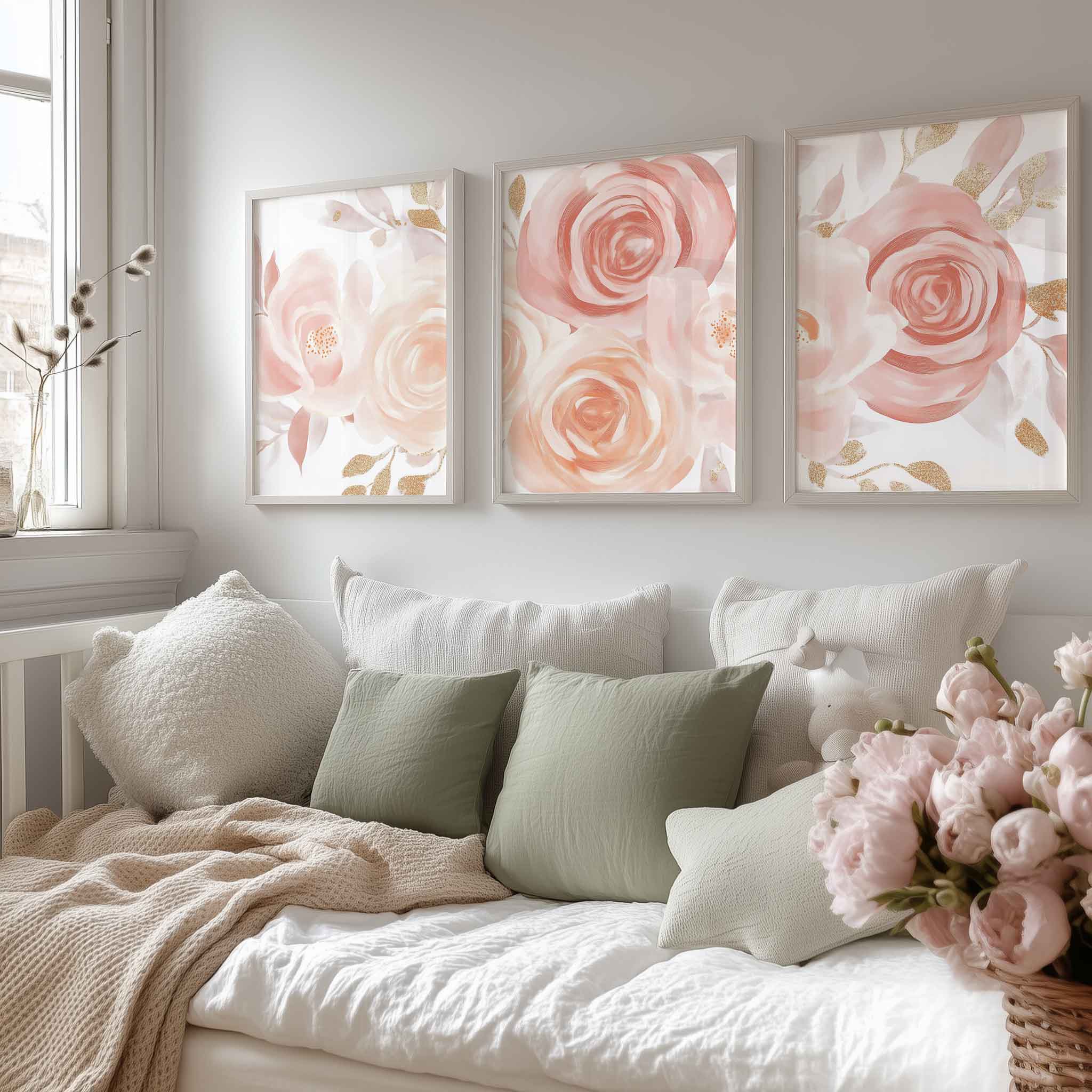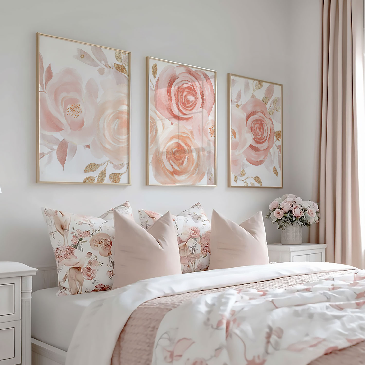 Terug naar collectie / Kinderkamer posters / Bloemen posters / Roze & Witte Rozen met Gouden Accenten – Romantische Wanddecoratie