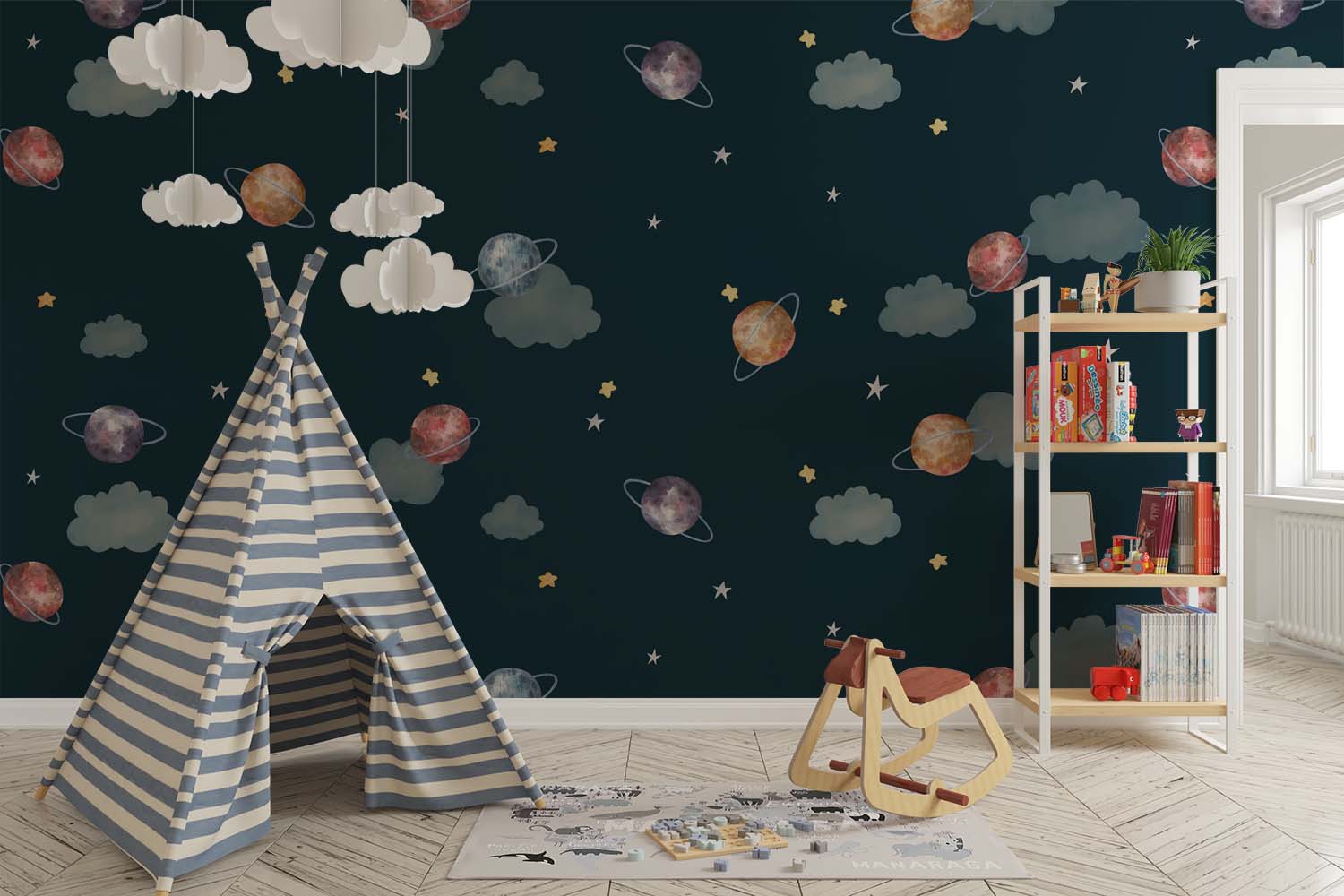 Terug naar collectie / Behang / Kinderkamer behang / Avontuurlijk behang / Ruimte Avontuur Kinderkamer Behang