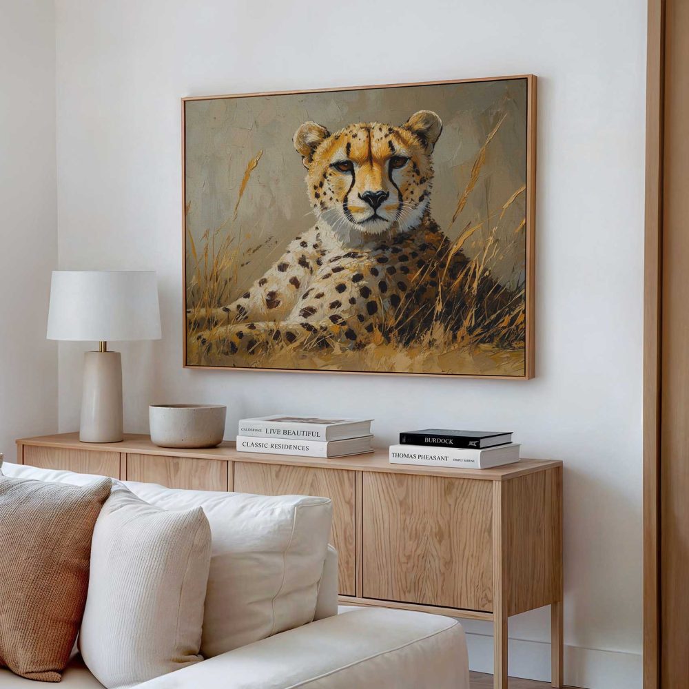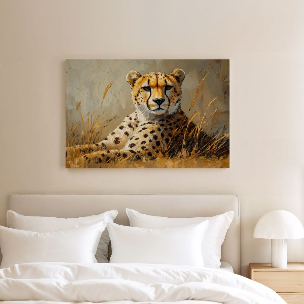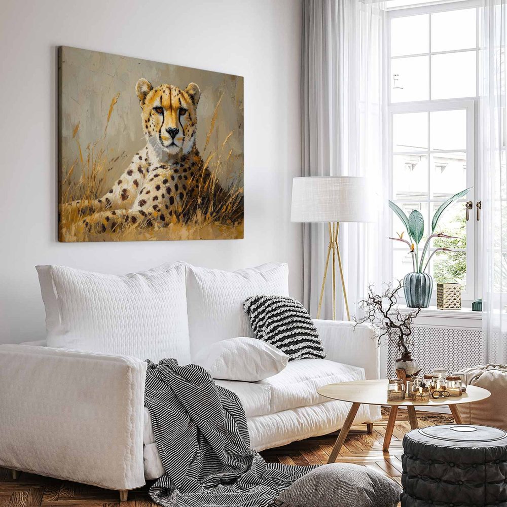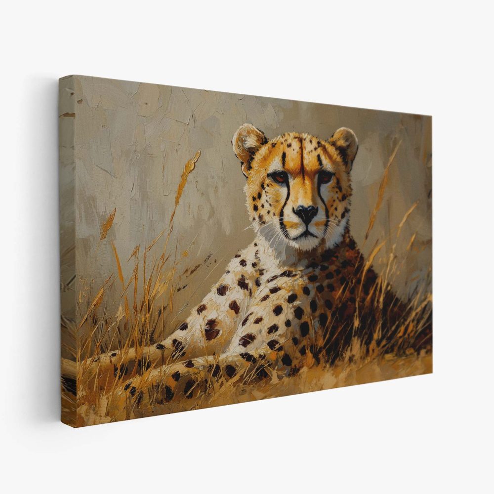 Terug naar collectie / Schilderijen / Dieren Schilderij / Rustende cheetah in savanne