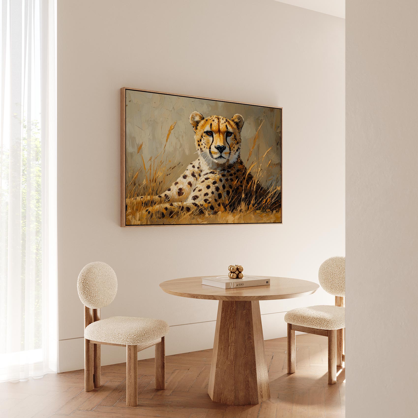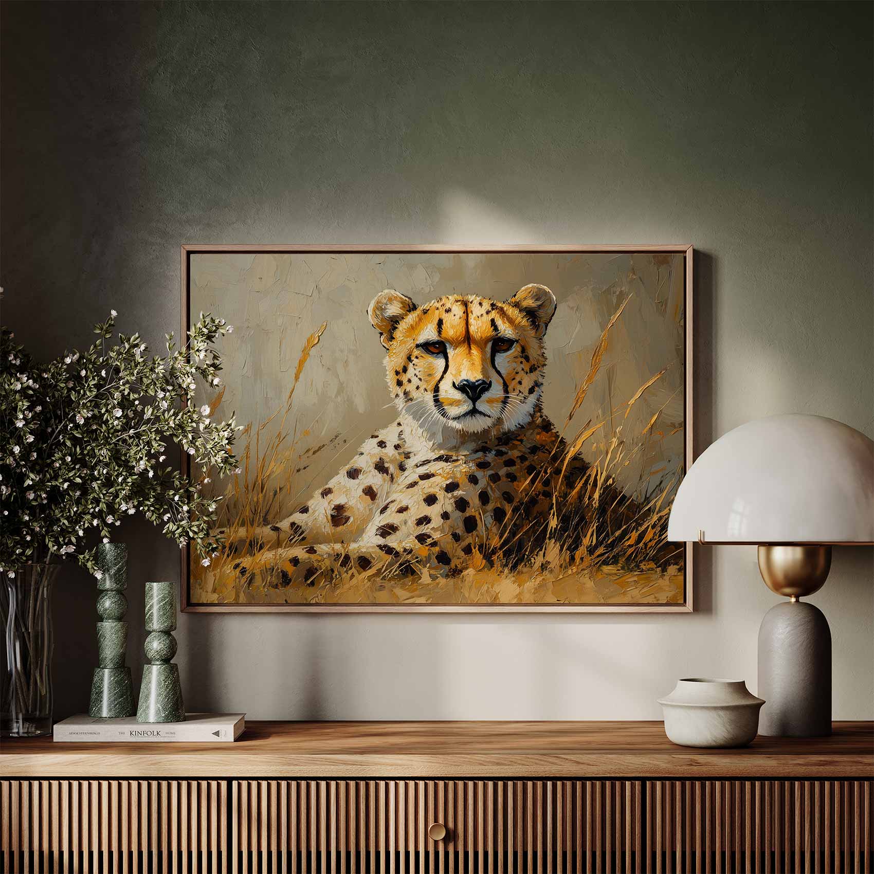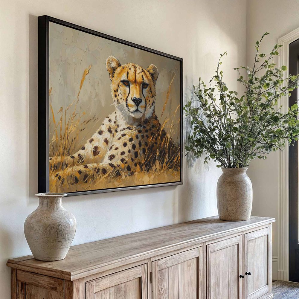Terug naar collectie / Schilderijen / Dieren Schilderij / Rustende cheetah in savanne