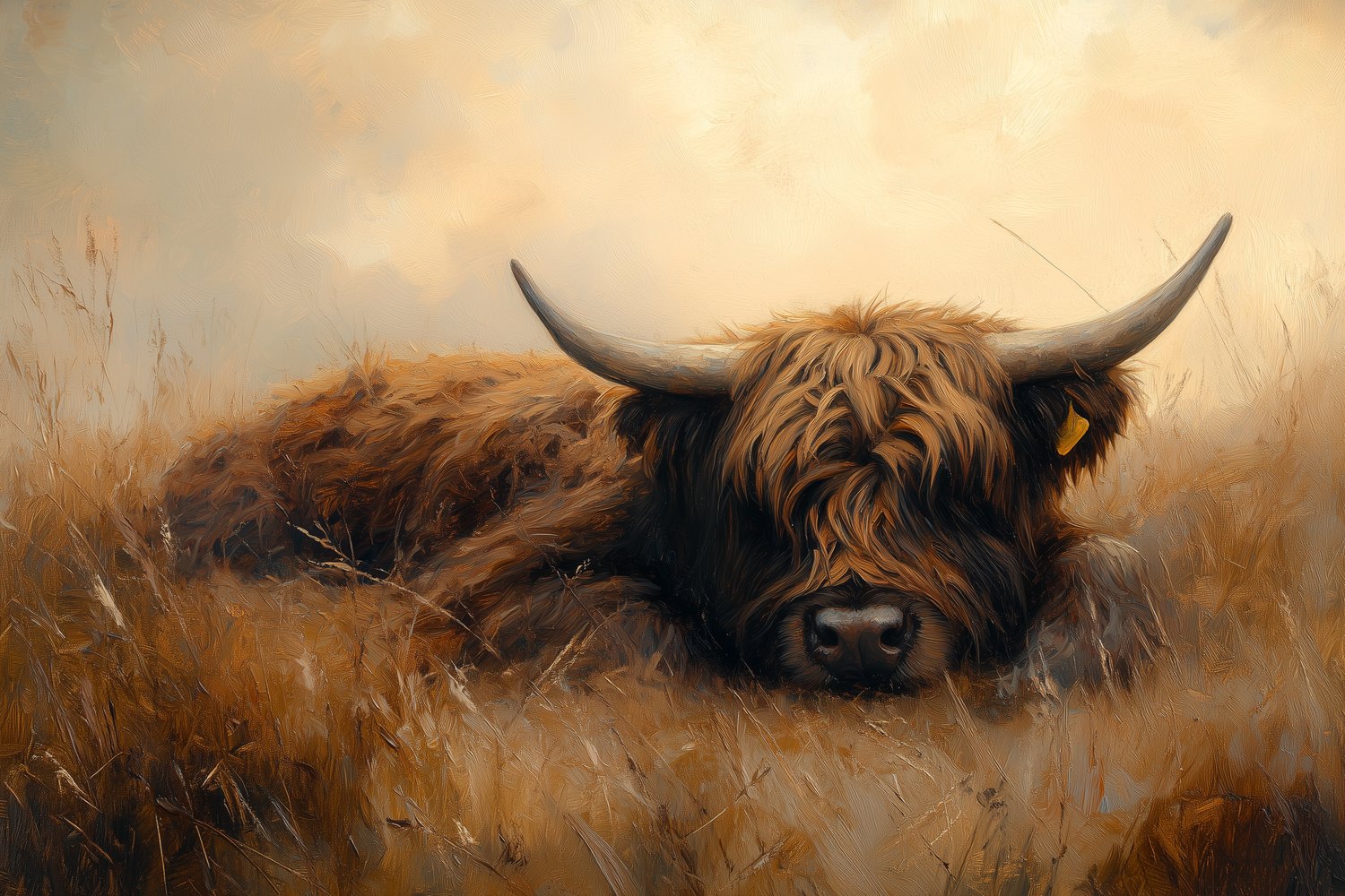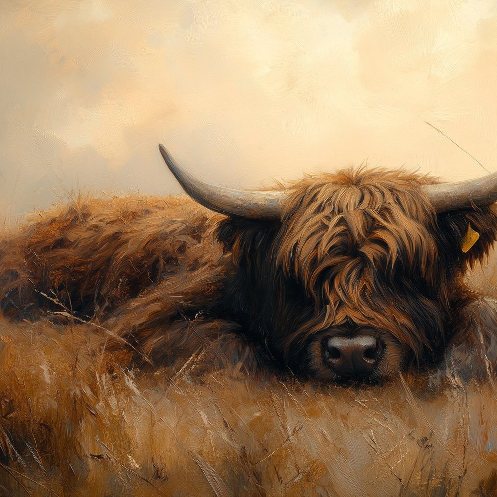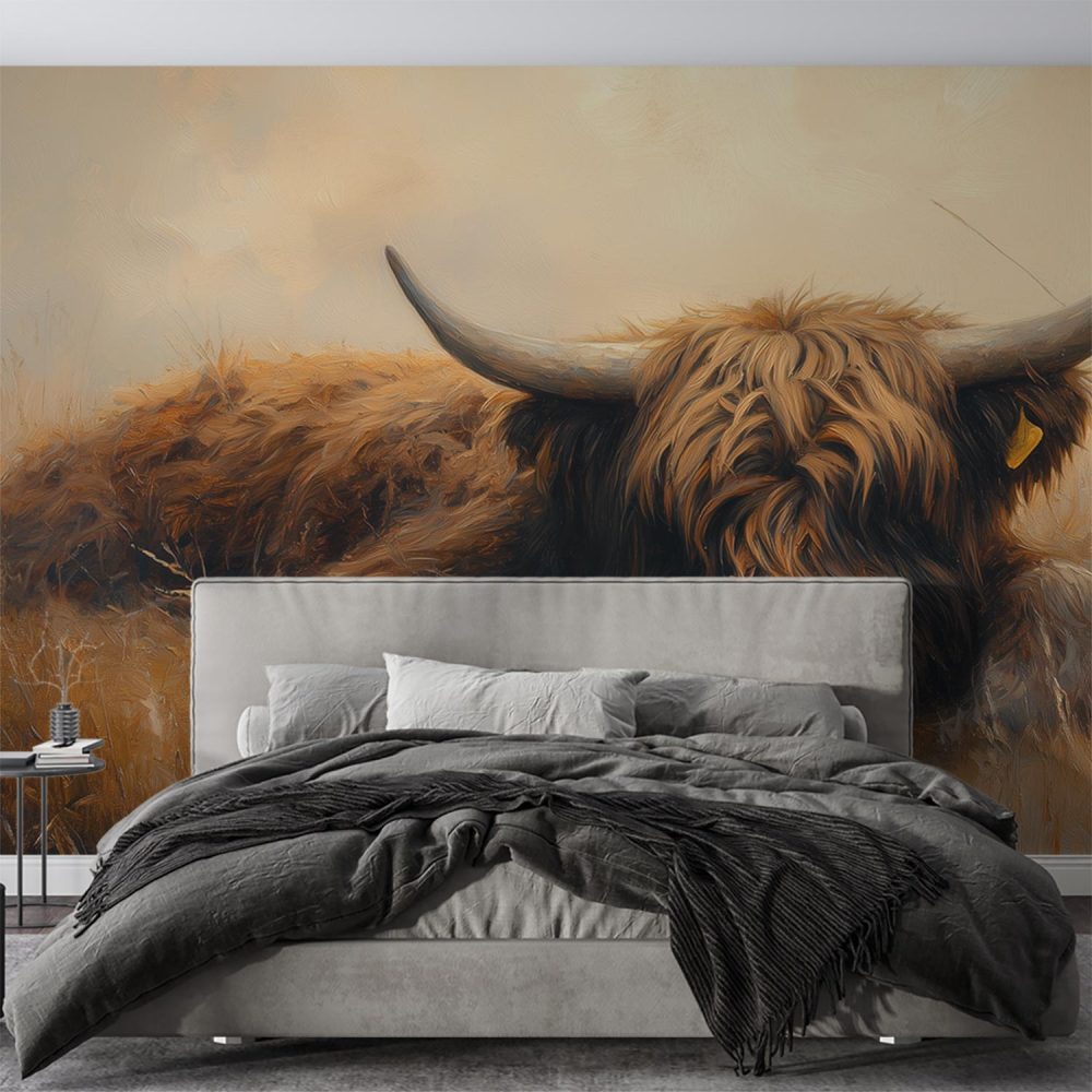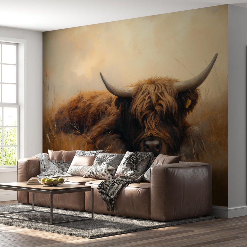 Rustende koe in grasveld behang