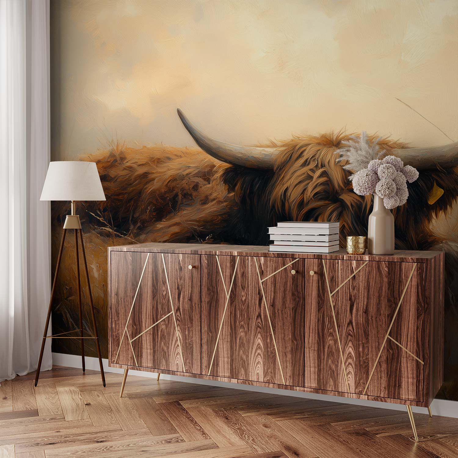 U ontvangt een staal van 15 × 20 cm op Variovlies behang, met dezelfde print en structuur als het uiteindelijke product. Zo kunt u thuis rustig beoordelen of het ontwerp goed past.