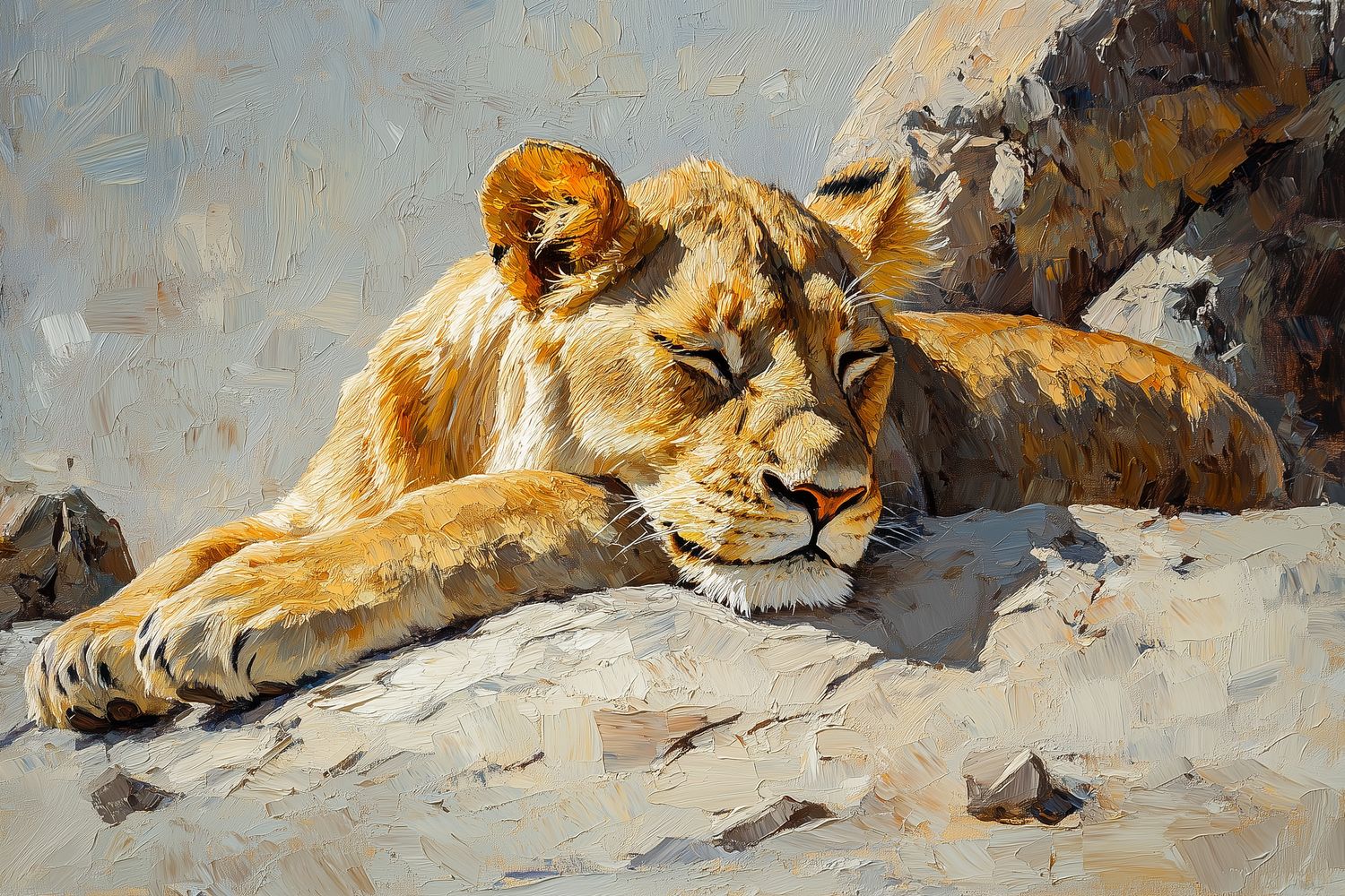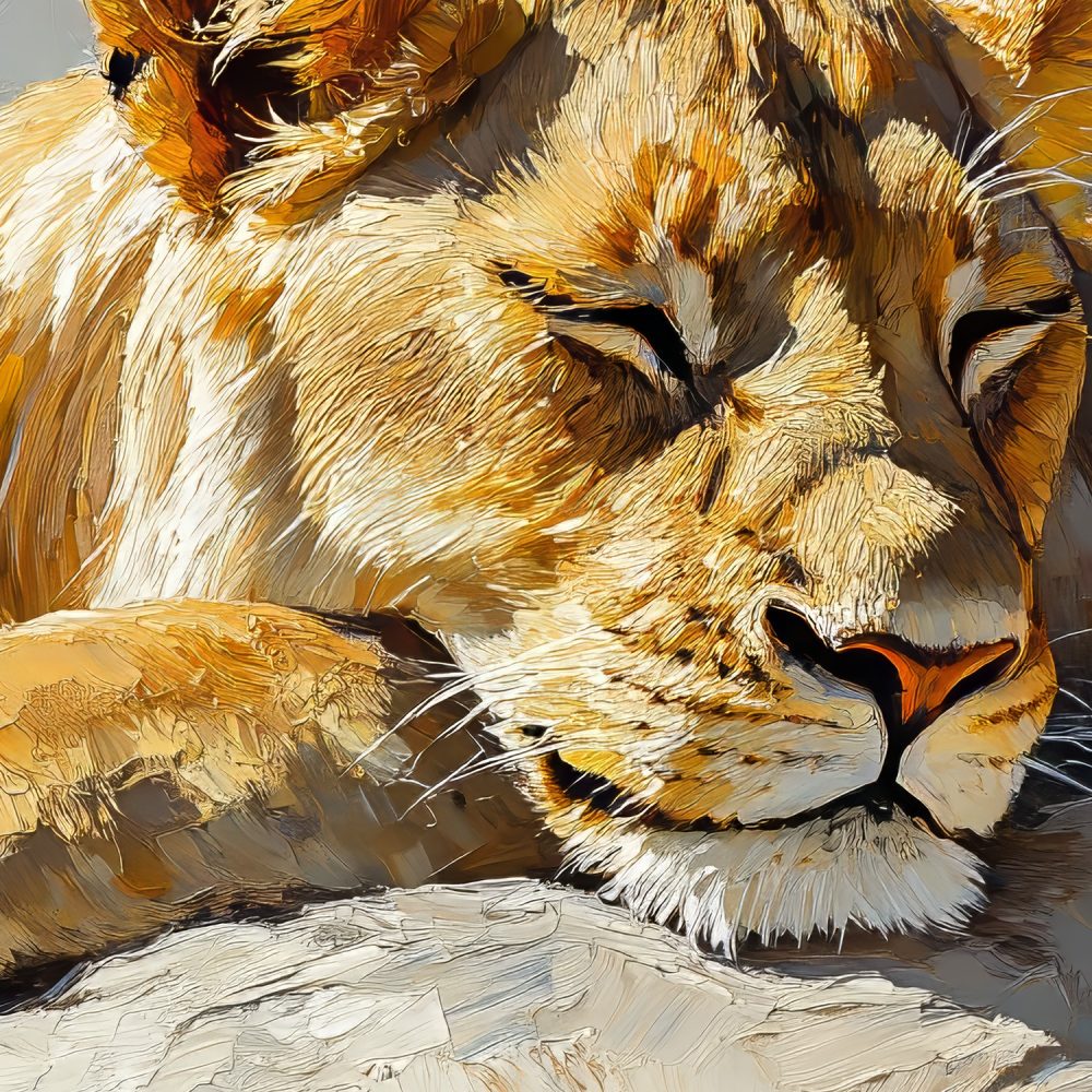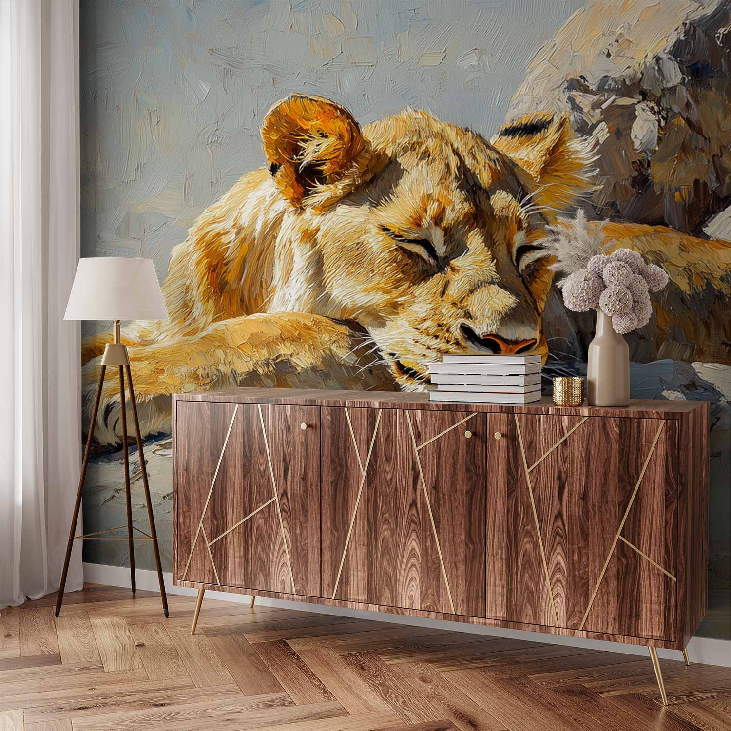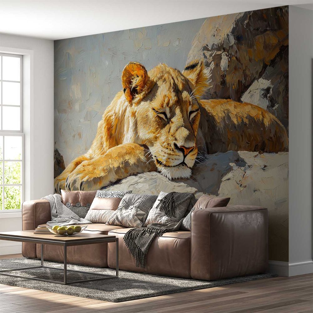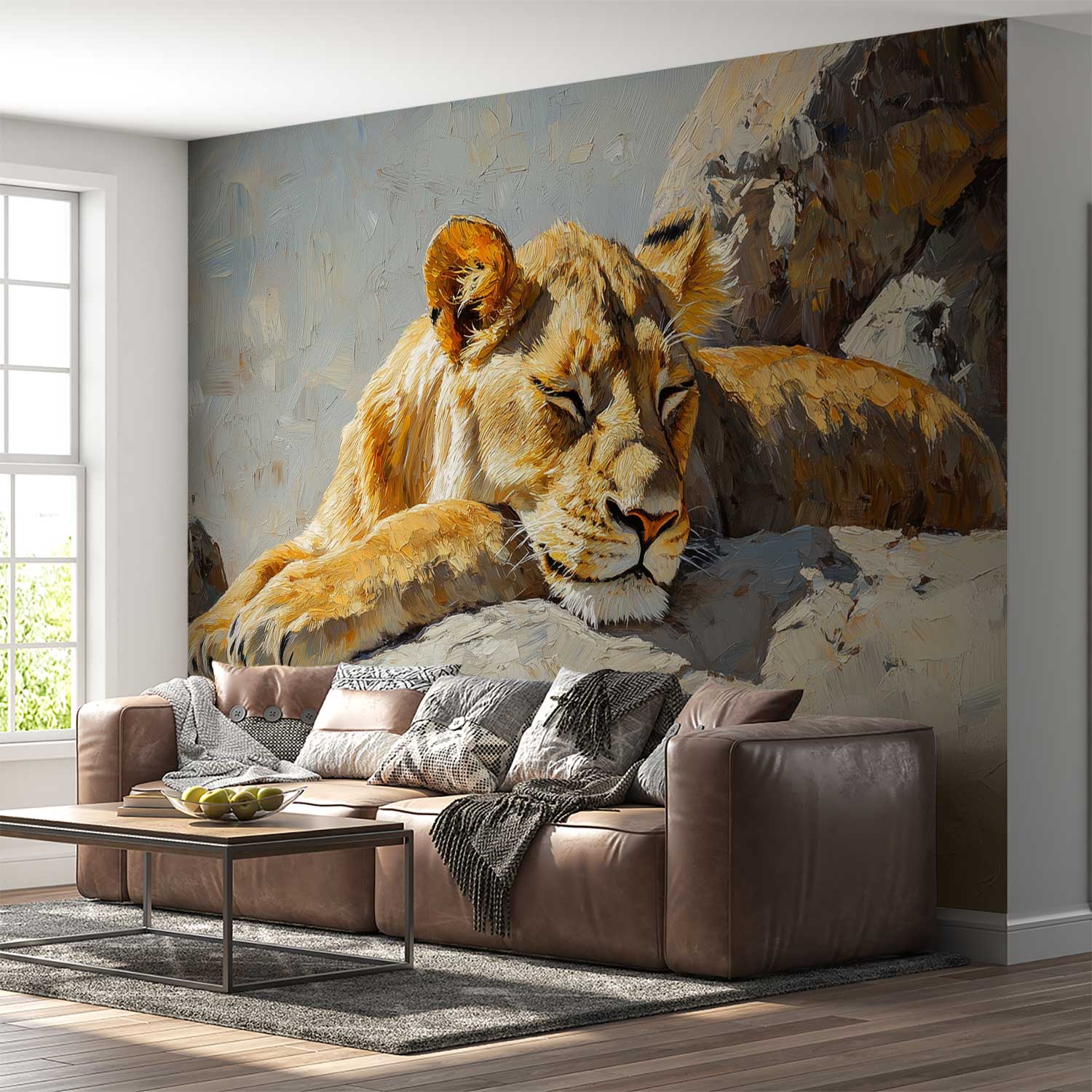 Terug naar collectie / Behang / Abstract behang / Rustende Leeuw in Impressie behang
