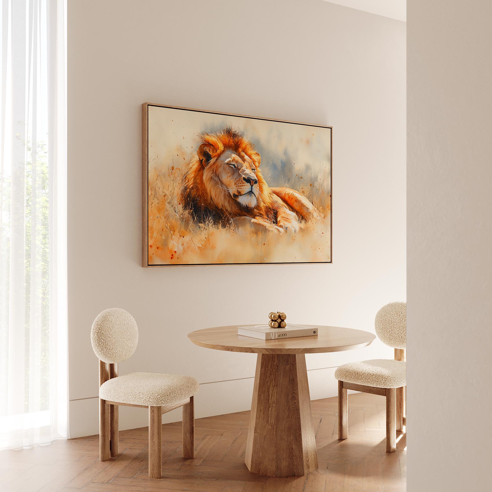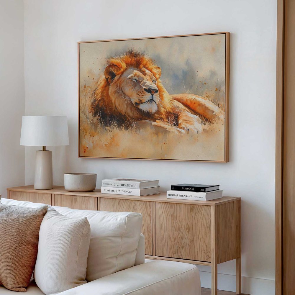 Terug naar collectie / Schilderijen / Dieren Schilderij / Rustende leeuw in waterverf