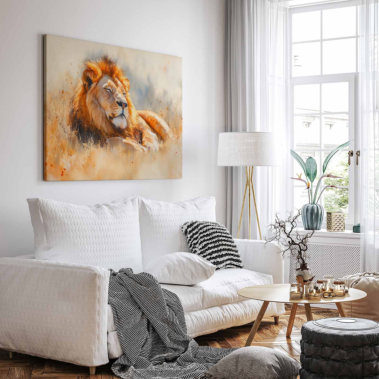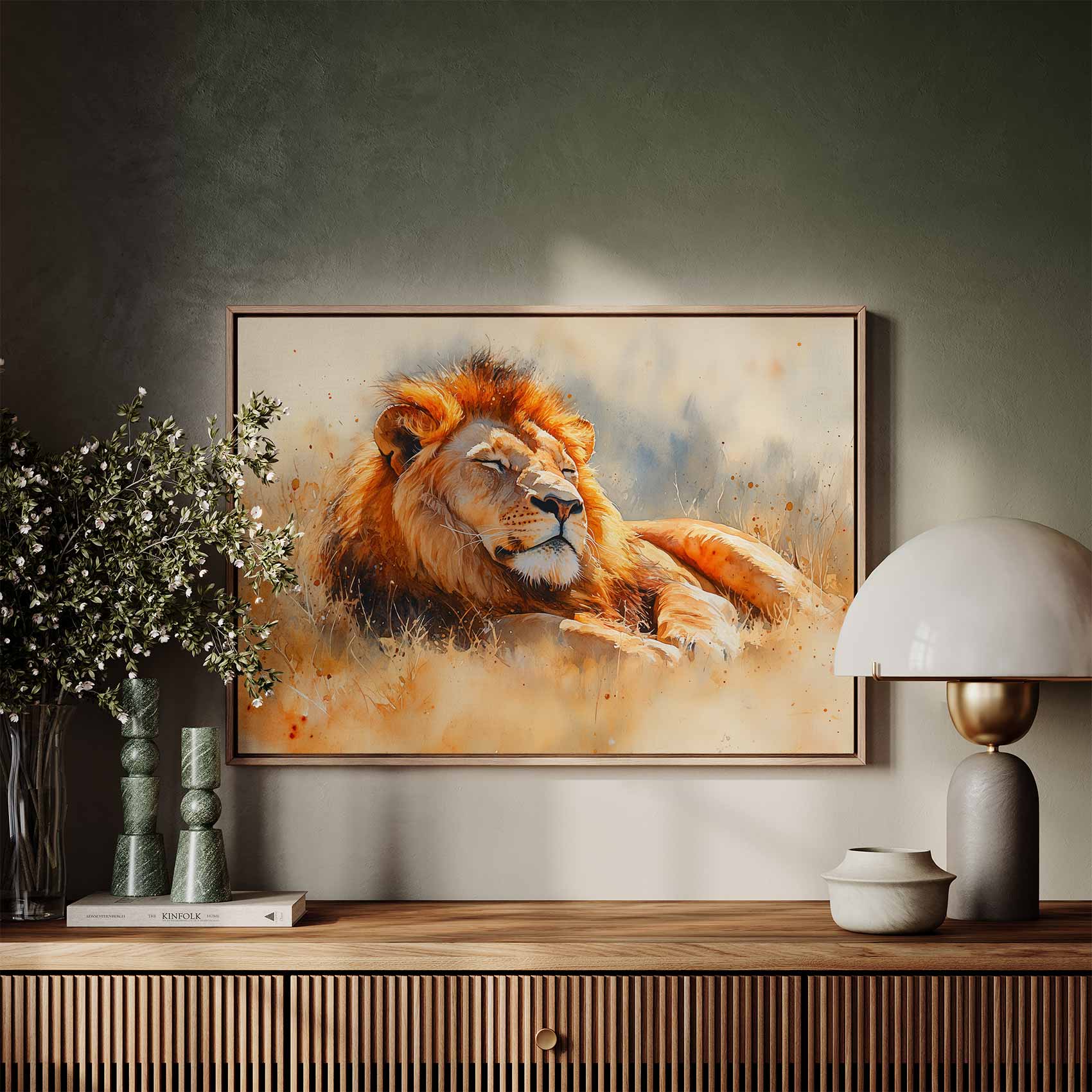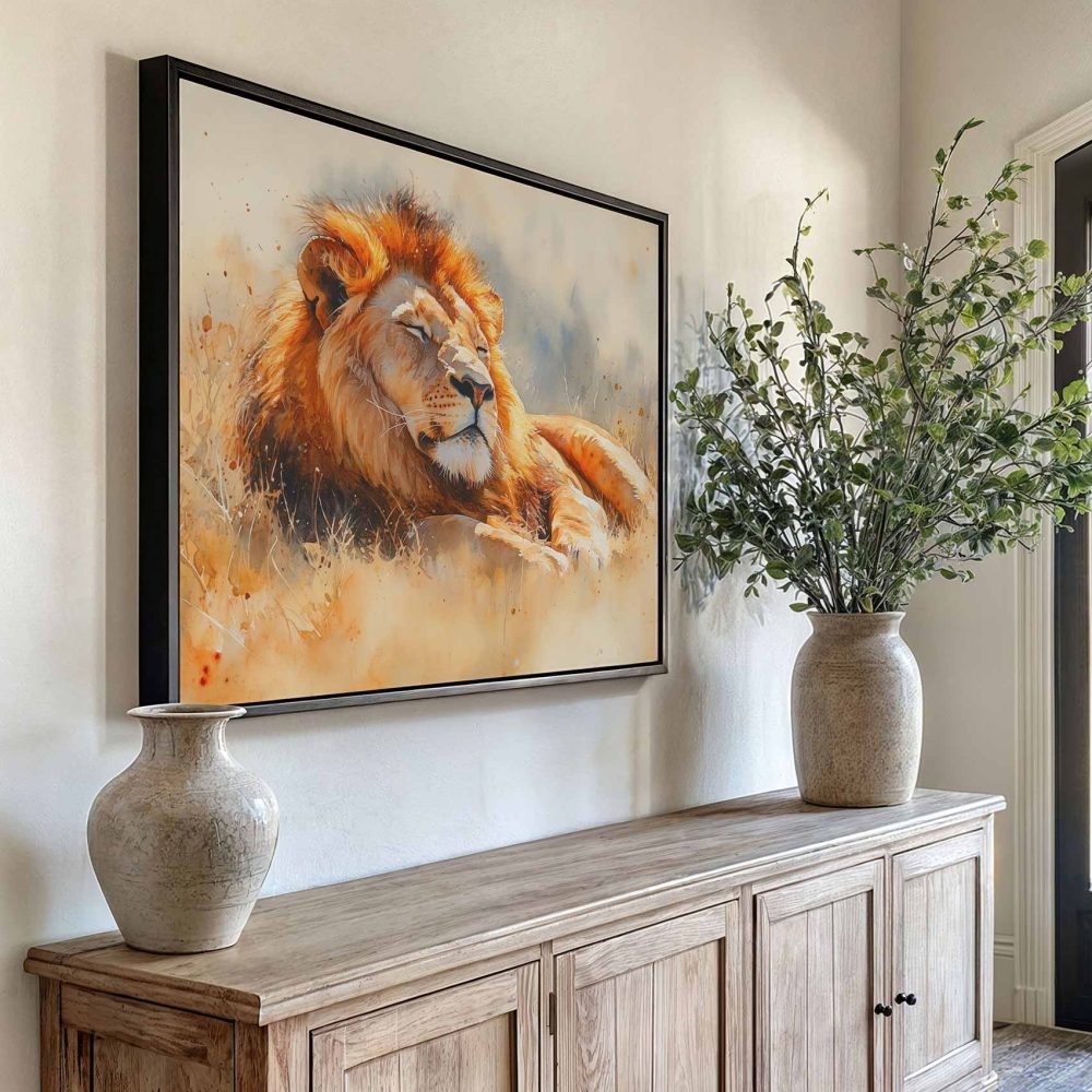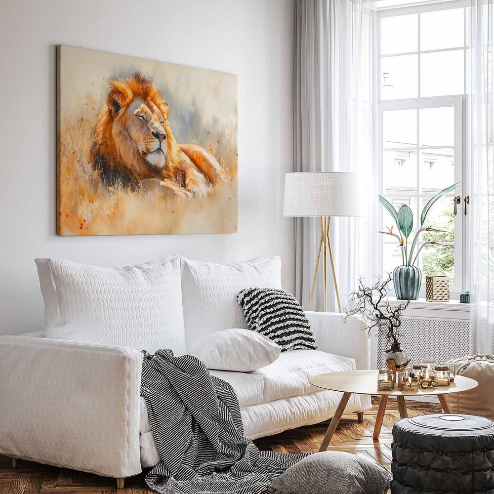 Rustende leeuw in waterverf