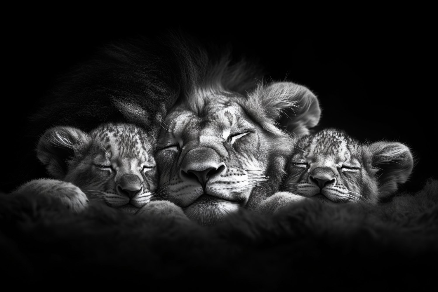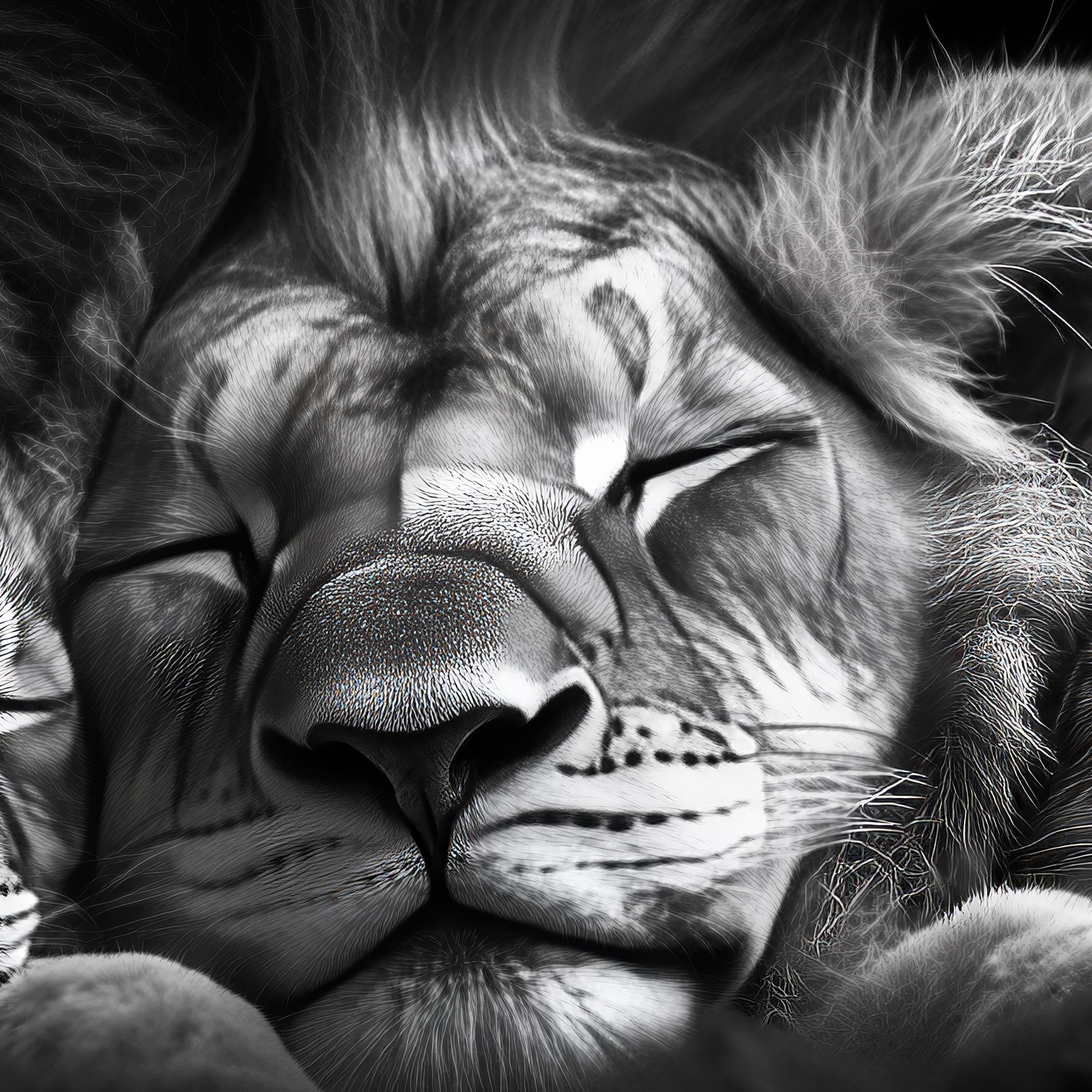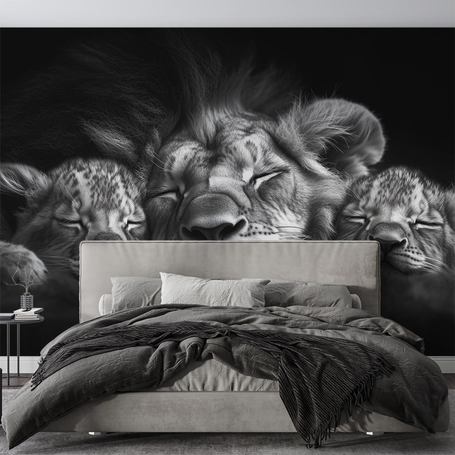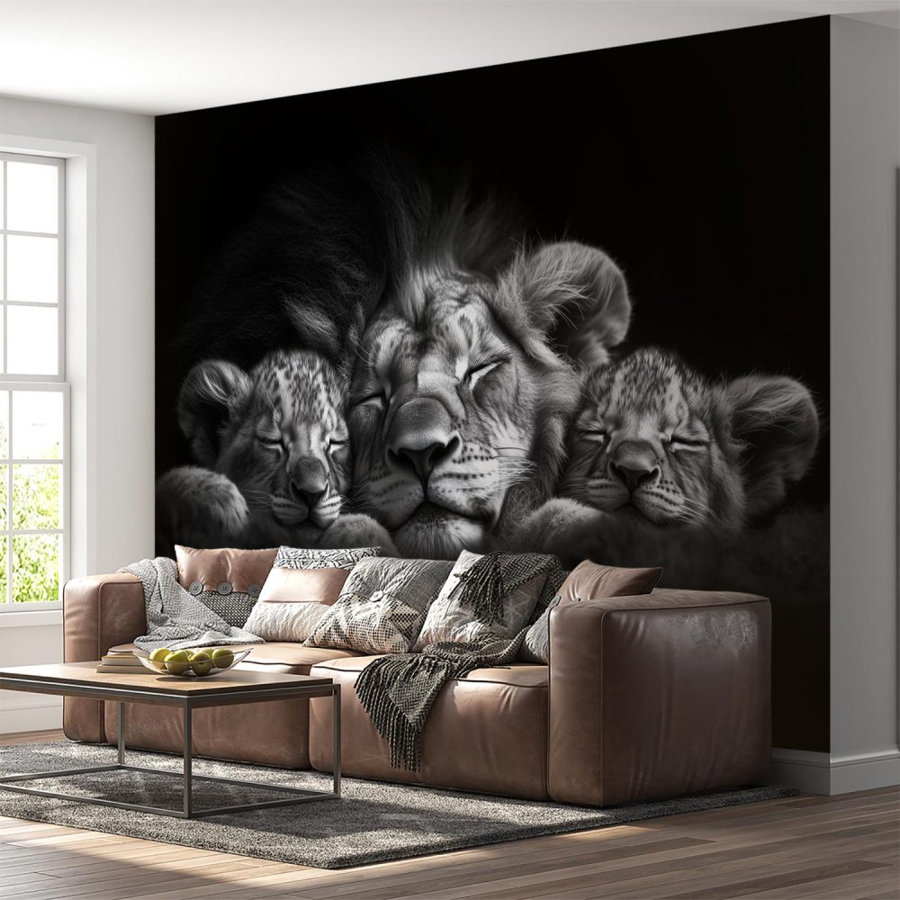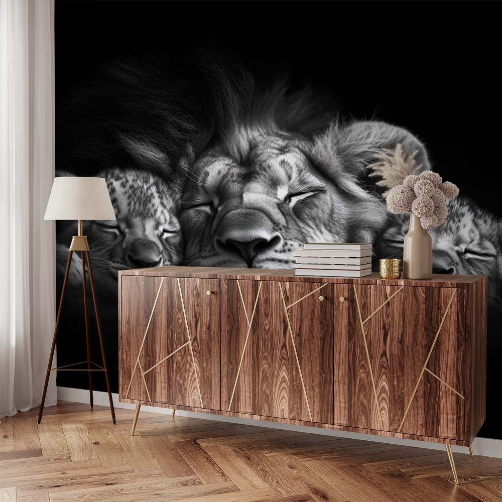 Terug naar collectie / Behang / Rustende Leeuw in Zwart-Wit behang