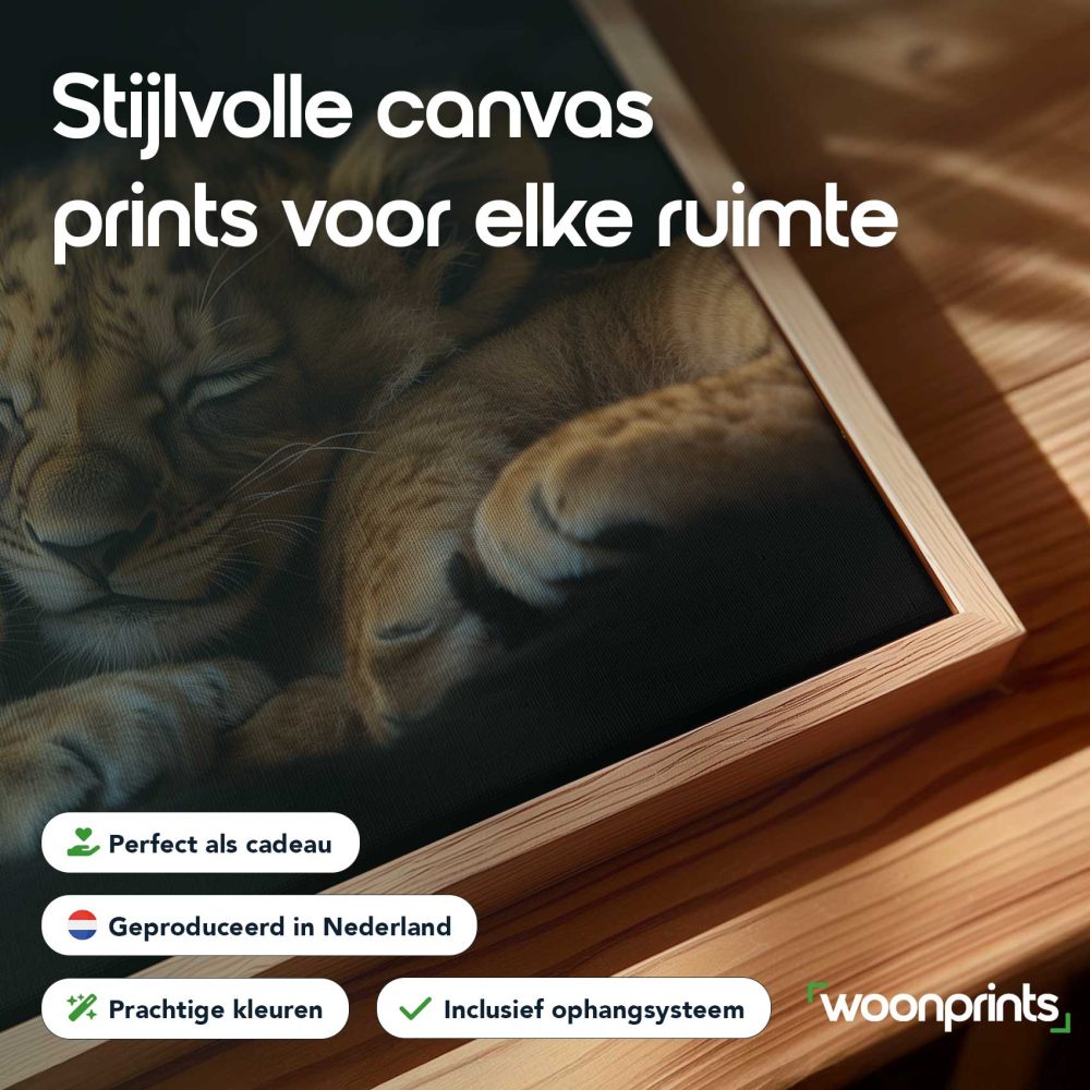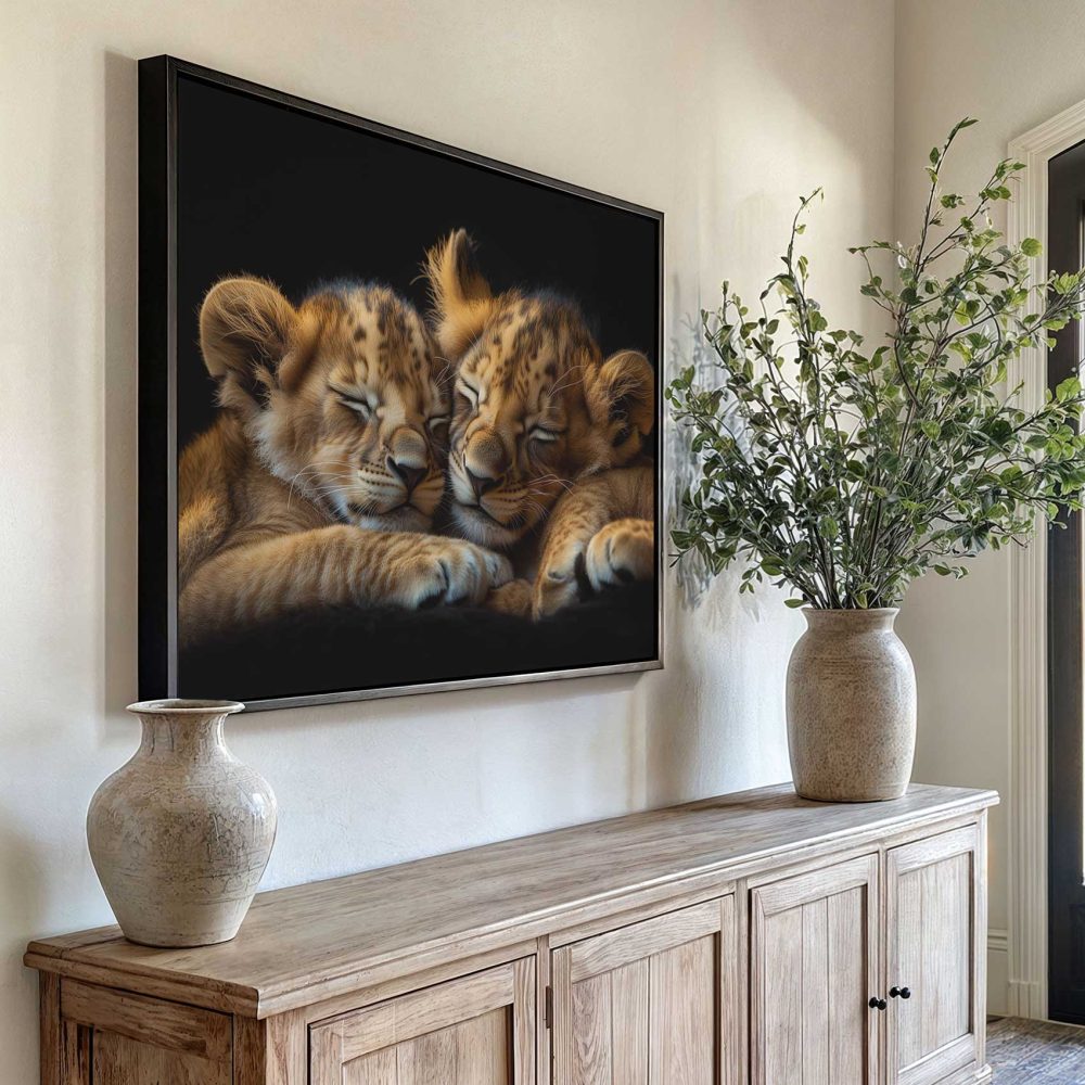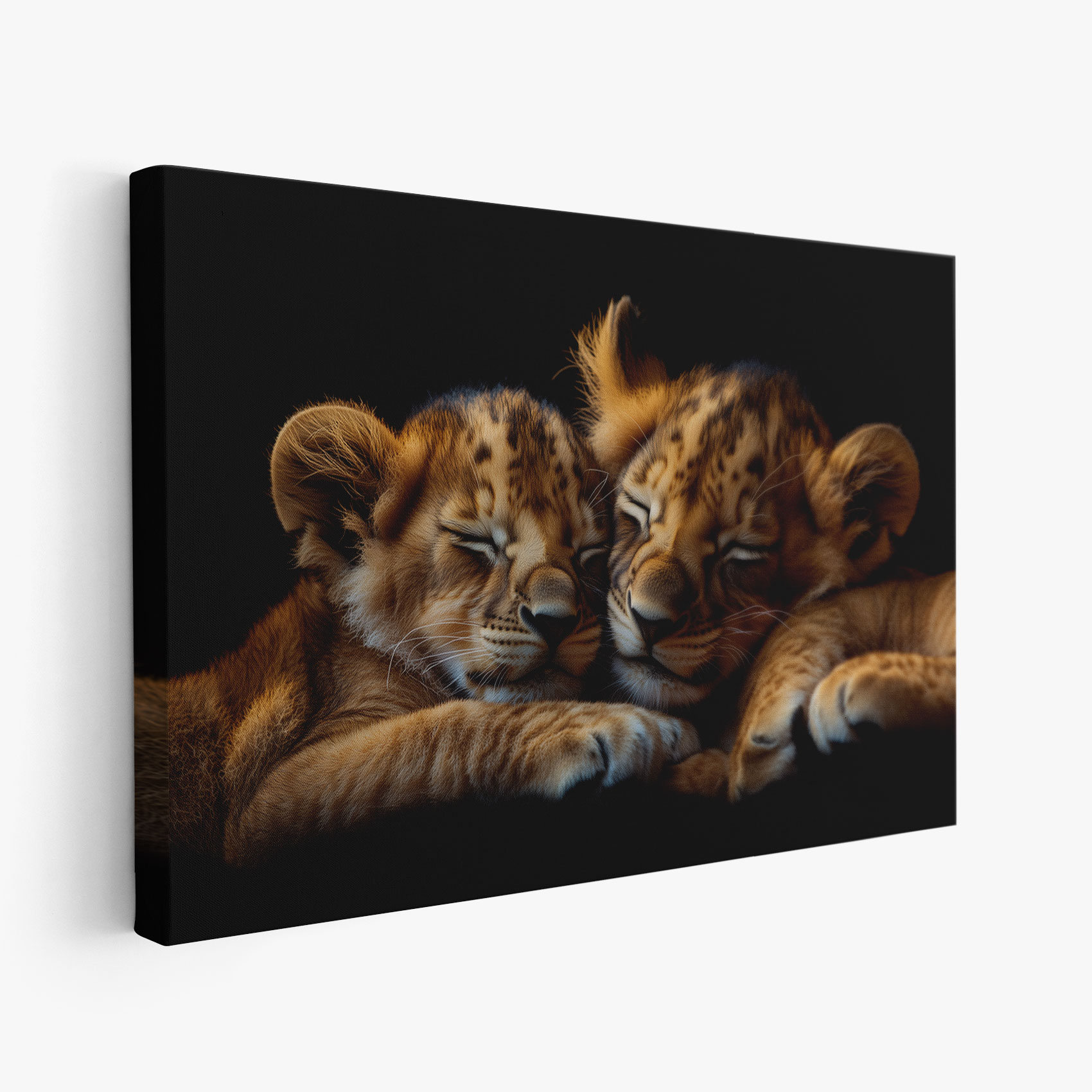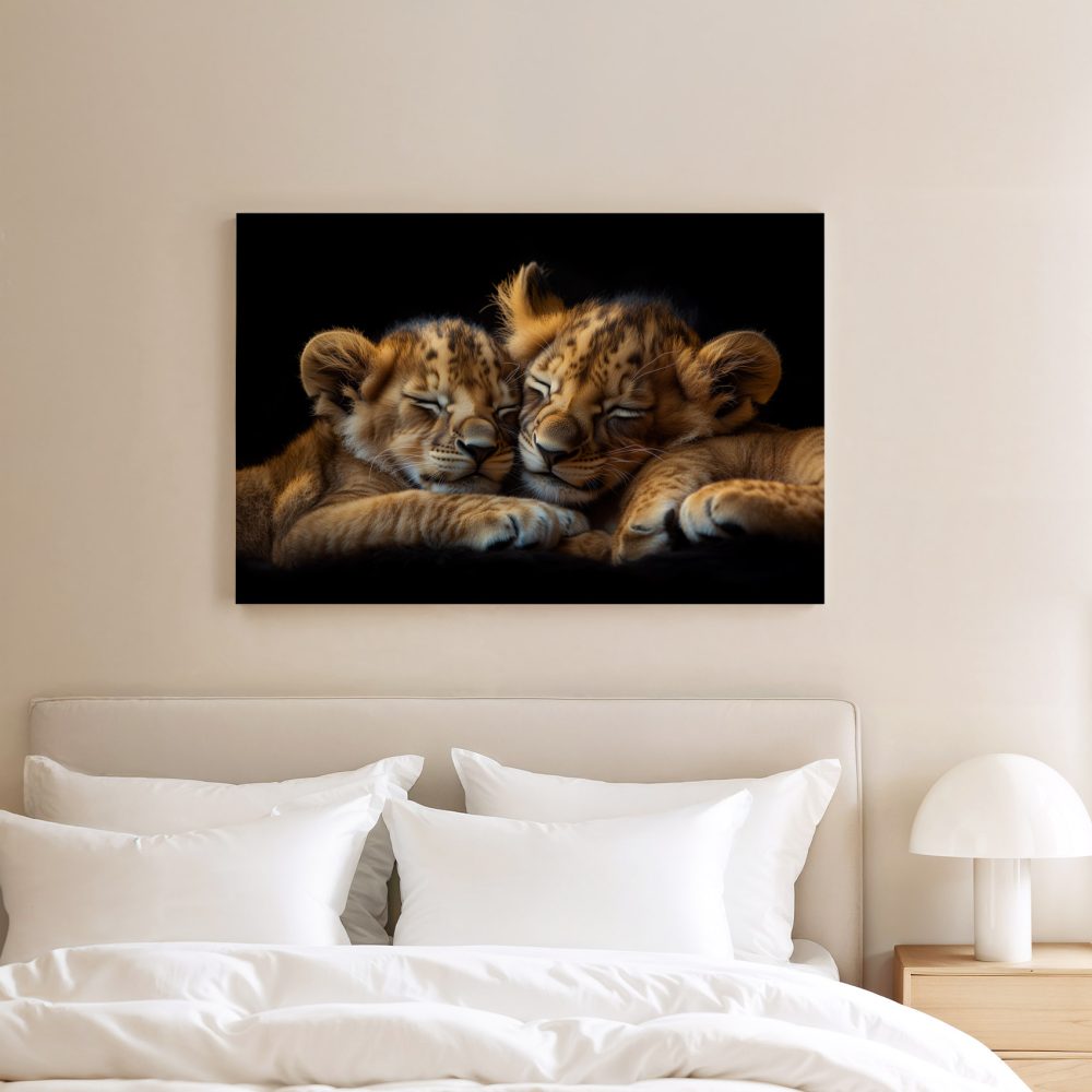 Terug naar collectie / Schilderijen / Dieren Schilderij / Rustende leeuwenwelpen op zwart