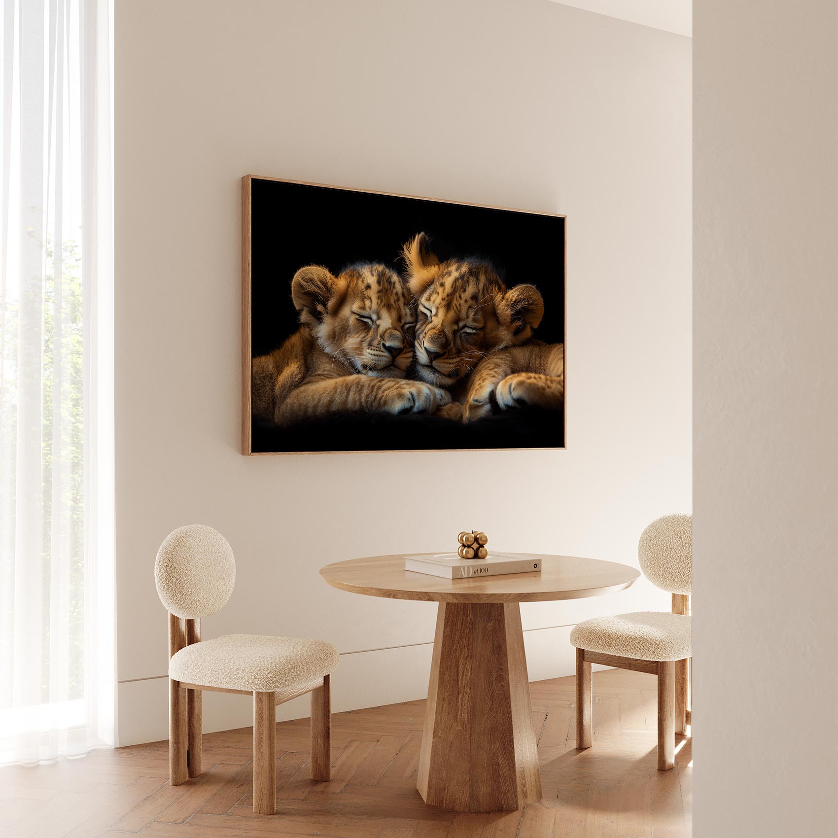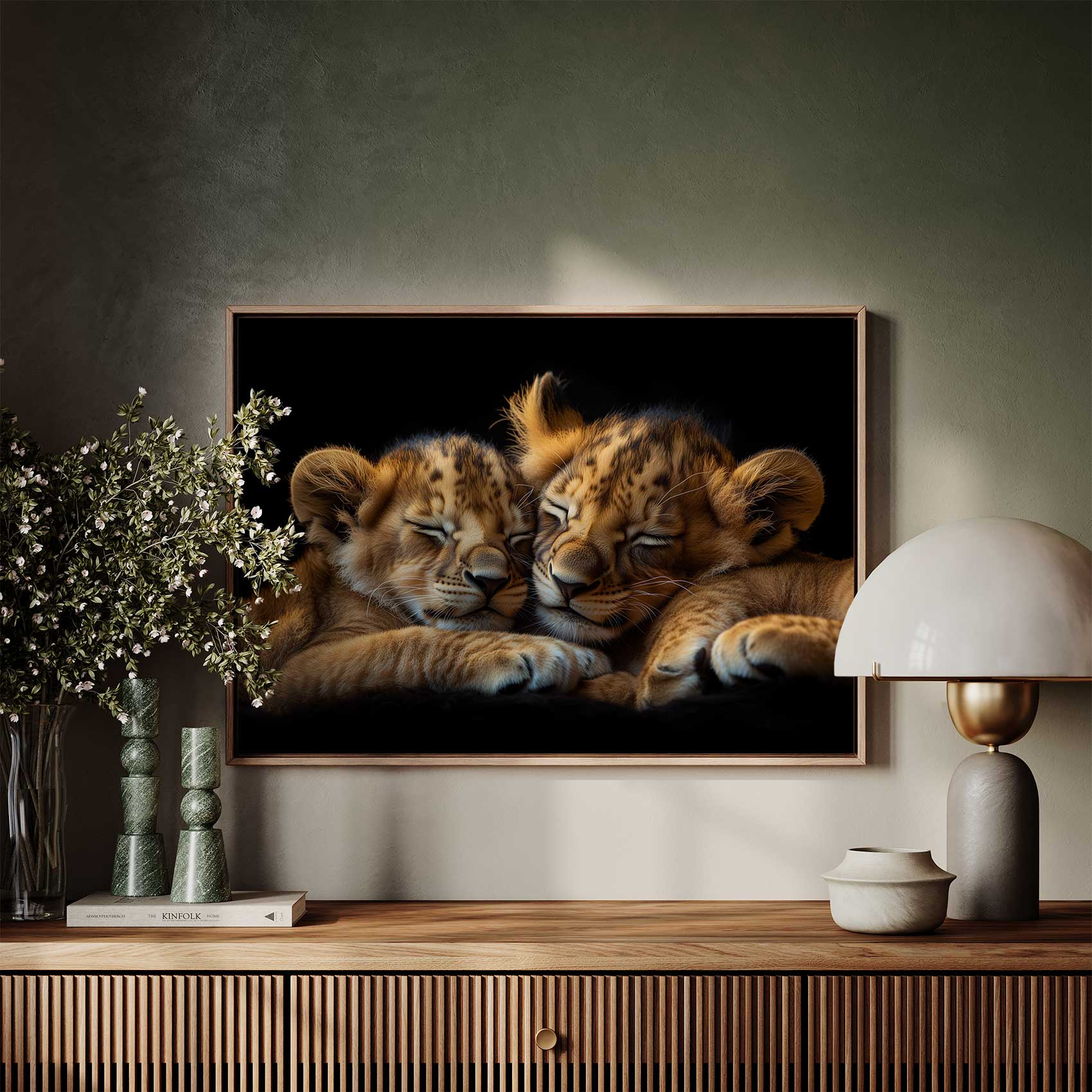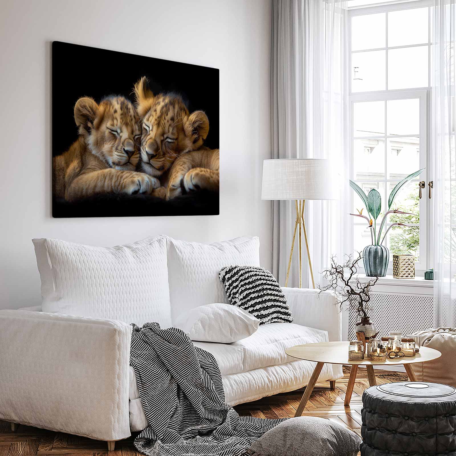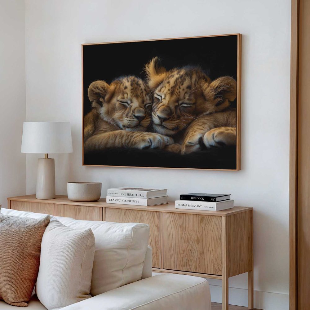 Terug naar collectie / Schilderijen / Dieren Schilderij / Rustende leeuwenwelpen op zwart
