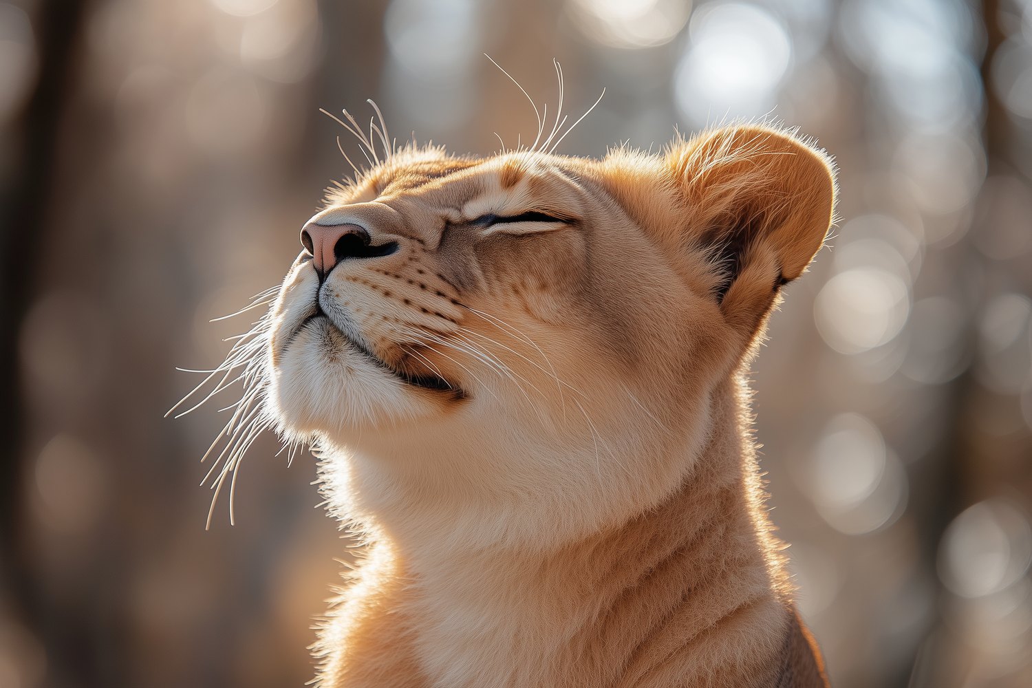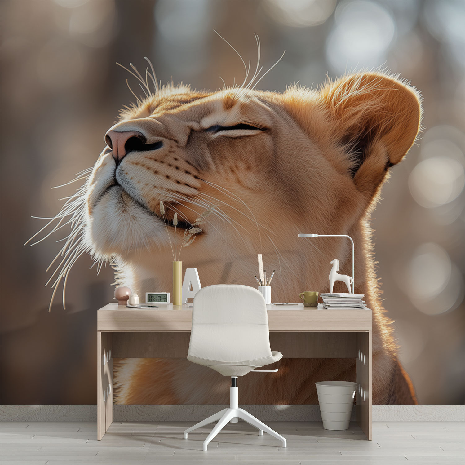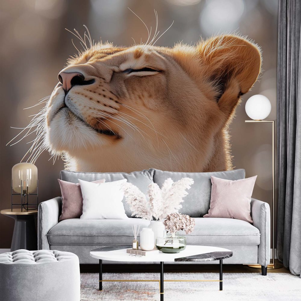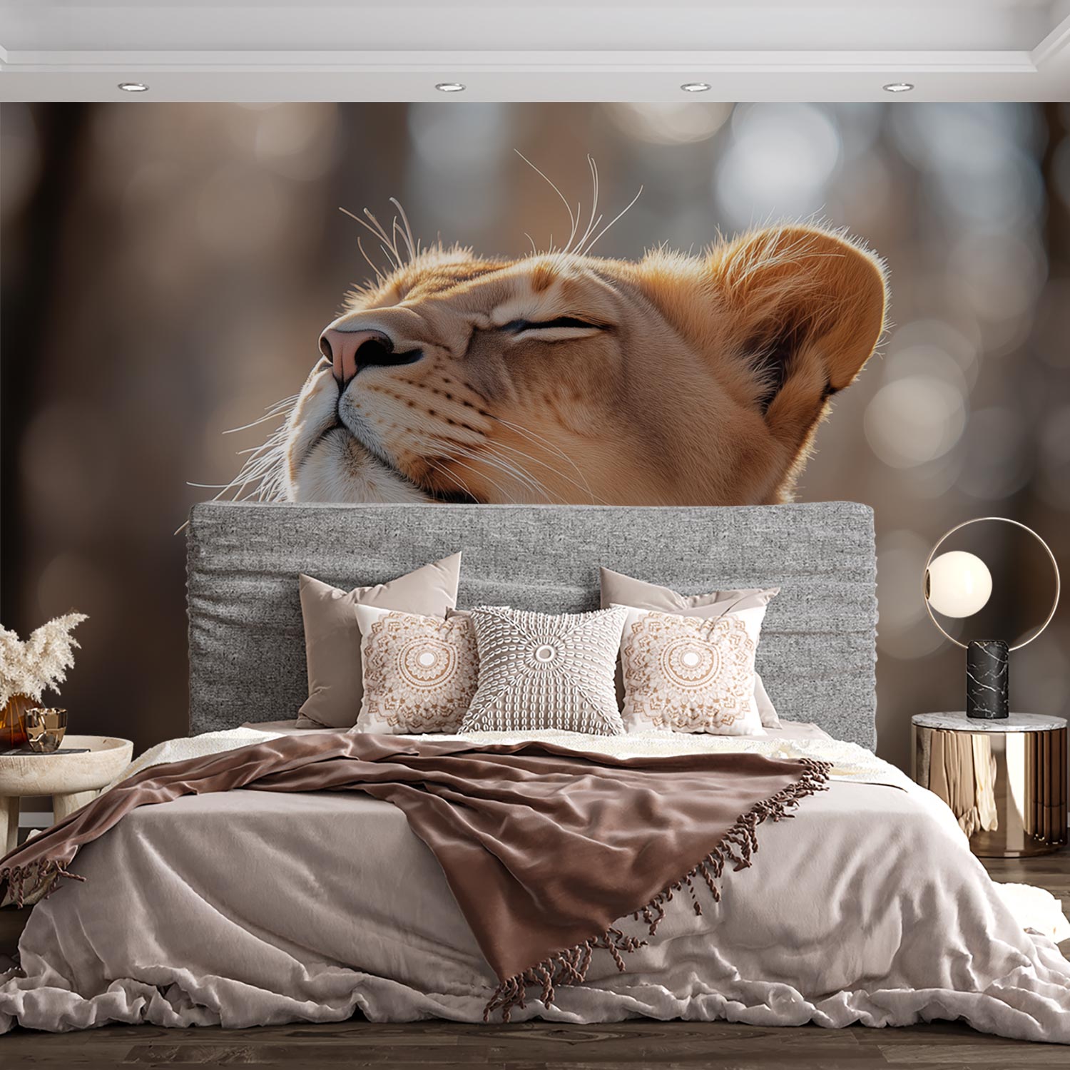 Terug naar collectie / Behang / Rustende leeuwin in natuur behang