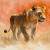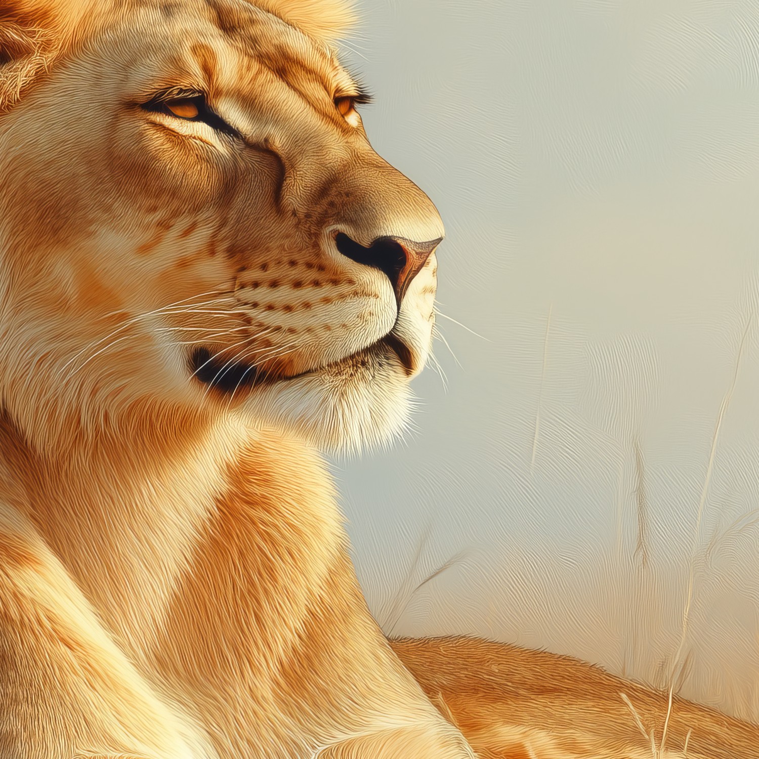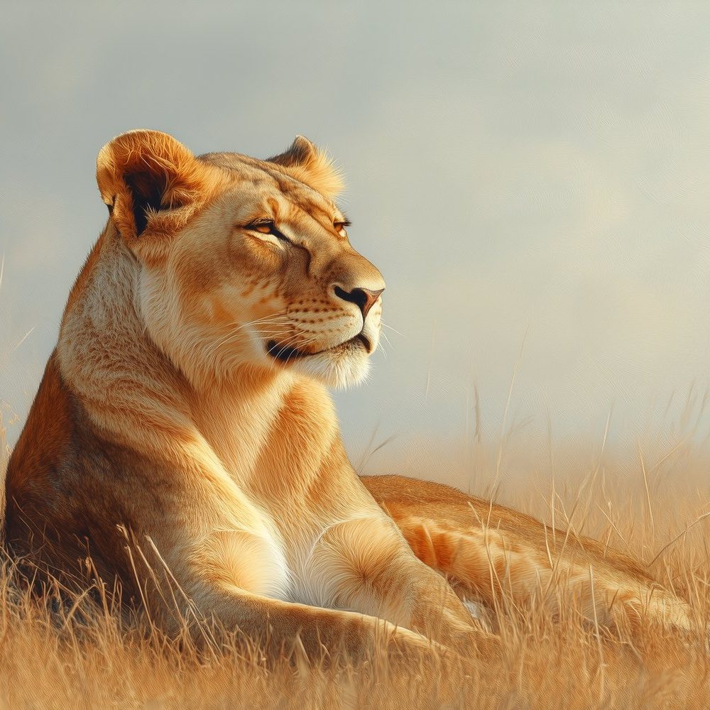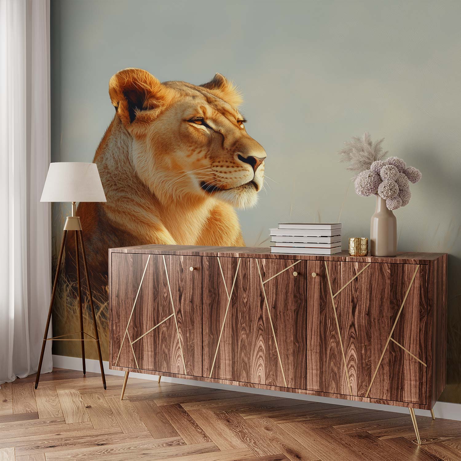 Terug naar collectie / Behang / Rustende leeuwin in savanne behang