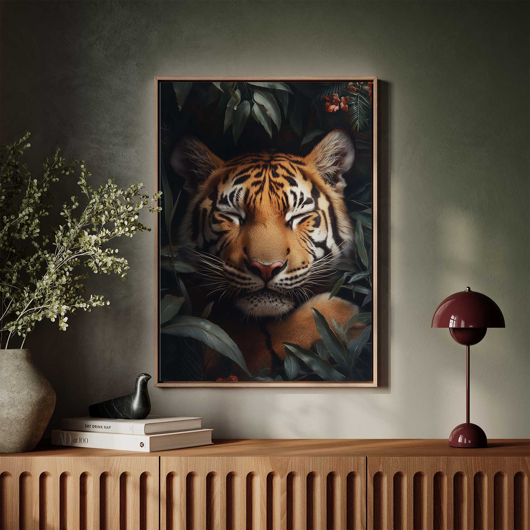 Rustende tijger in groen