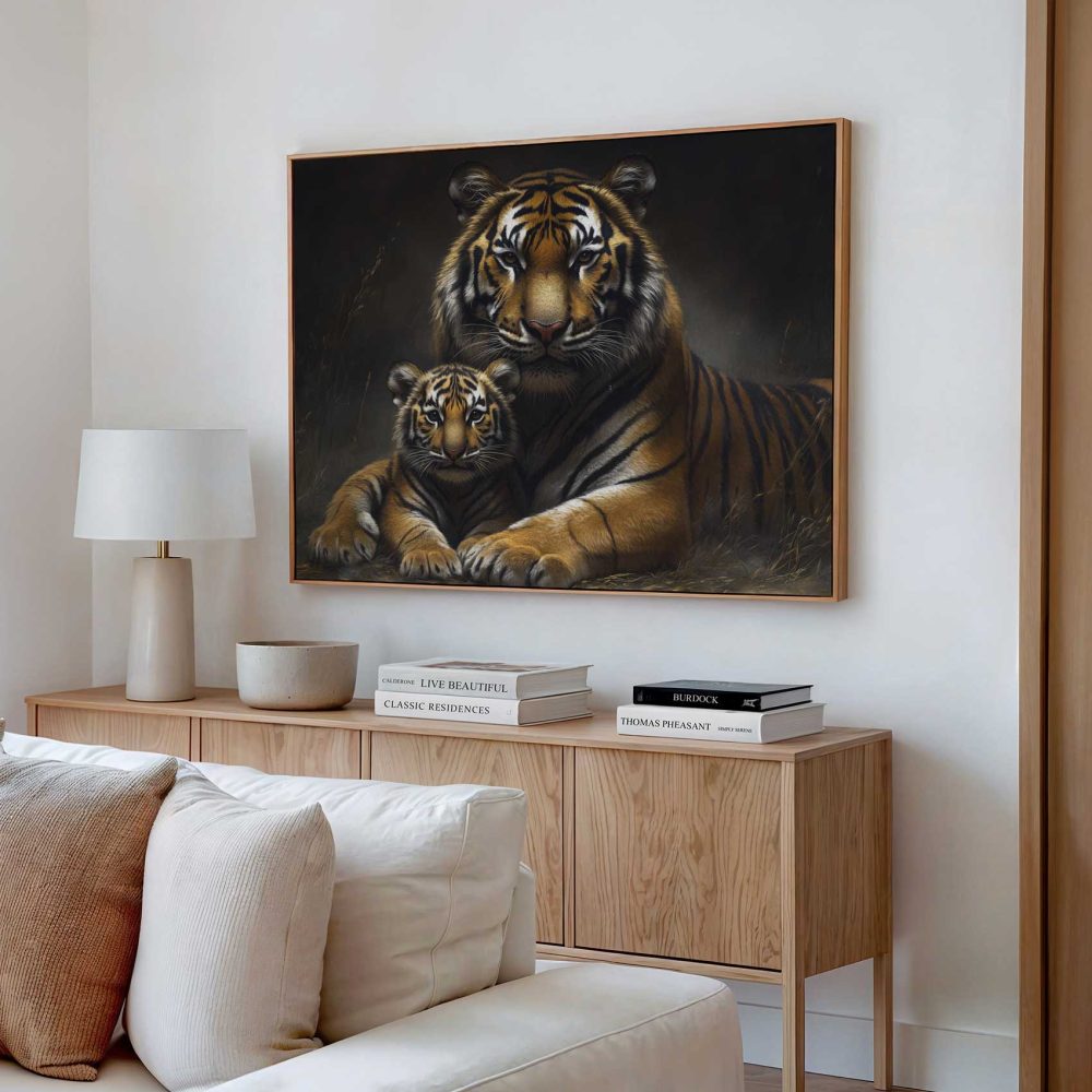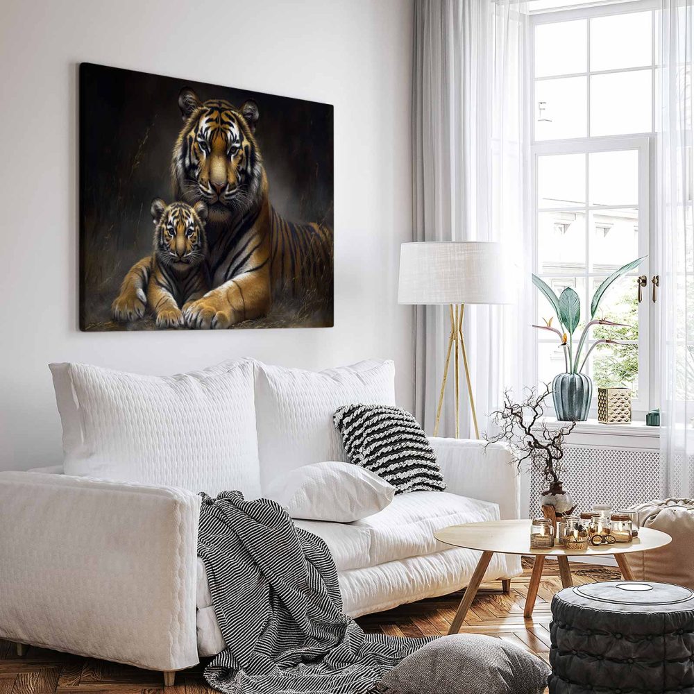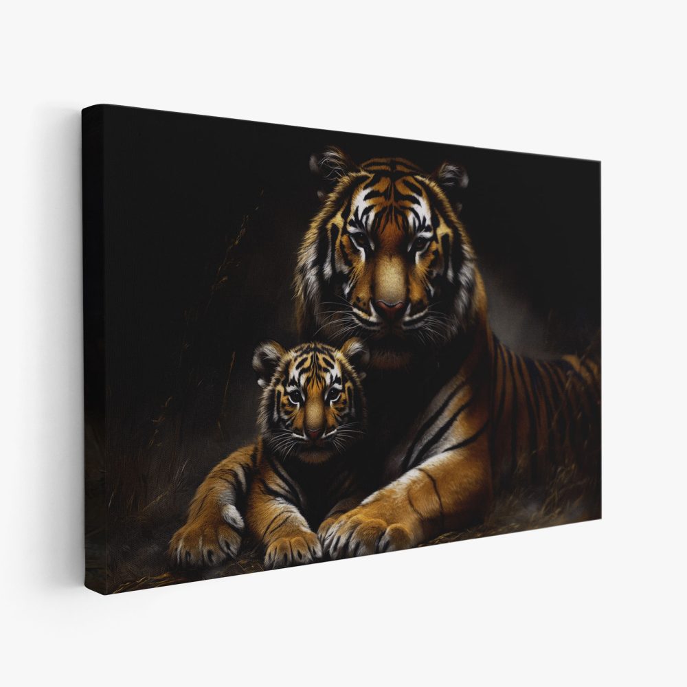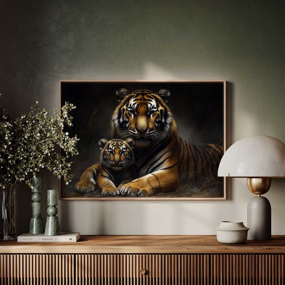 Terug naar collectie / Schilderijen / Dieren Schilderij / Rustende tijgermoeder met welp
